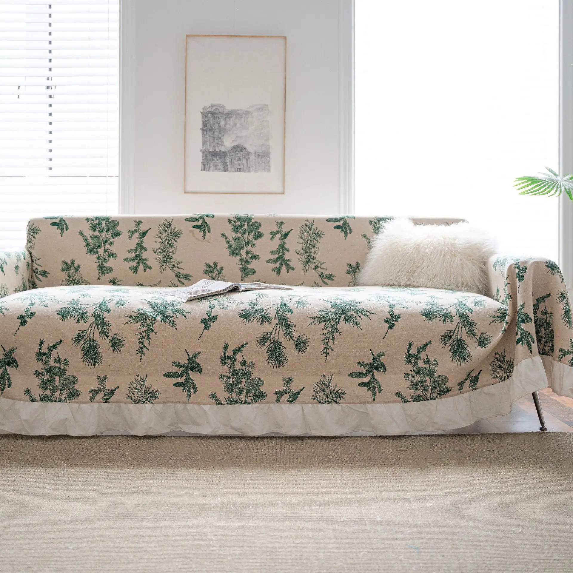 Qfdian Farmhouse Sofa Covers Blue Boho Couch Cover for 3 Cushion Couch Sofa Living Room Pet Sofa Covers for Dog Cat Washable Slipcovers