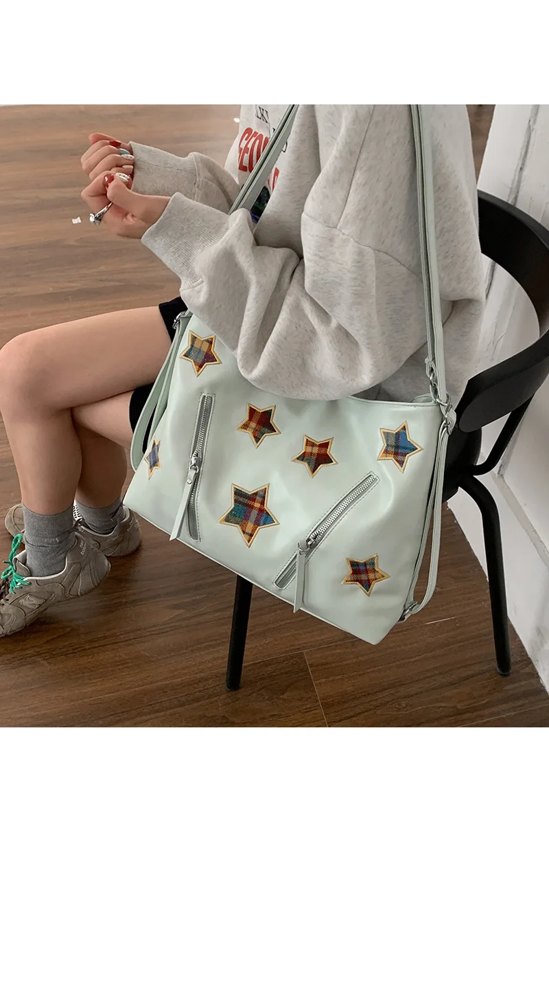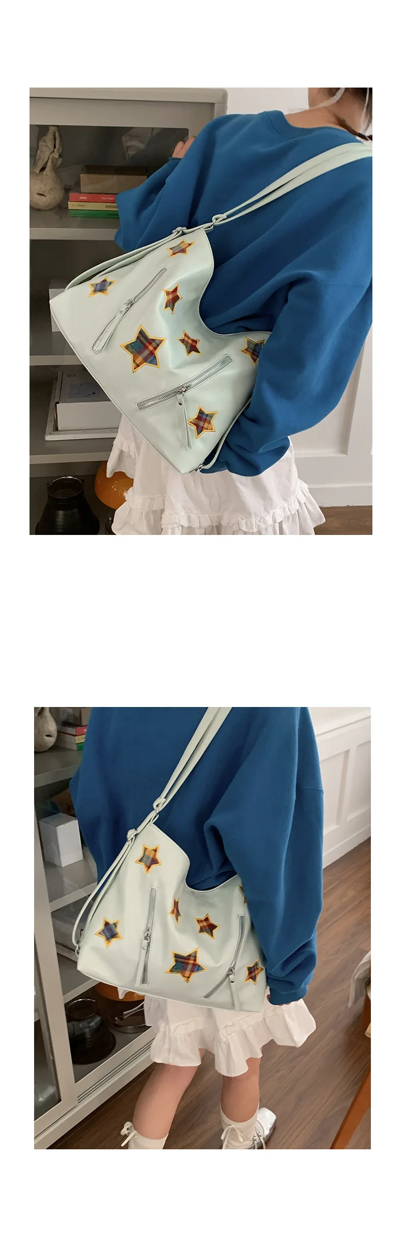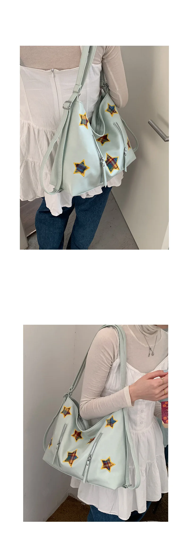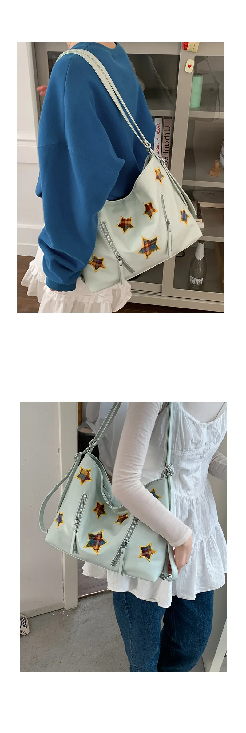 Qfdian Fashion Preppy Backpacks Casual Plaid Star Embroidery Crossbody Bags All Match Women Y2k Aesthetic Shoulder Handbags Streetwear