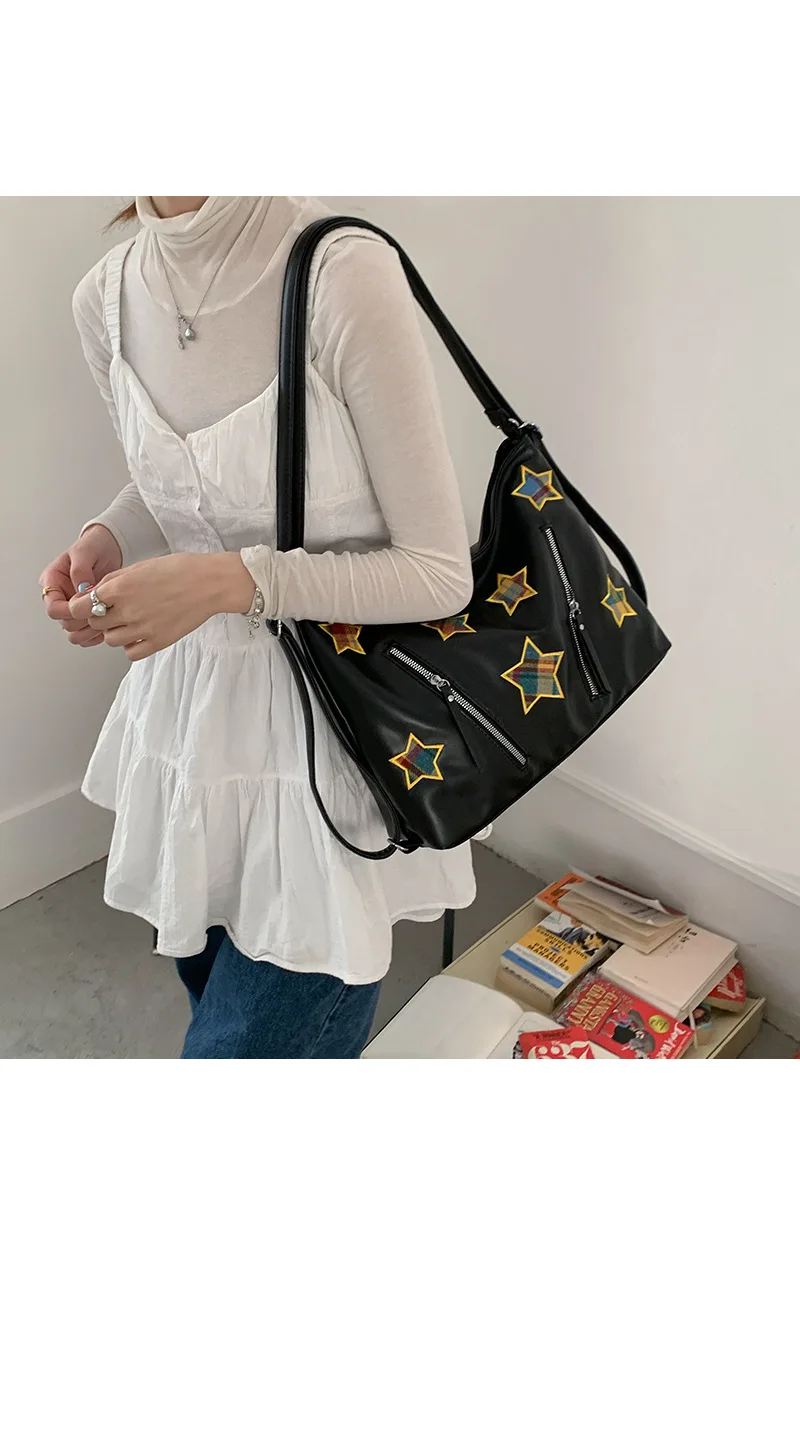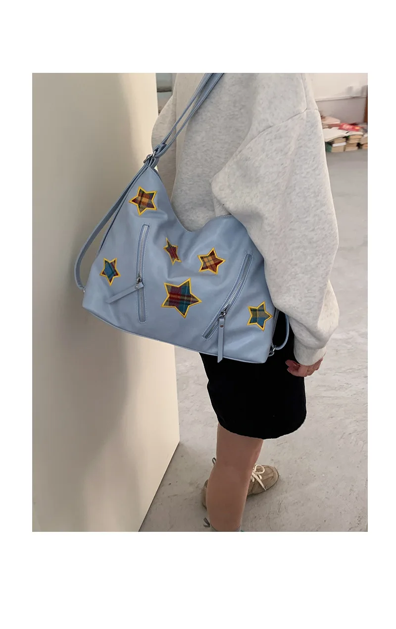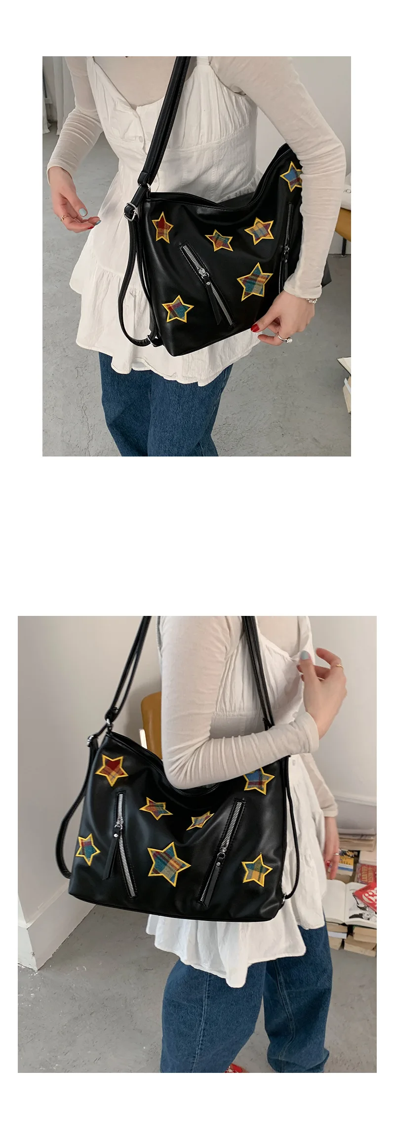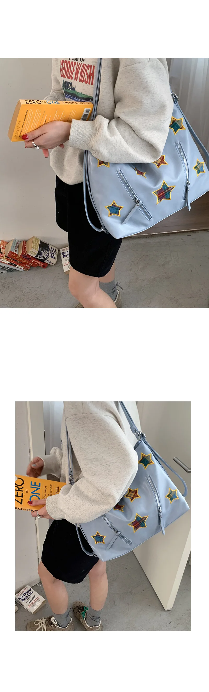Qfdian Fashion Preppy Backpacks Casual Plaid Star Embroidery Crossbody Bags All Match Women Y2k Aesthetic Shoulder Handbags Streetwear