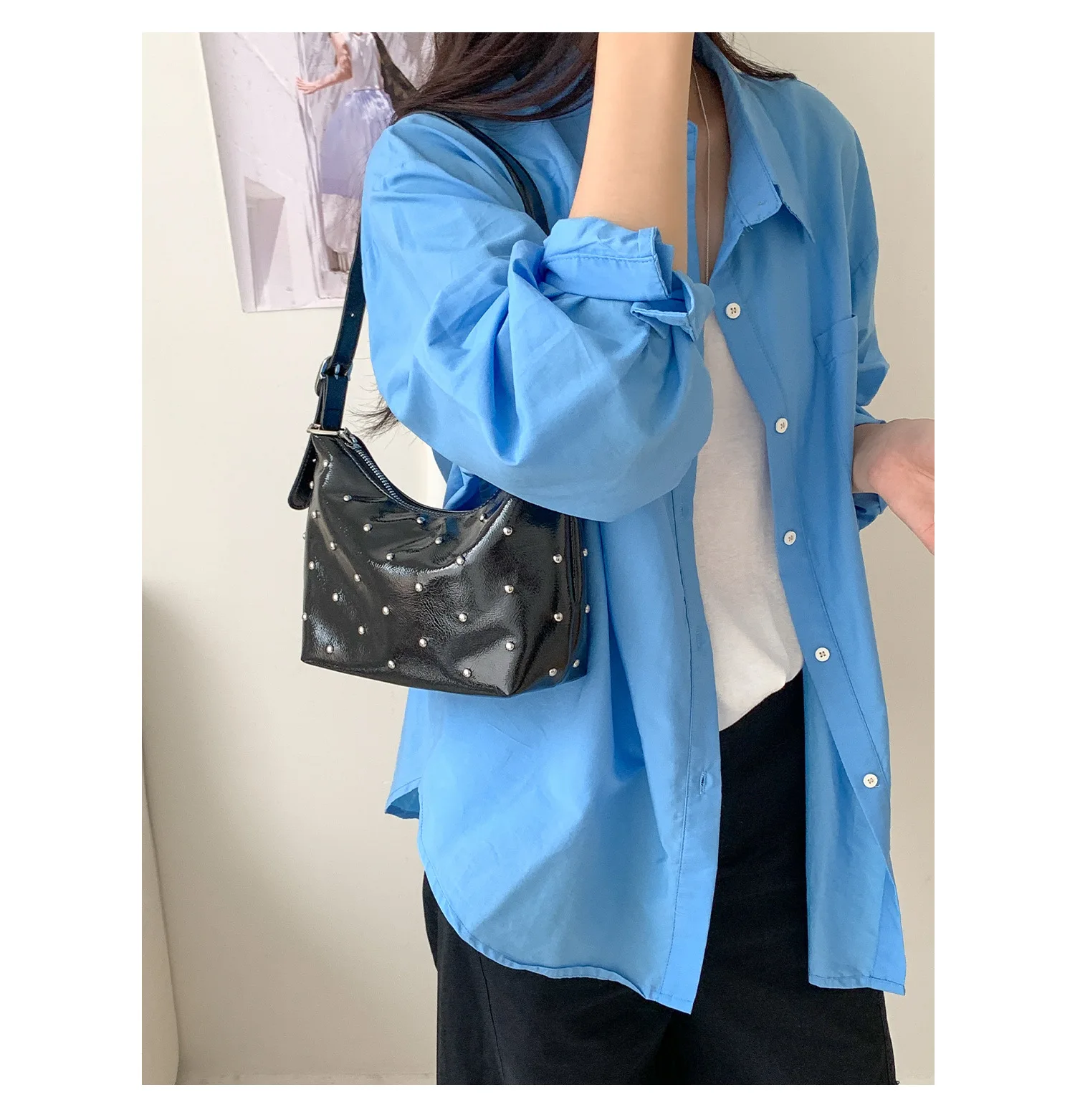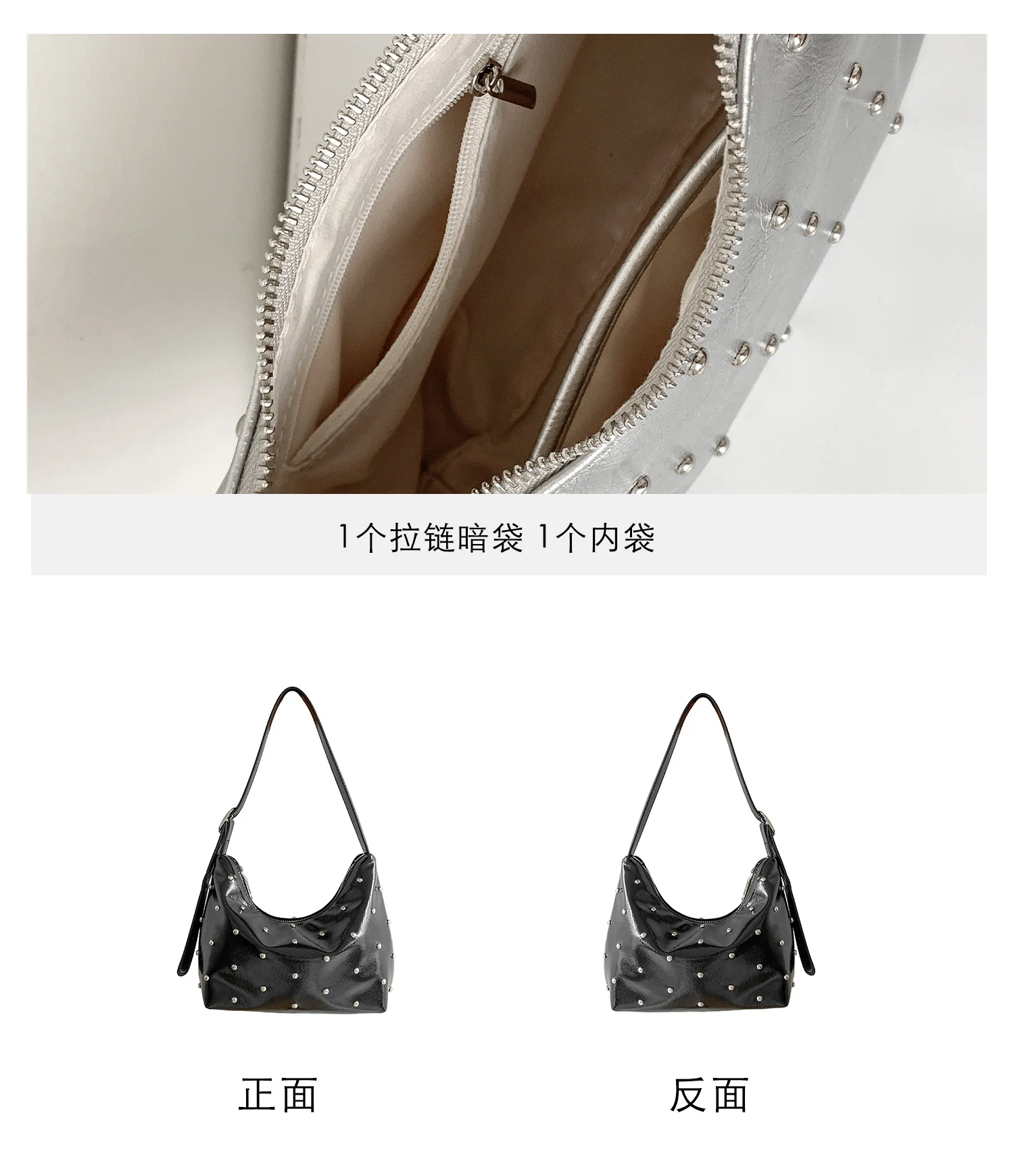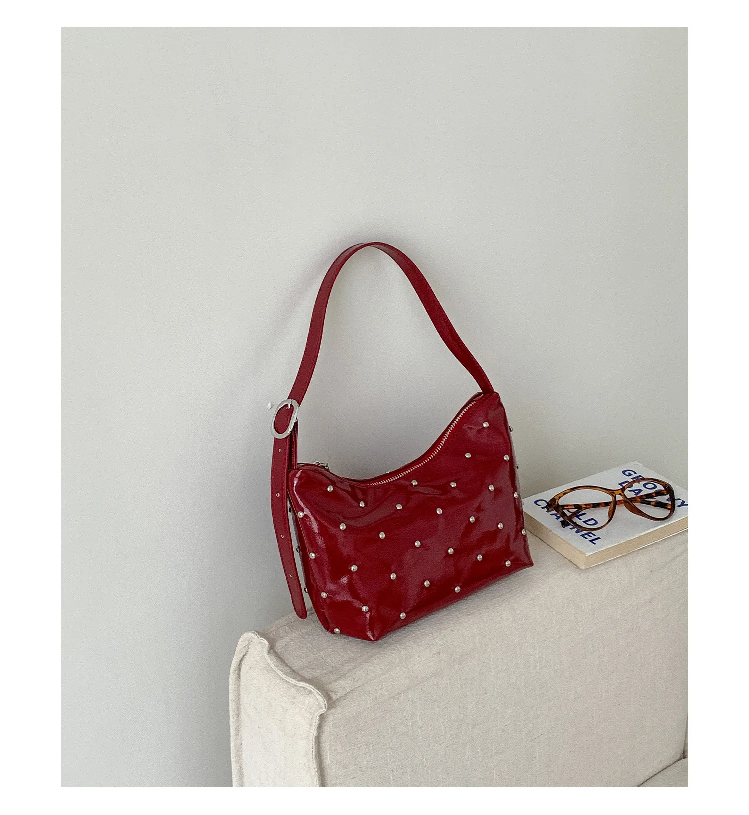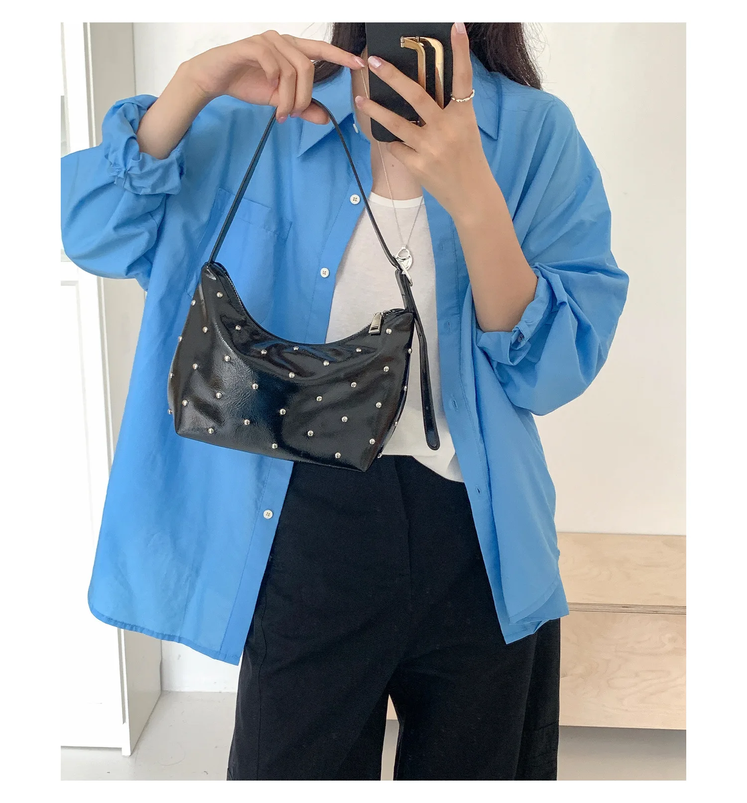 Qfdian Fashion Women Luxury Design Rivets Underarm Bag Punk All Match Office Lady Handbags Vintage Casual Shoulder Bags Y2k Aesthetic