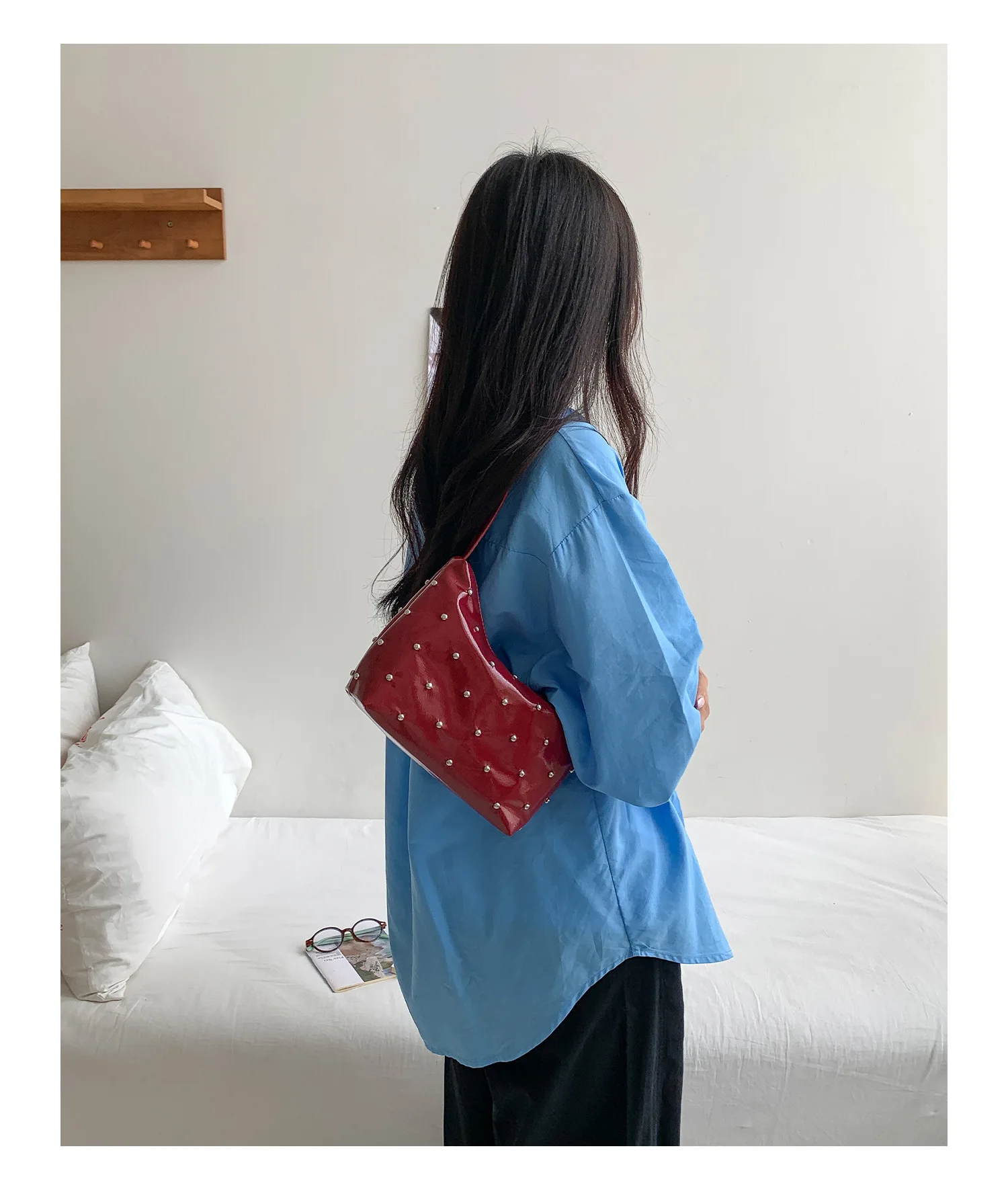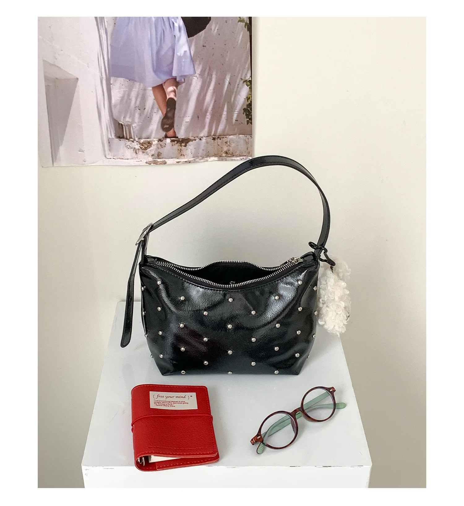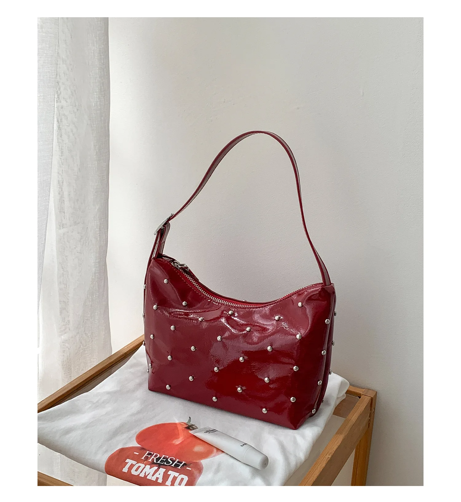 Qfdian Fashion Women Luxury Design Rivets Underarm Bag Punk All Match Office Lady Handbags Vintage Casual Shoulder Bags Y2k Aesthetic
