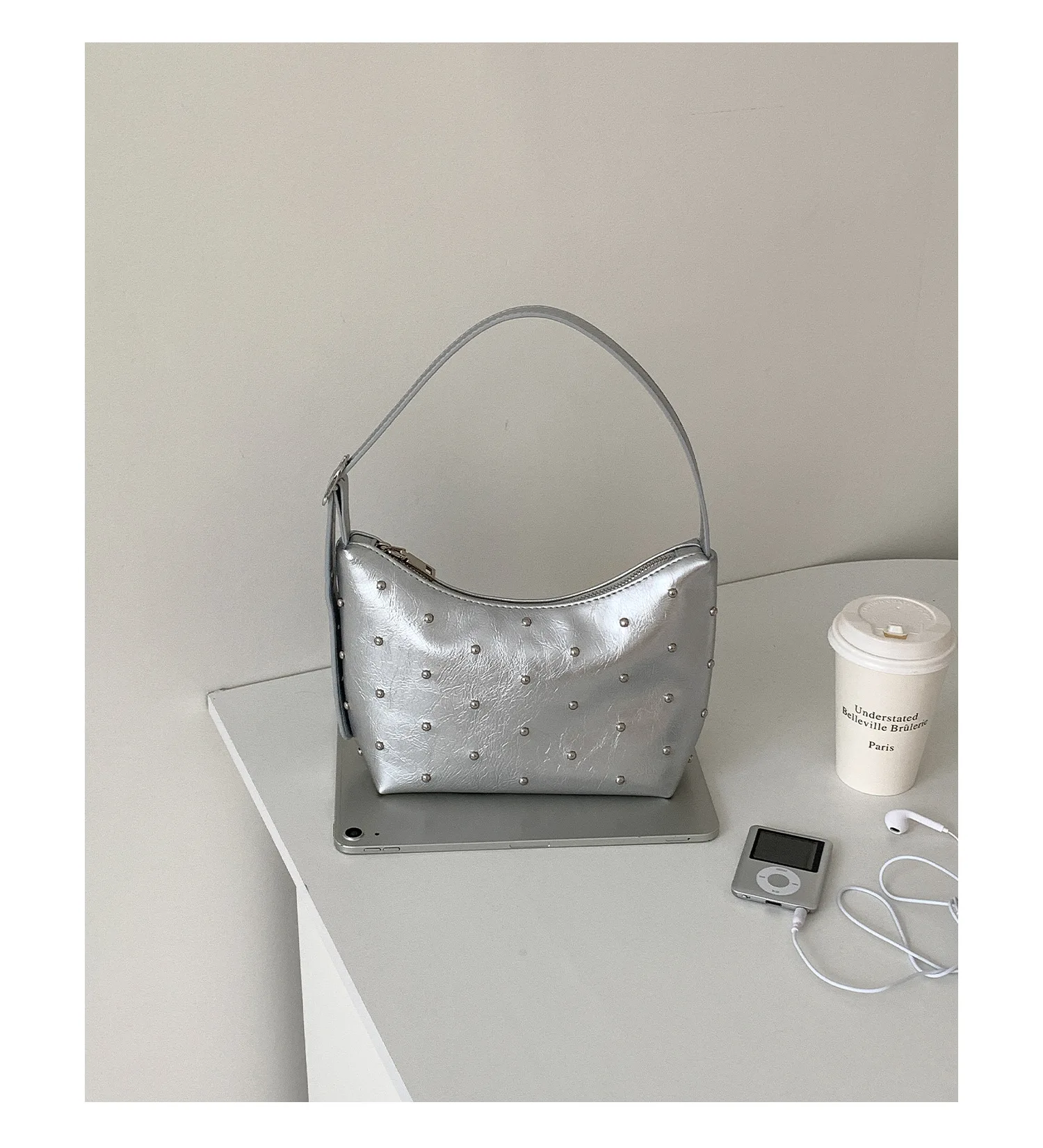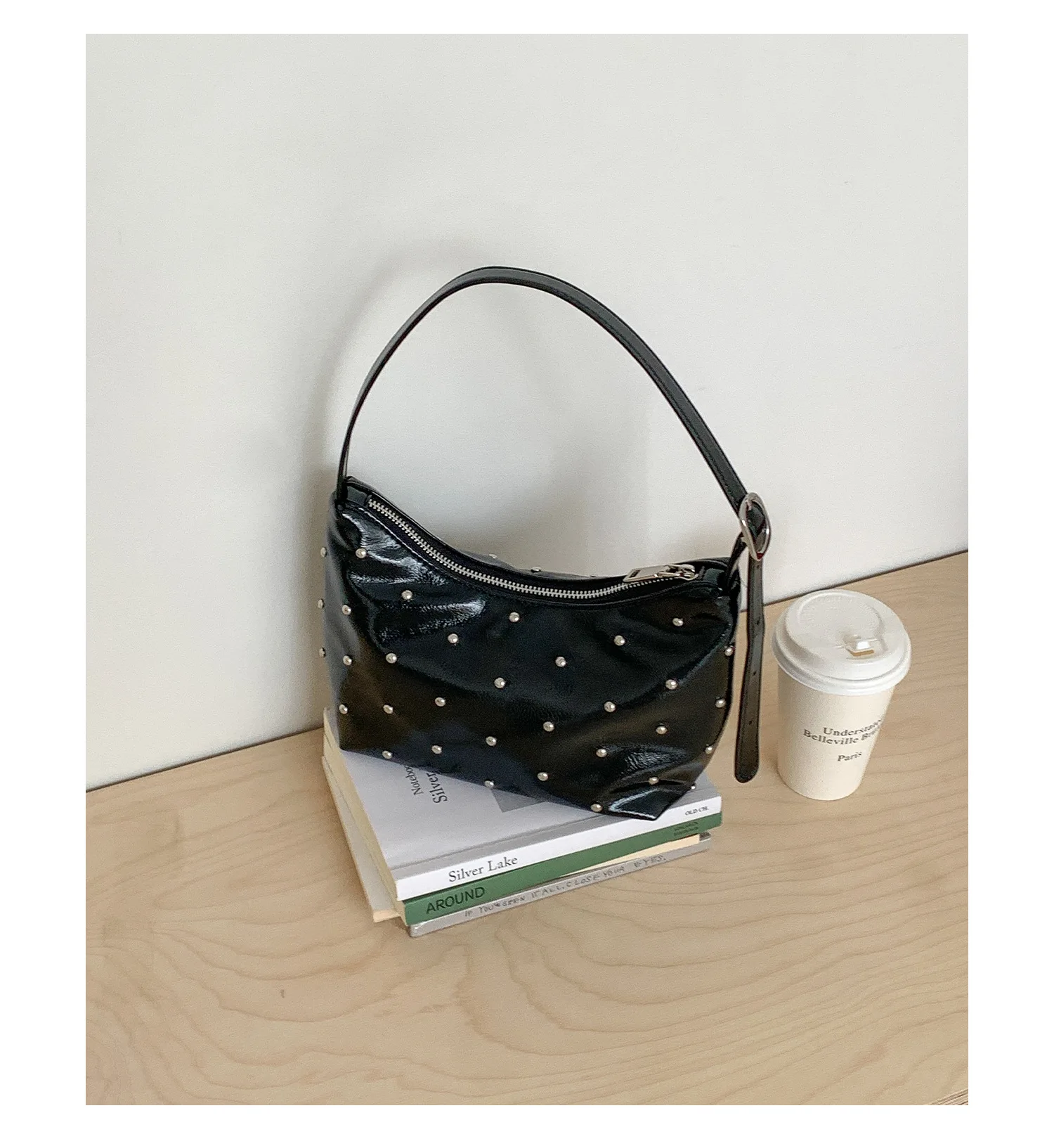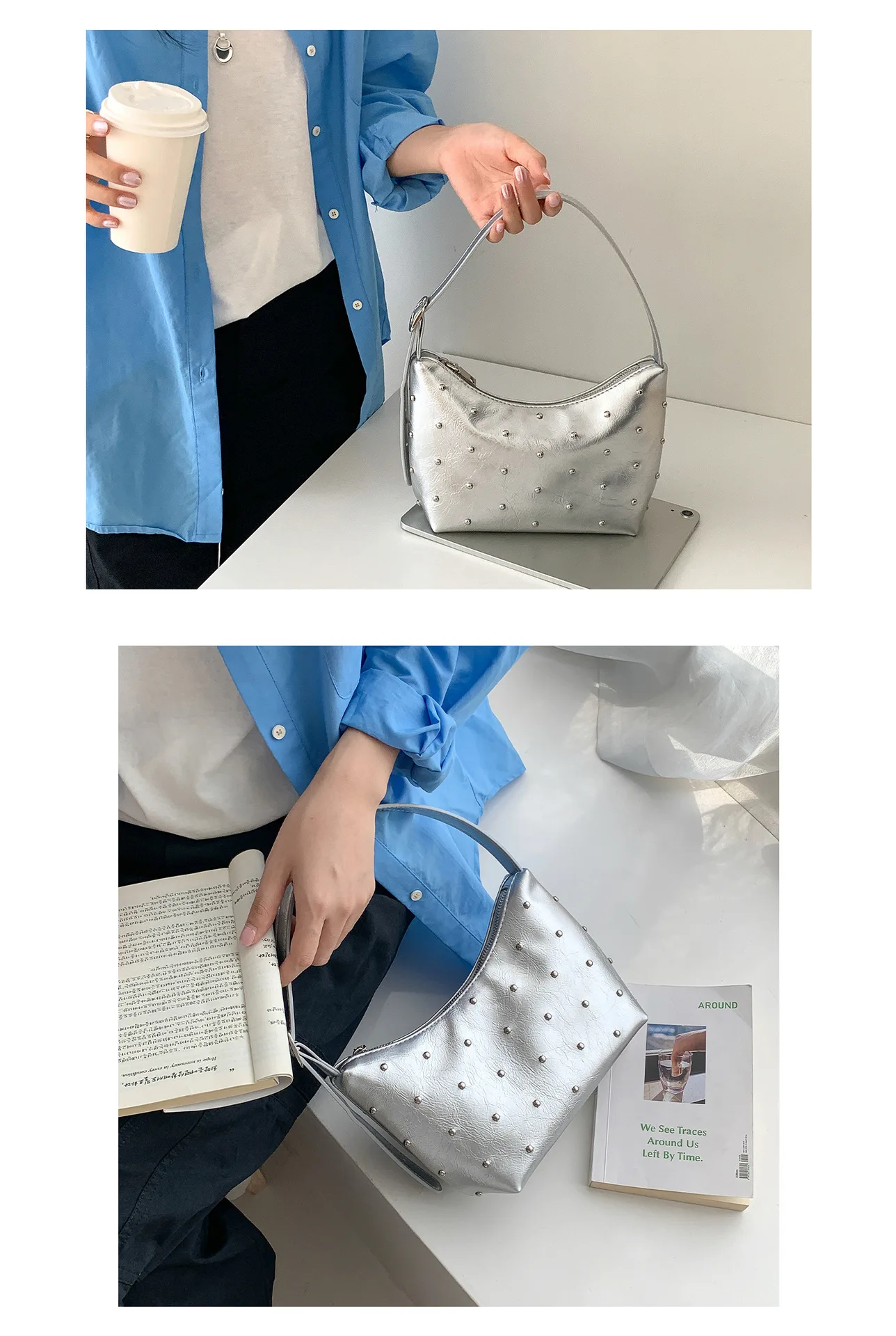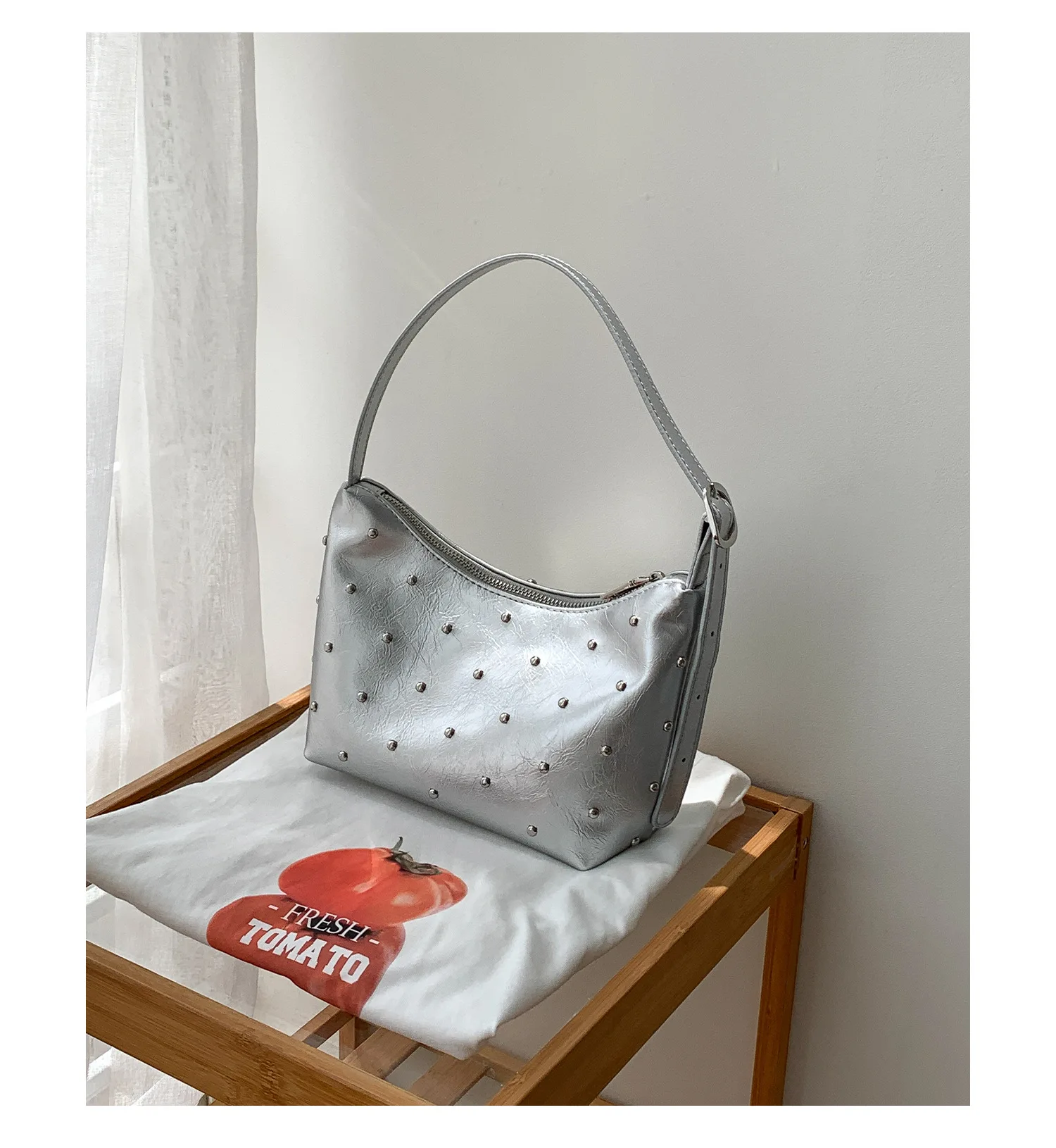 Qfdian Fashion Women Luxury Design Rivets Underarm Bag Punk All Match Office Lady Handbags Vintage Casual Shoulder Bags Y2k Aesthetic
