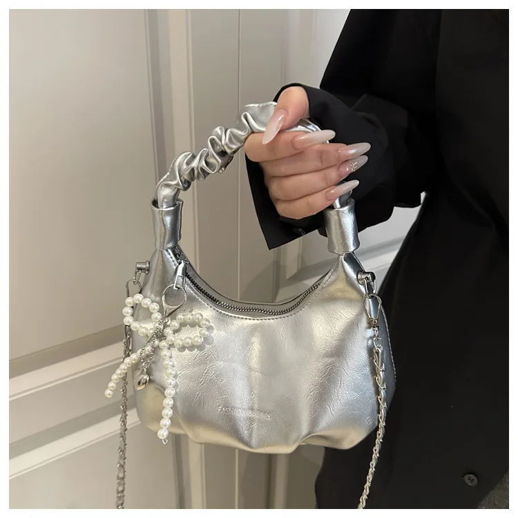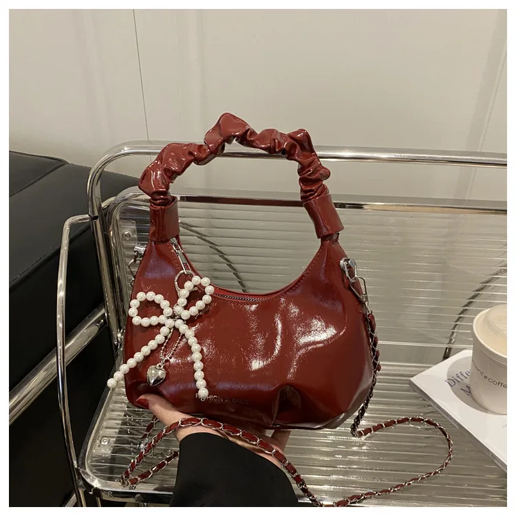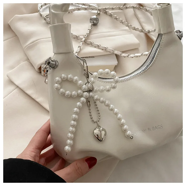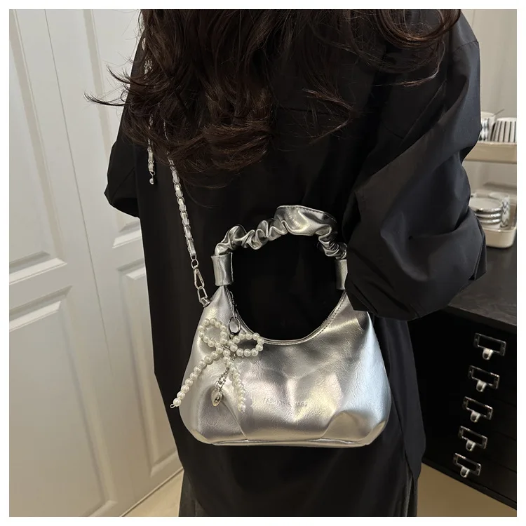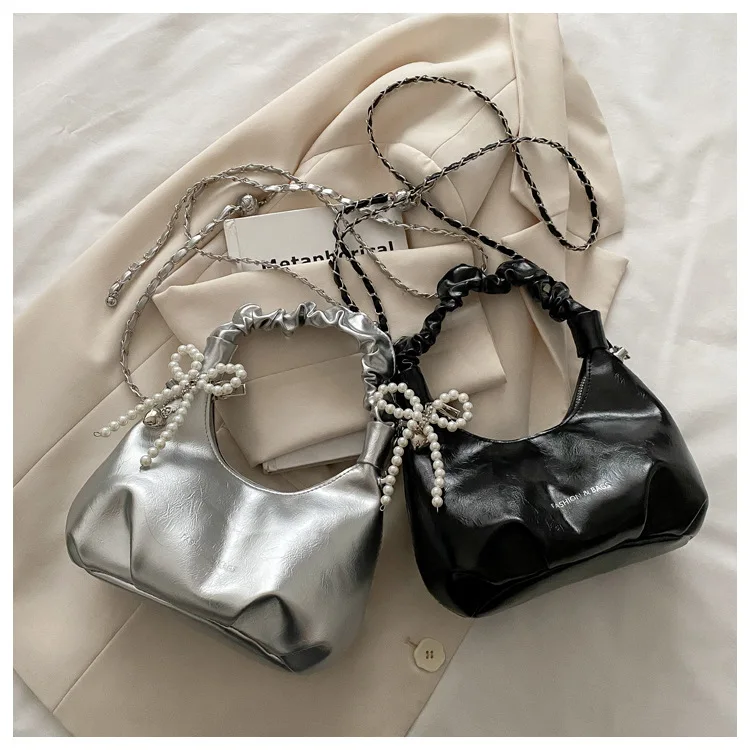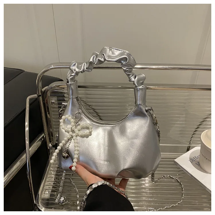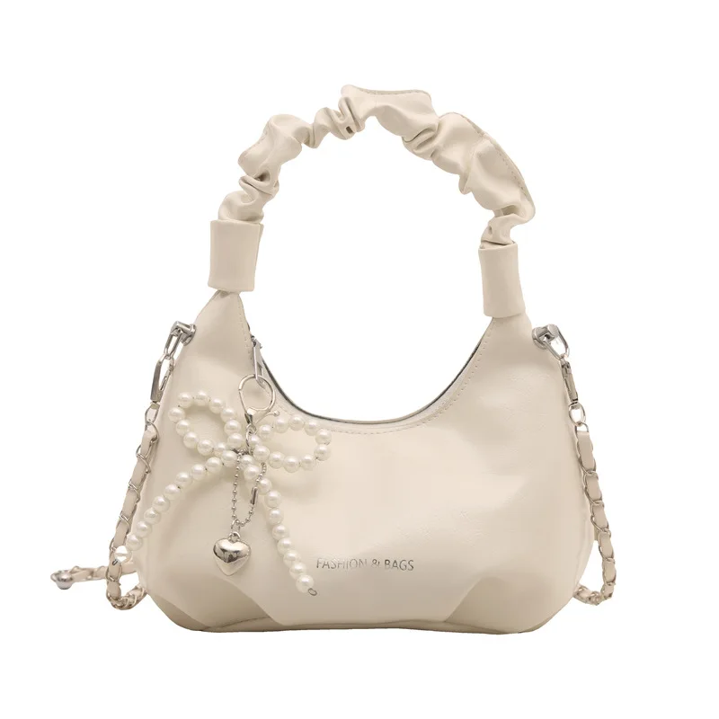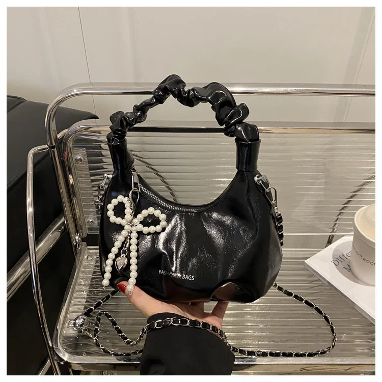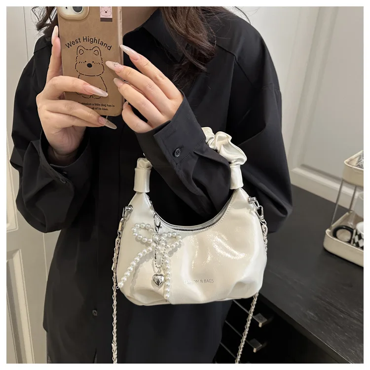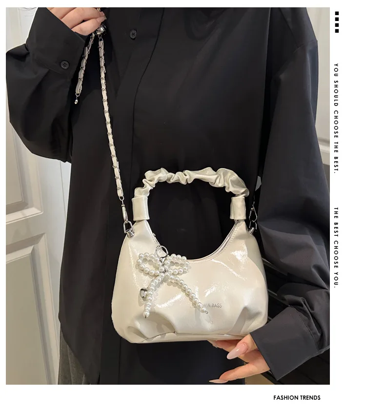 Qfdian Fashionable pleated handbag for women, Bow tie pendant ,fashionable shoulder bag, simple and stylish crossbody bag, chain trend