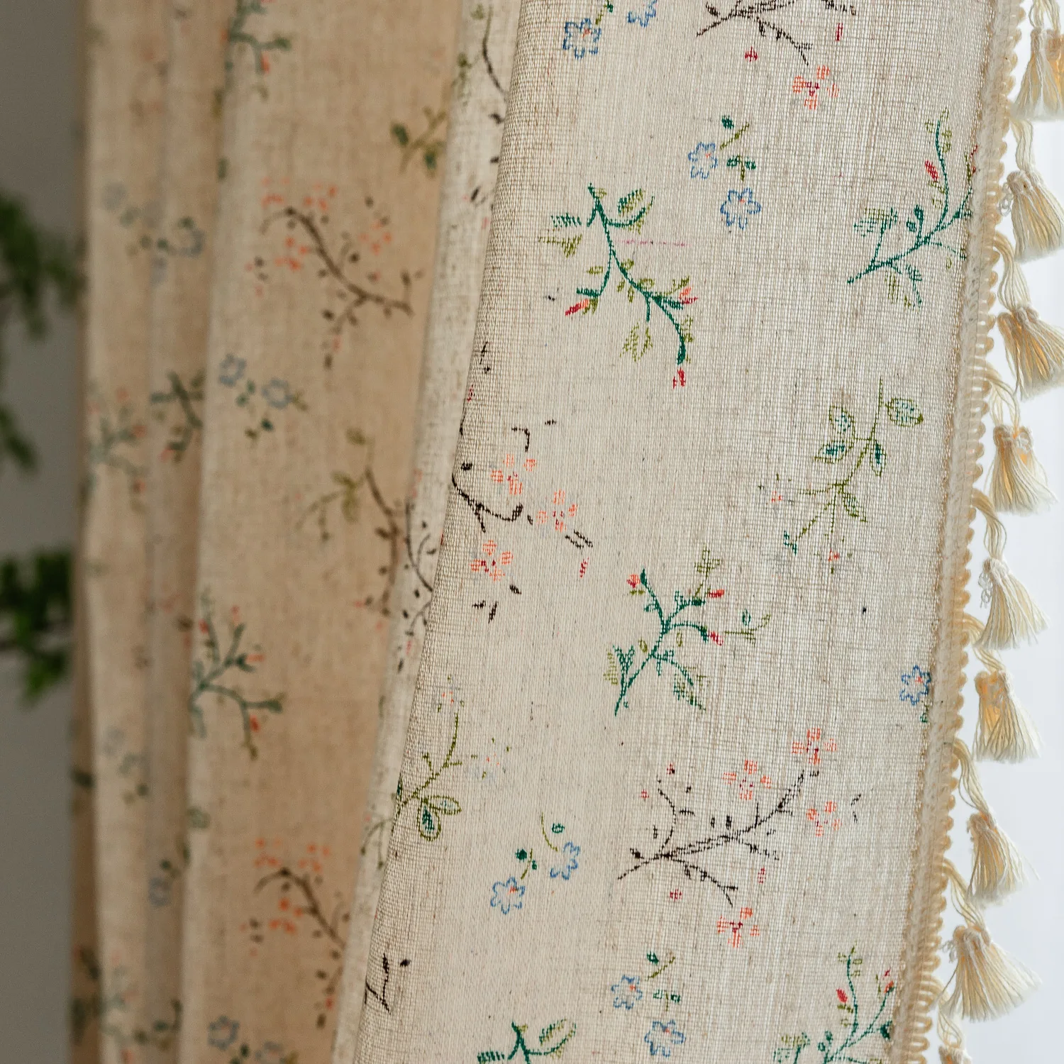 【Bohemian Design】Our floral curtains made of natural cotton linen blend fabric which is soft handfeel and looks rustic and chic ,farmhouse vintage curtains featuring with exquisite floral and bohemian tassel, beautifully frames your windows with a soft and hazy vision.