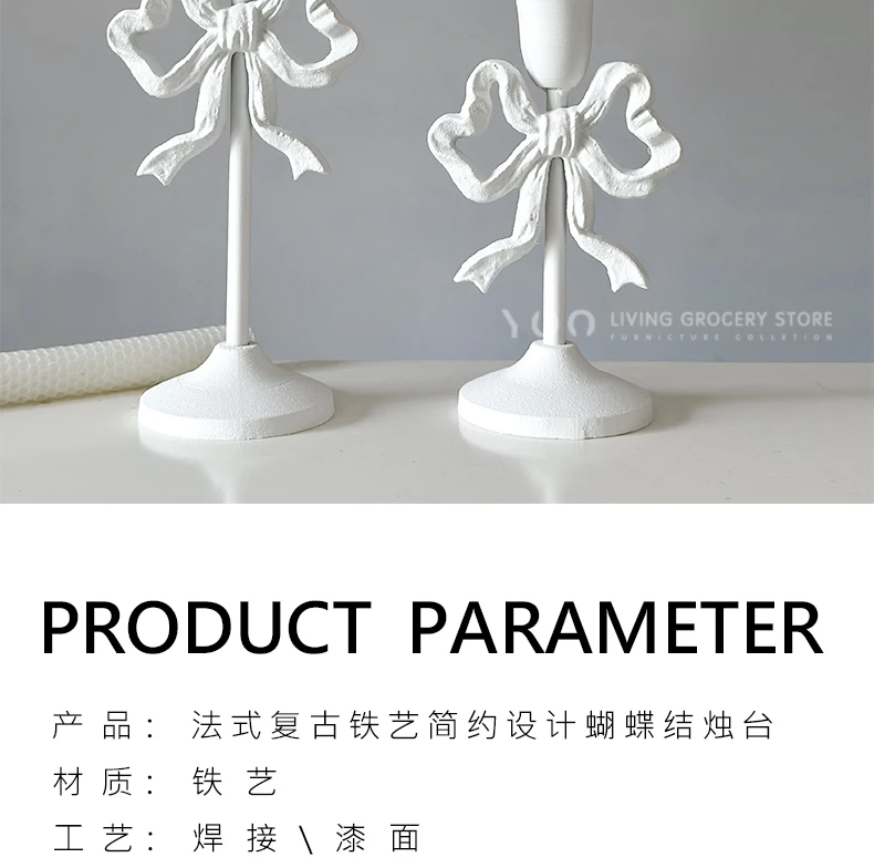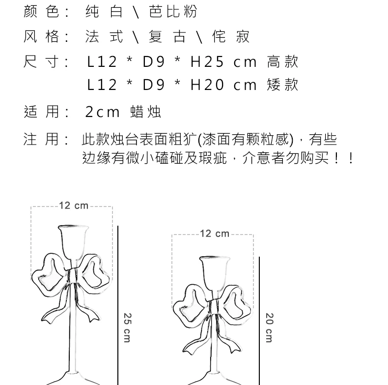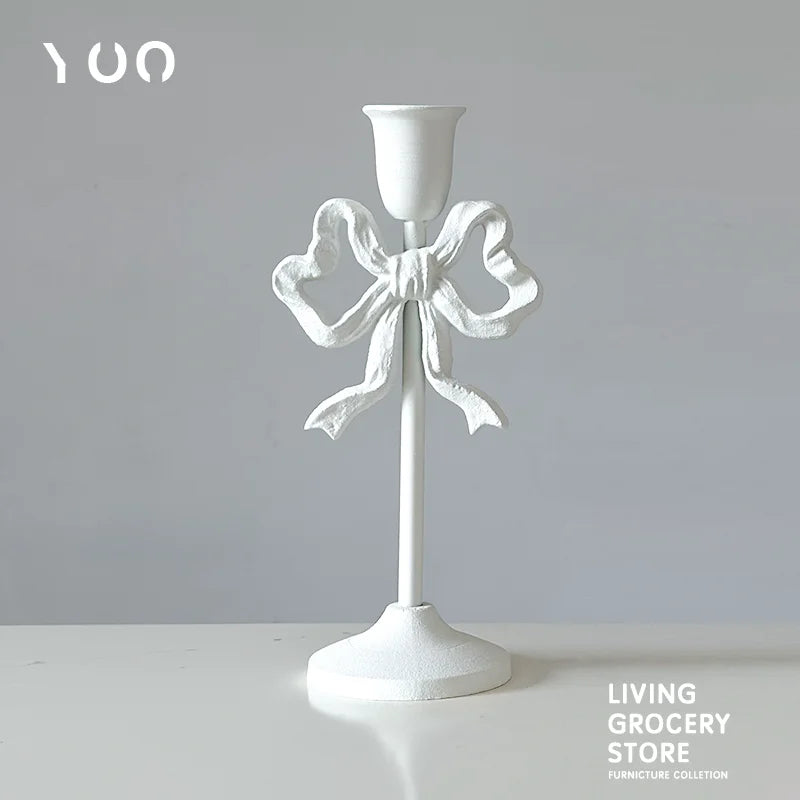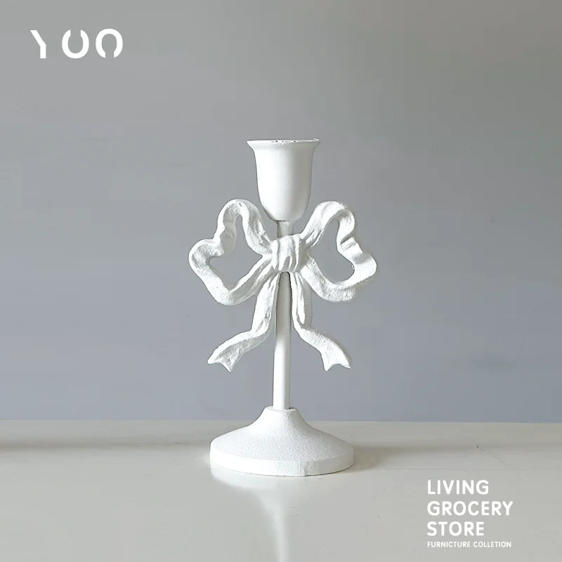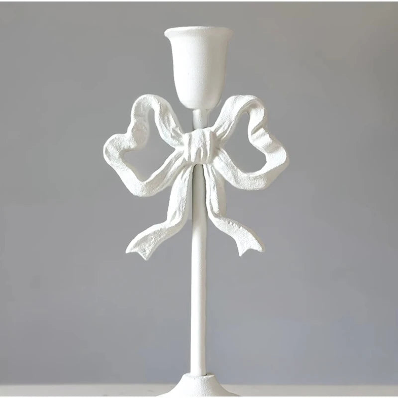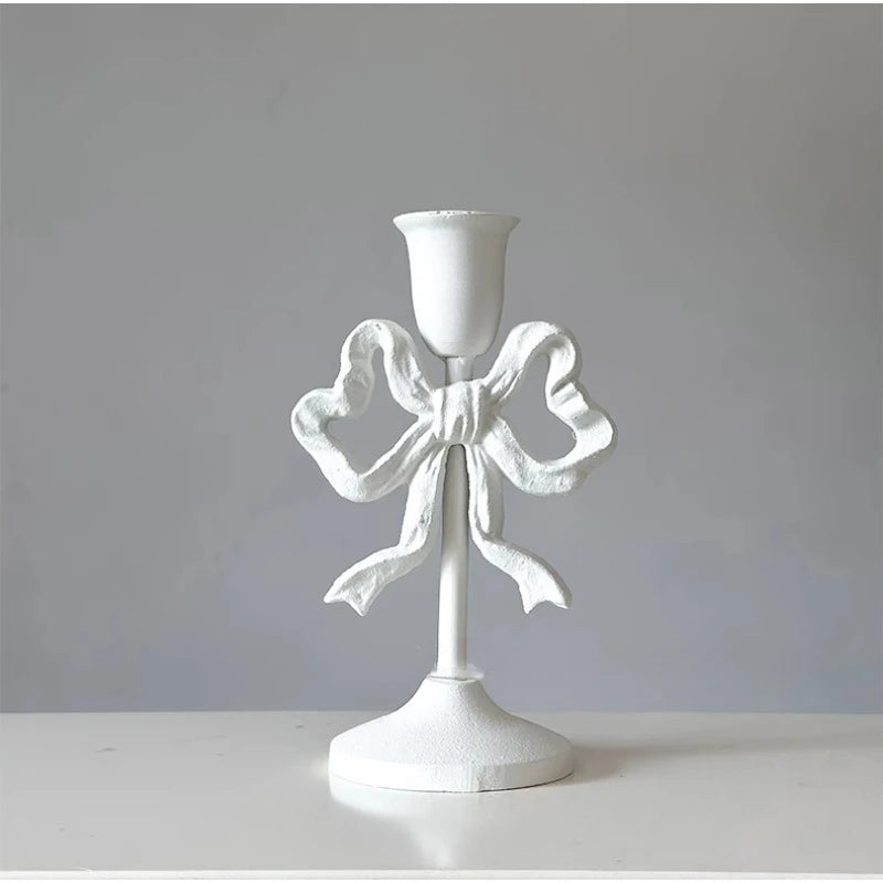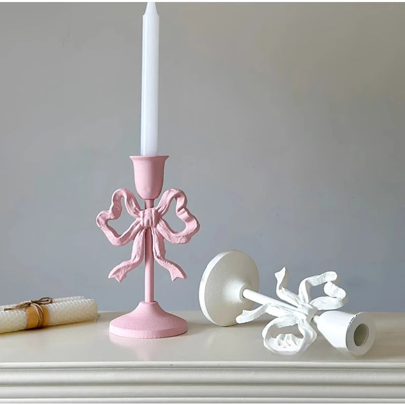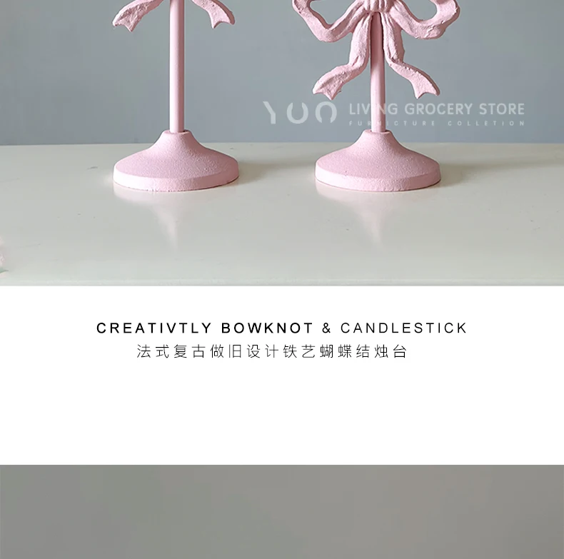 Qfdian French Retro Pink Bow Candle Holder Decoration Dining Table Club Villa Decoration Crafts Wedding Photography Candle Props