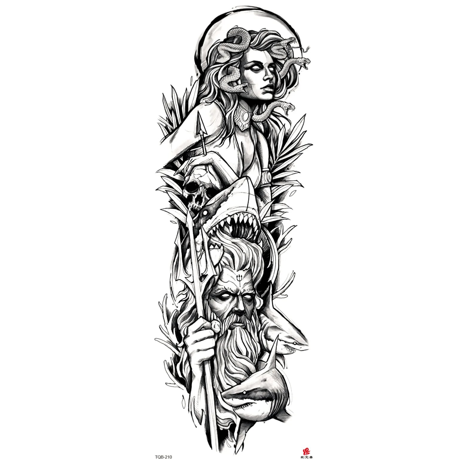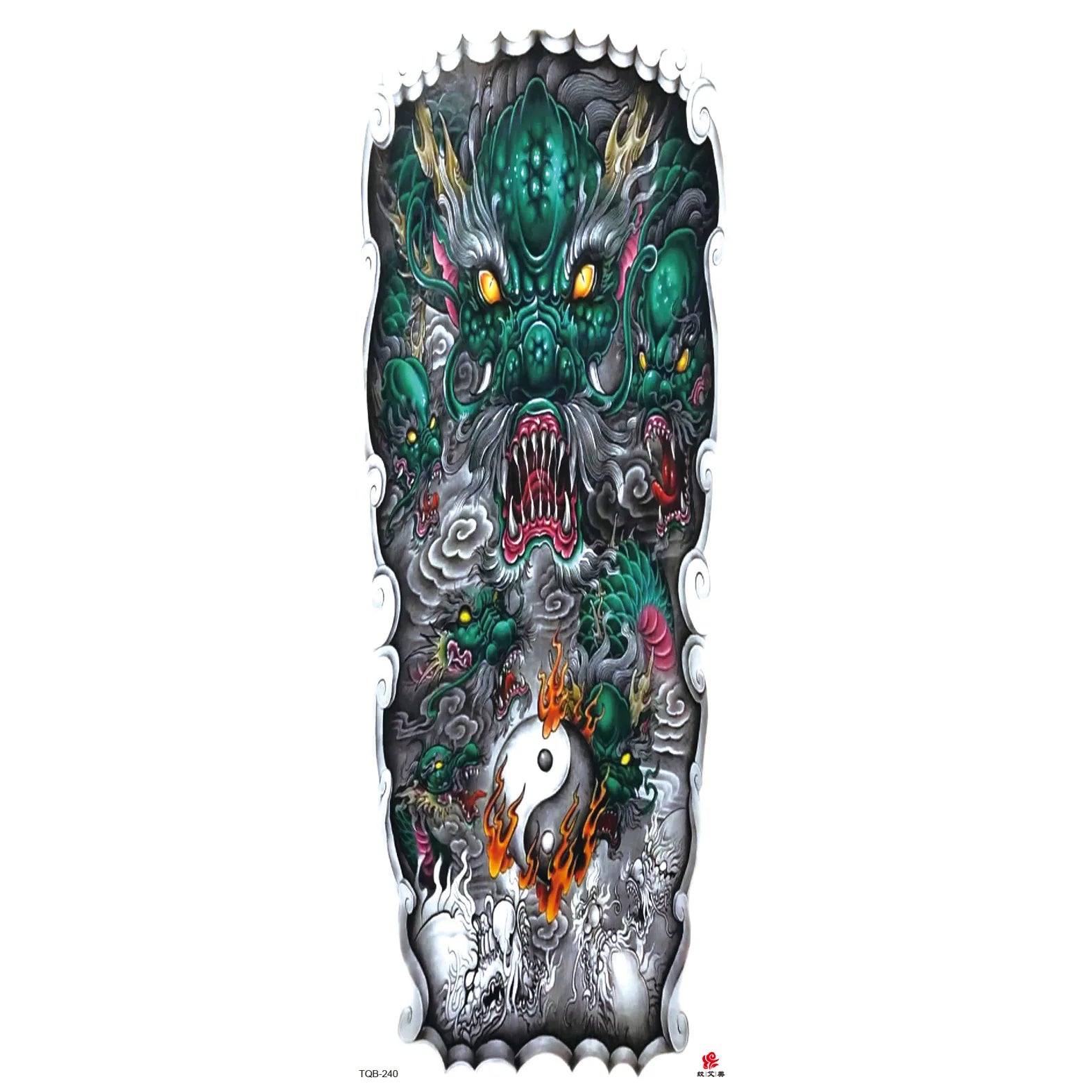 Qfdian Full Arm Tattoo Waterproof Temporary StickerCool Skull Fish Dragon Lion Clock Men Women Art Fake Sticker Glitter Style