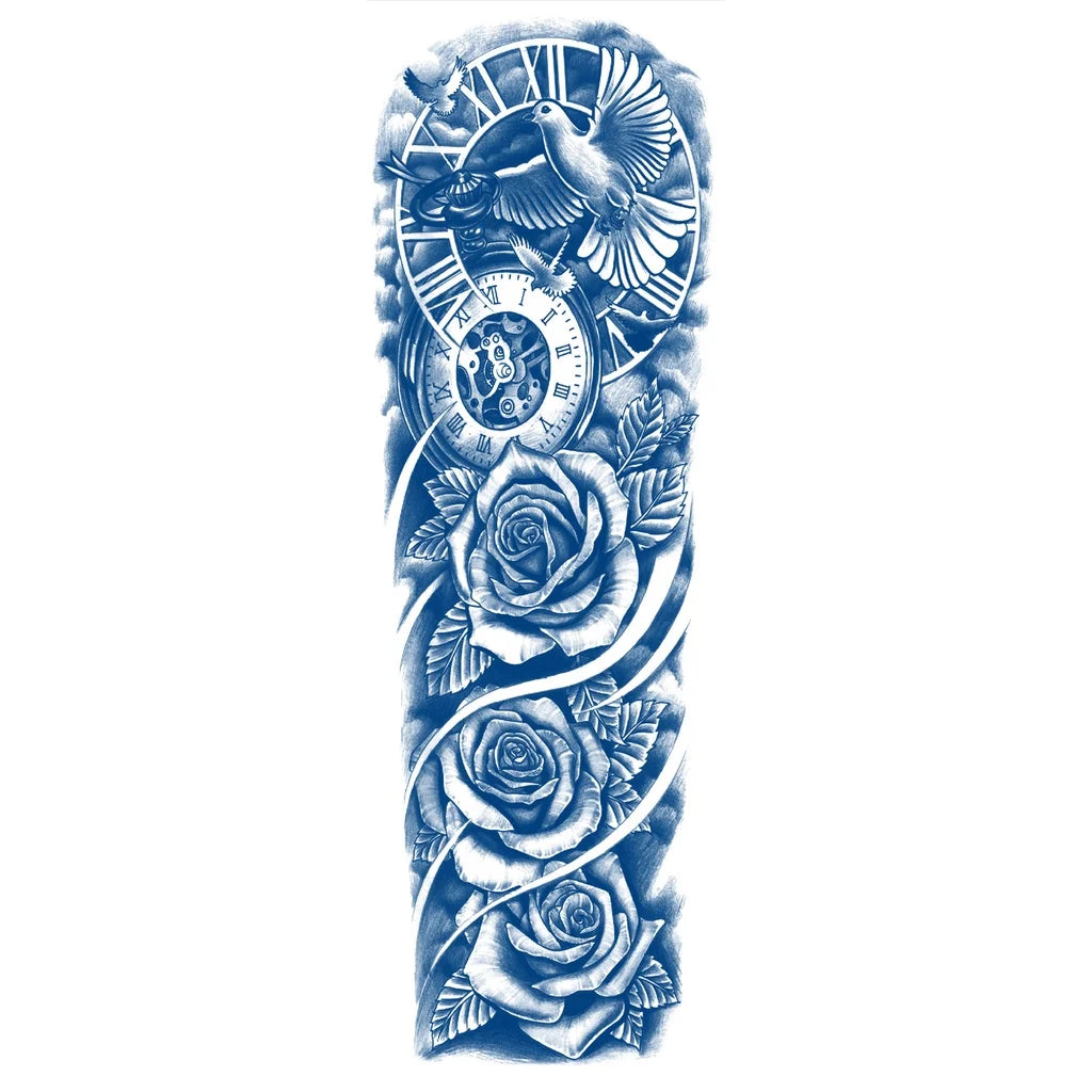 Juice ink Full Arm Waterproof Tattoo Sticker Flower Arm Indian Women Animal Wolf Lion Pattern Black Tattoos Sleeve For Men Body Art