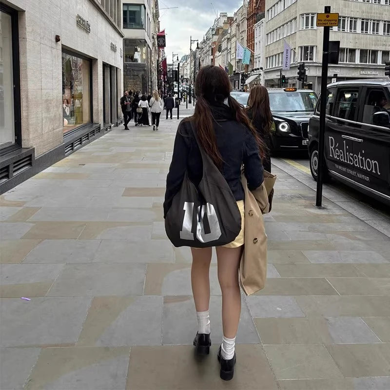 Qfdian Grunge Casual Vintage Print Tote Bags High-capacity Y2k Aesthetic Women's Handbags Streetwear Fashion Ins Shoulder Underarm Bag