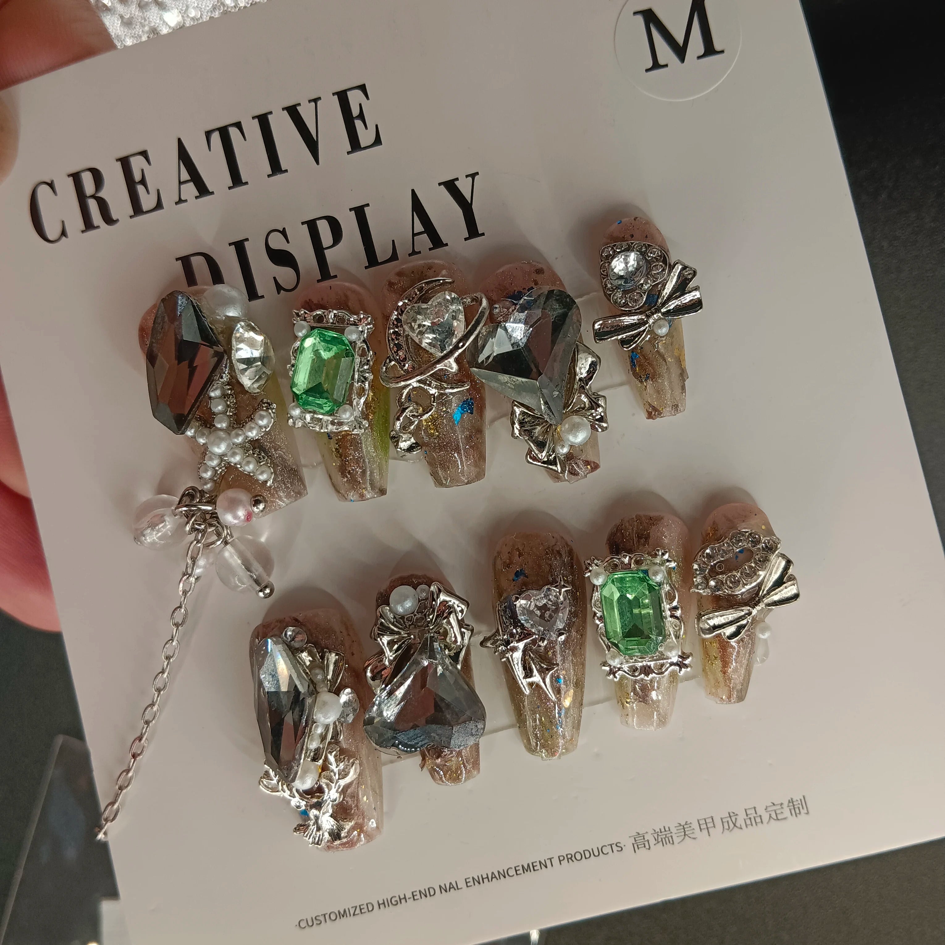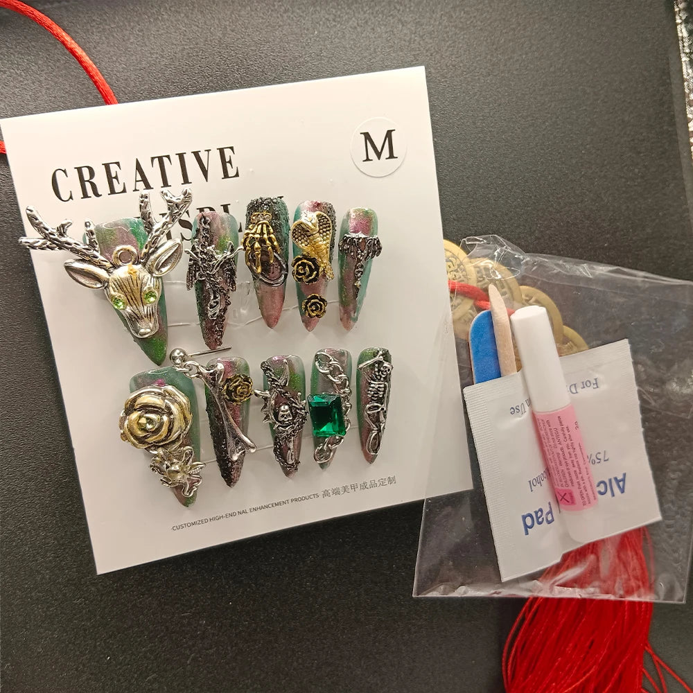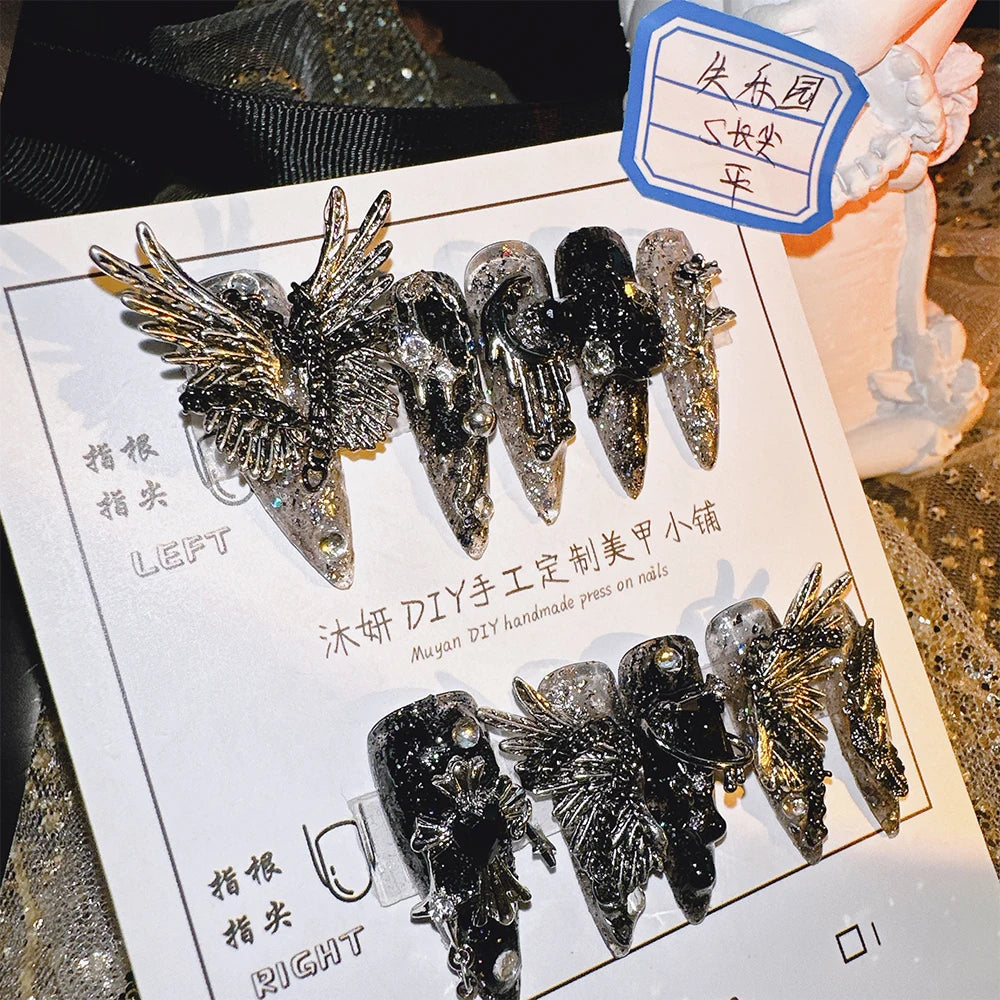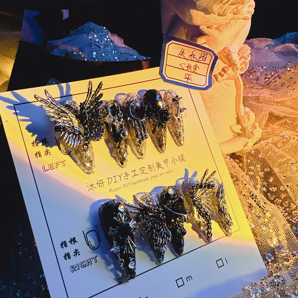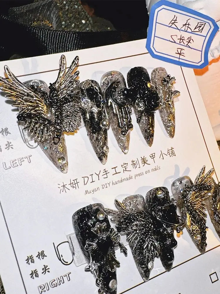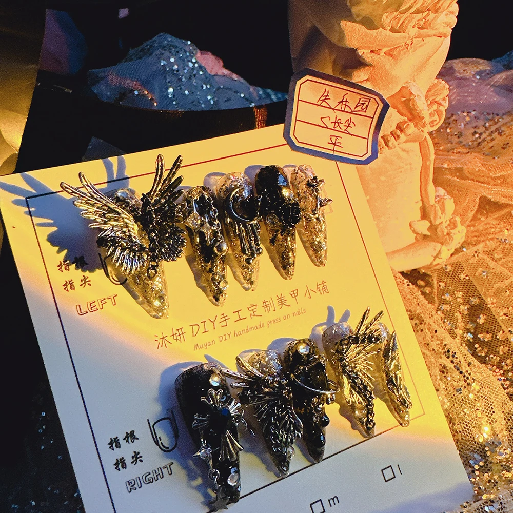 Qfdian Handmade Nail Shot of Spicy Girl Heavy Industry Metal Lost Paradise Subculture Super Cool Spicy Girl Dark Personality Nails