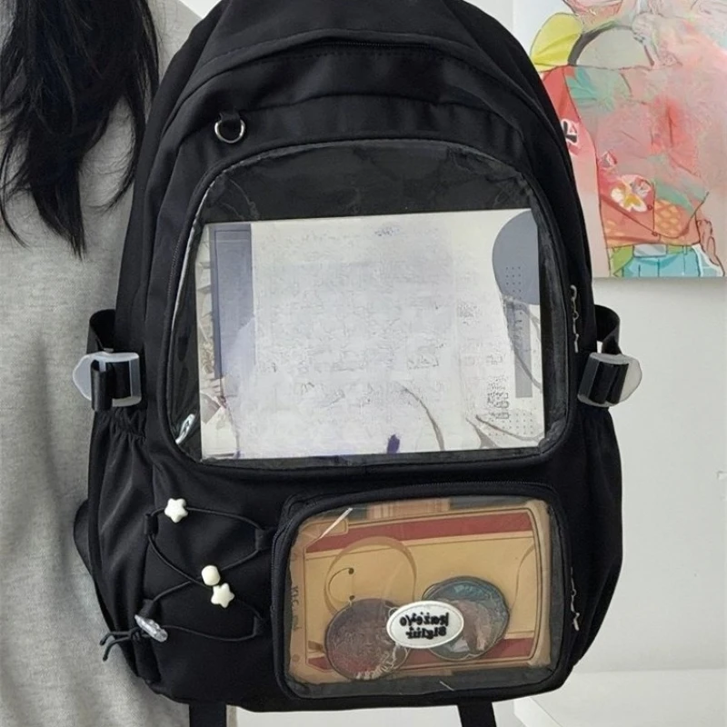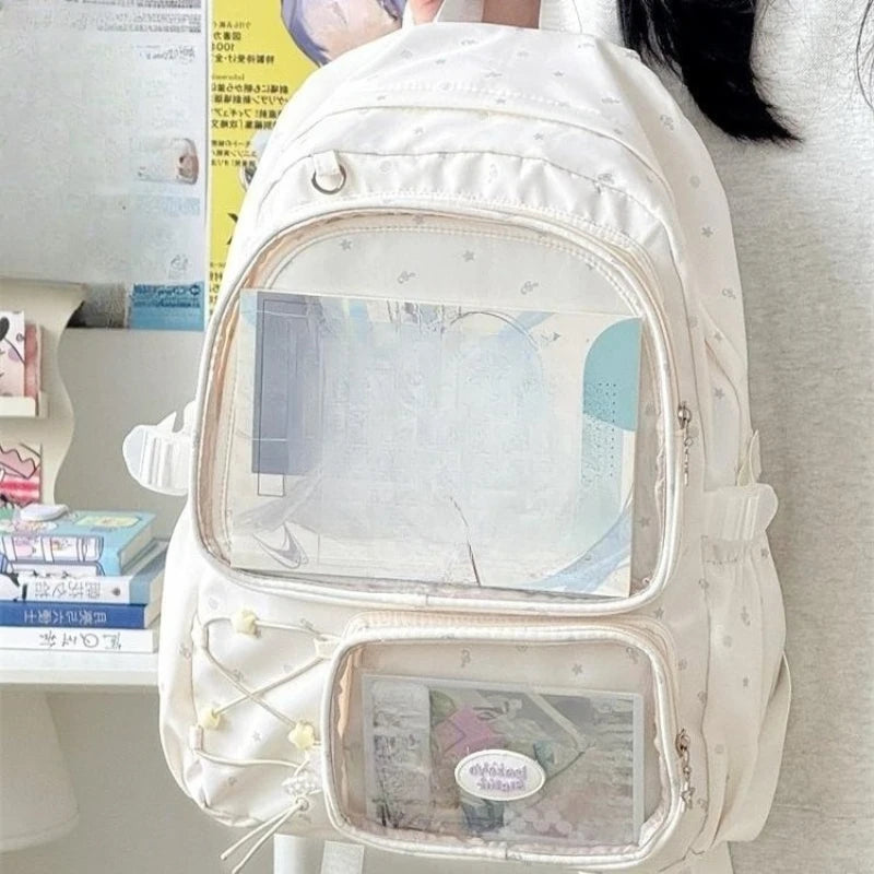 Qfdian High-capacity Y2k Aesthetic Star Print Schoolbags Transparent All Match Casual Ita Bags Sweet Preppy Backpacks for Women Student
