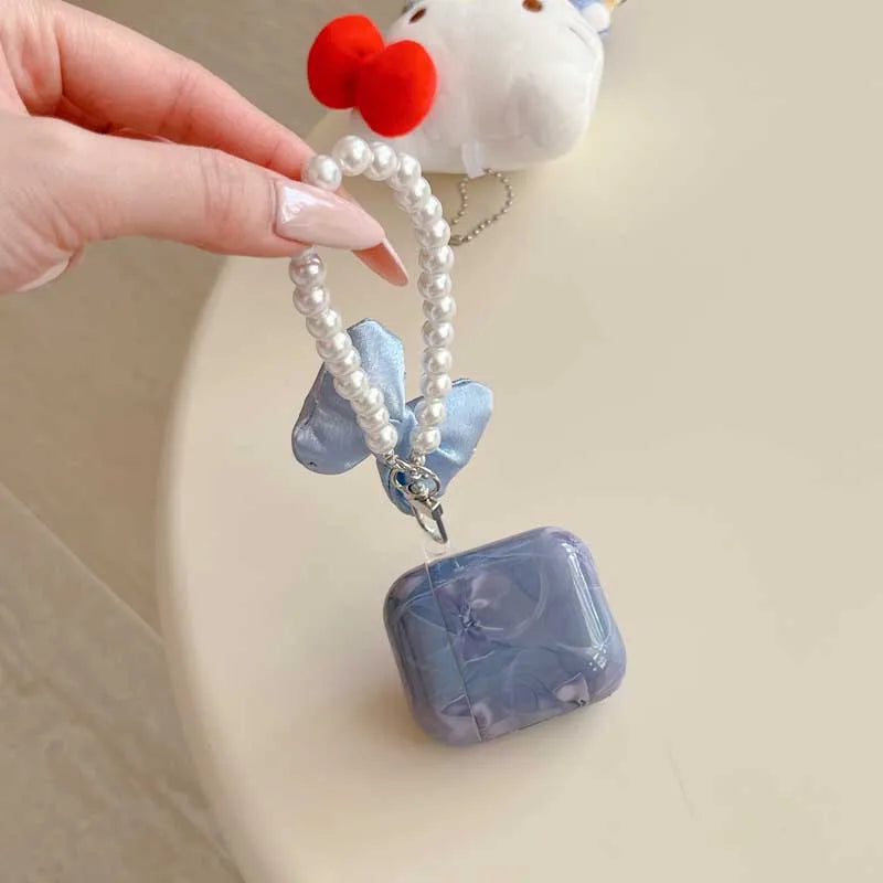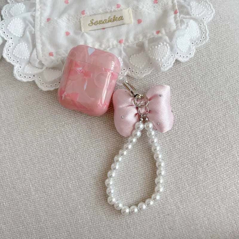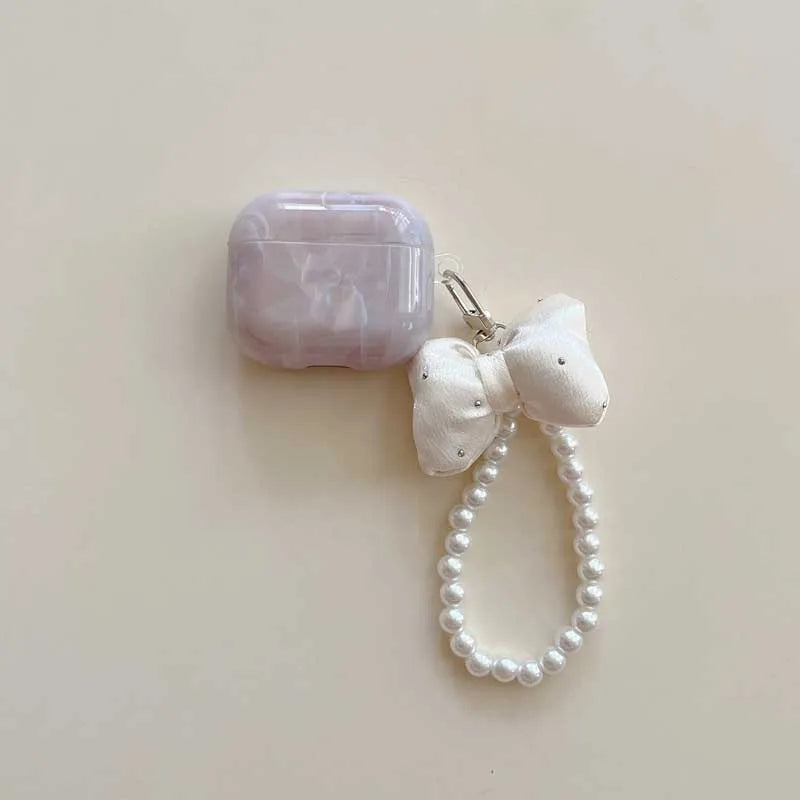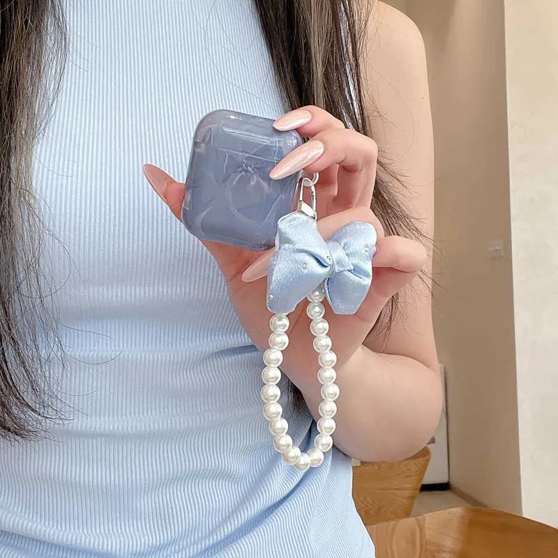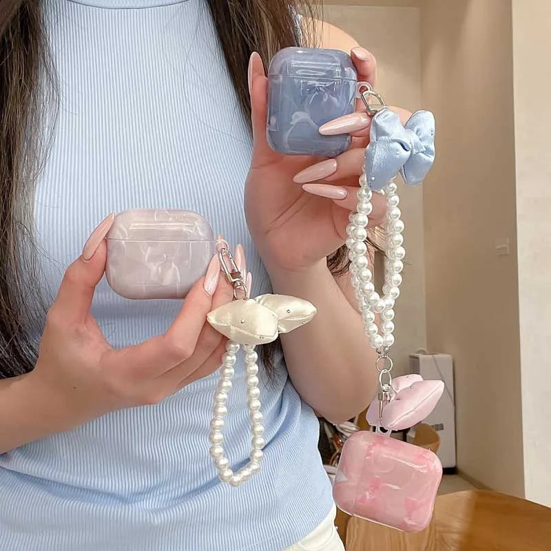 Qfdian INS Korea Bow Knot Pearl Pendant Chain Earphone Case For Airpods Pro3 1 2 3 4 Cover Soft For Air Pods Pro Pro2nd Fundas
