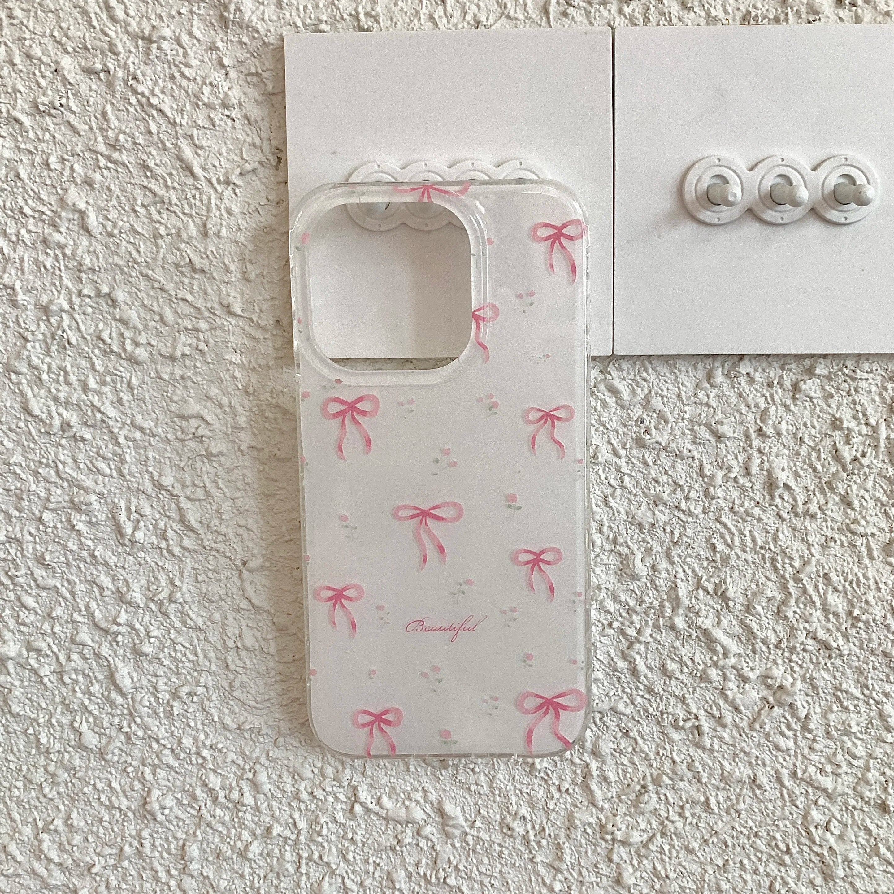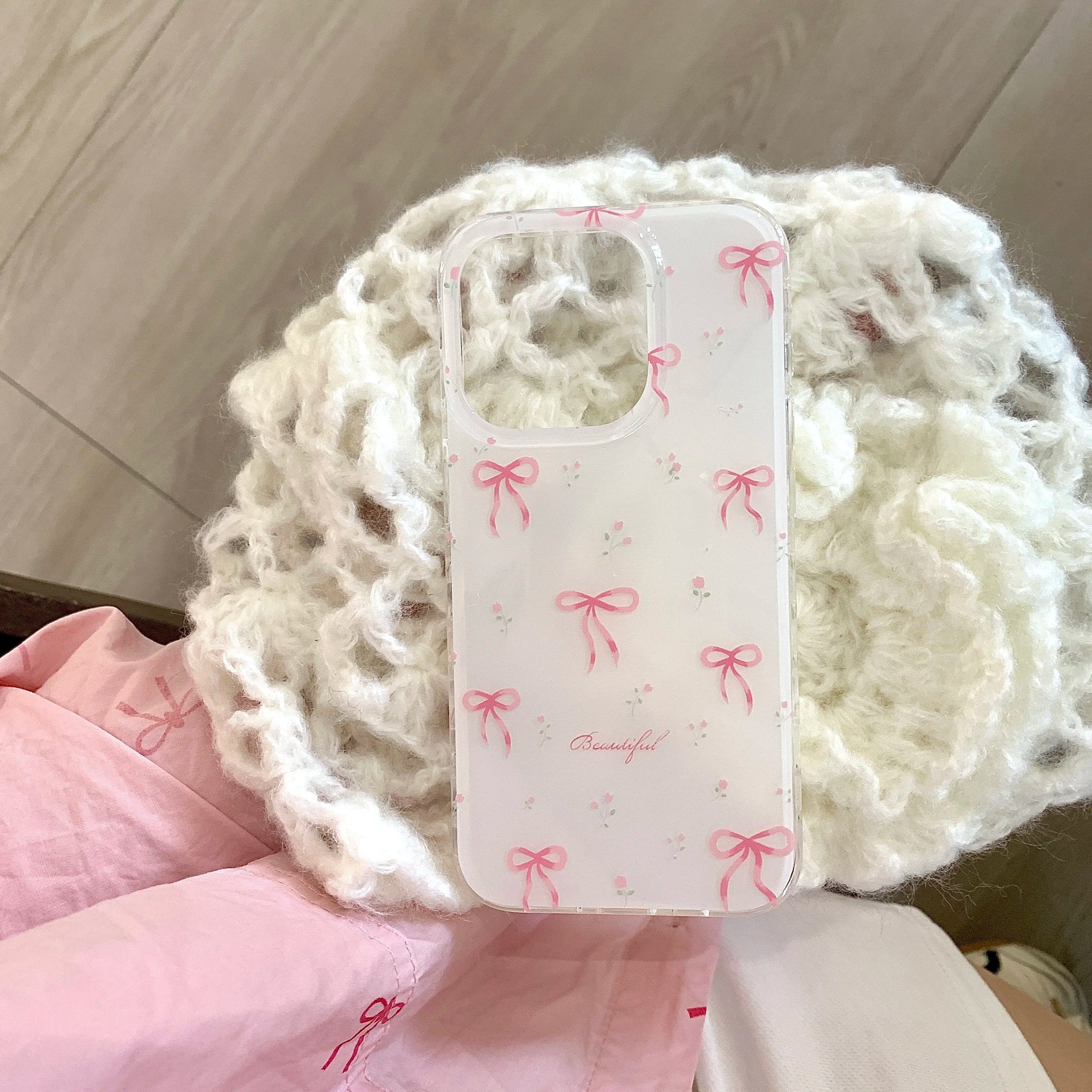 Qfdian INS Korea Pink Bow Knot Phone Case For Iphone 15ProMax 16Pro 13 14 15 16 Pro Max 14ProMax 16ProMax Cover Fundas