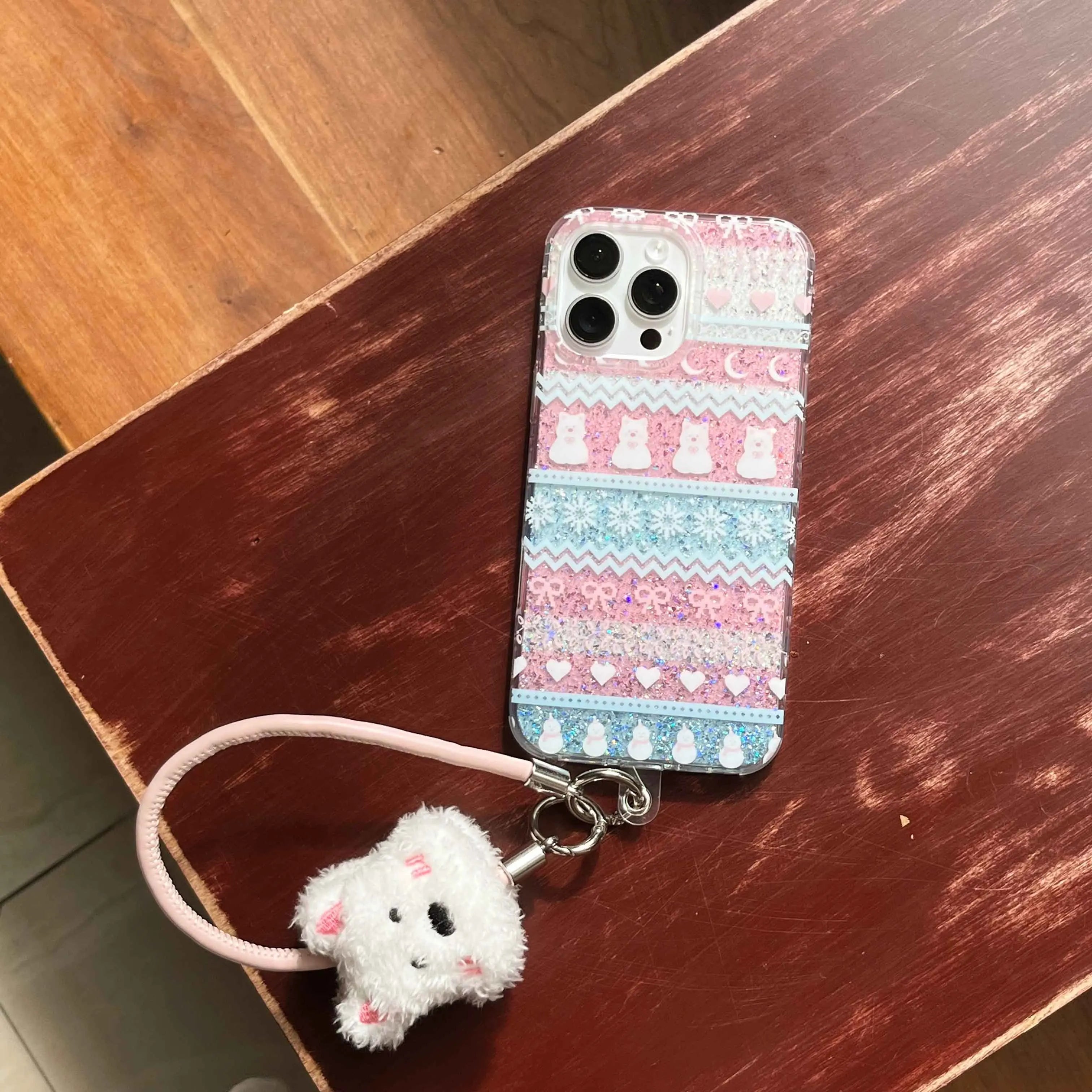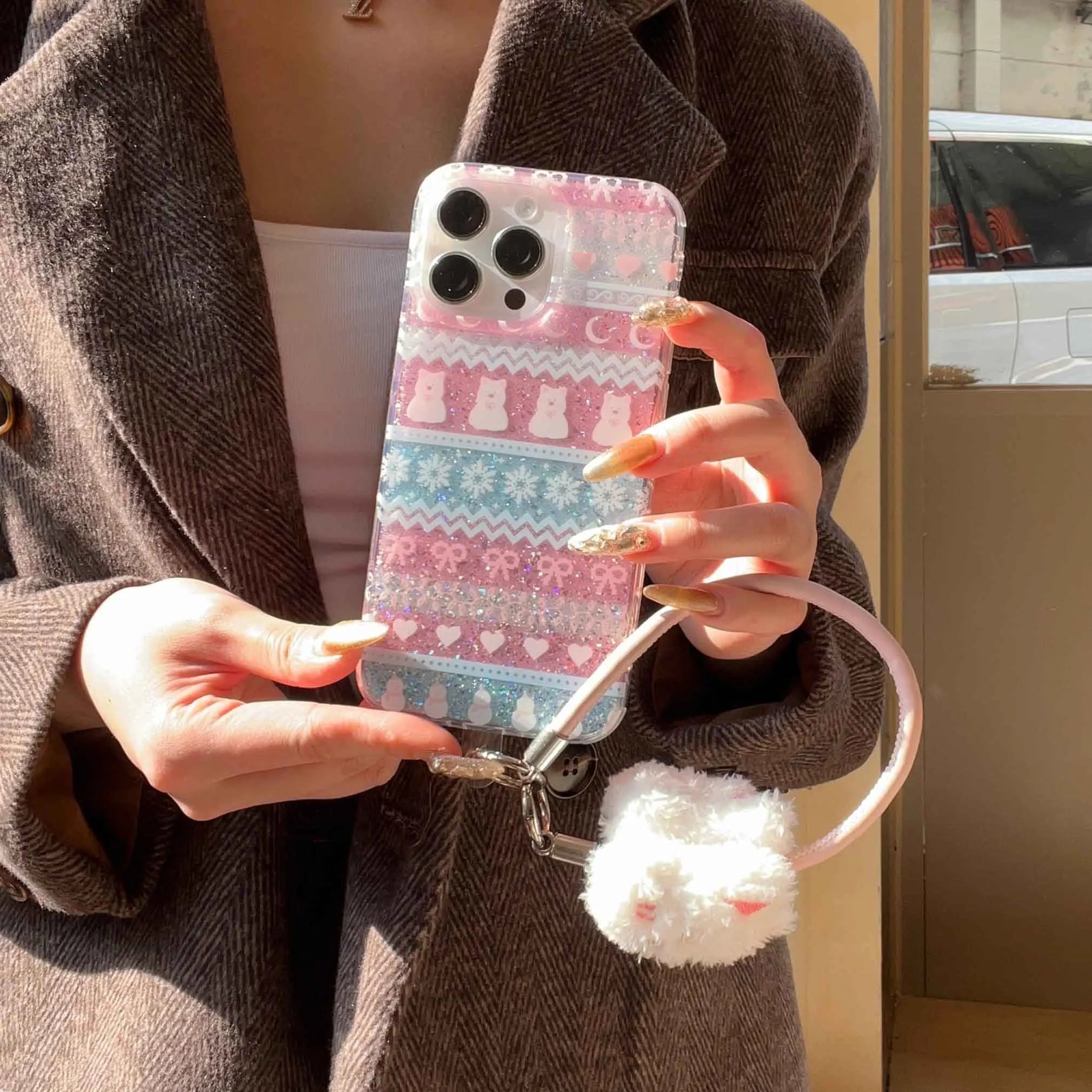 Qfdian Ins Winter Fair Puppy Shiny Fundas for iphone 16Pro 13pro 15pro 14 13 15 16 pro max 14promax shell protect cute rope phone case