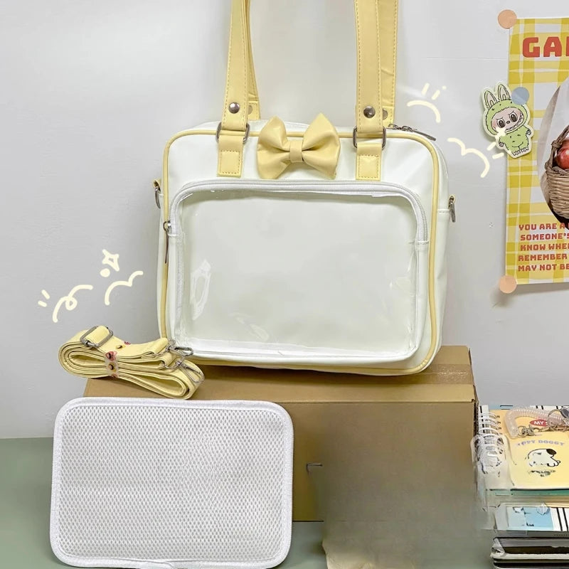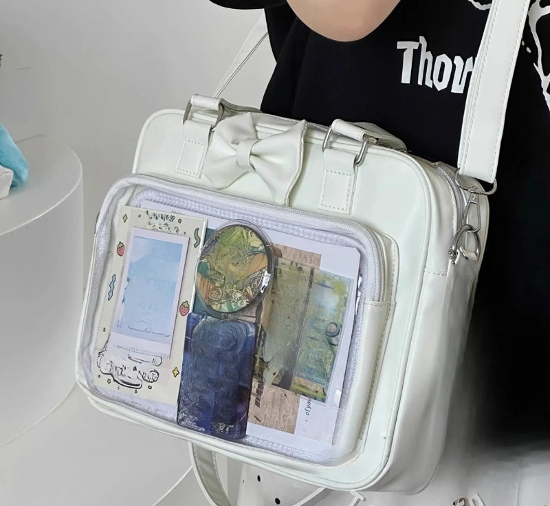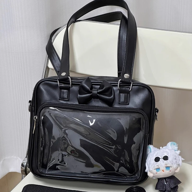 Qfdian Japanese Jk Girls Kawaii Cute Bow Ita Bags Pu Leather Fashion Women Transparent Underarm Bag Sweet Y2k Vintage Shoulder Handbags