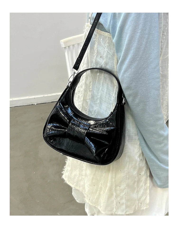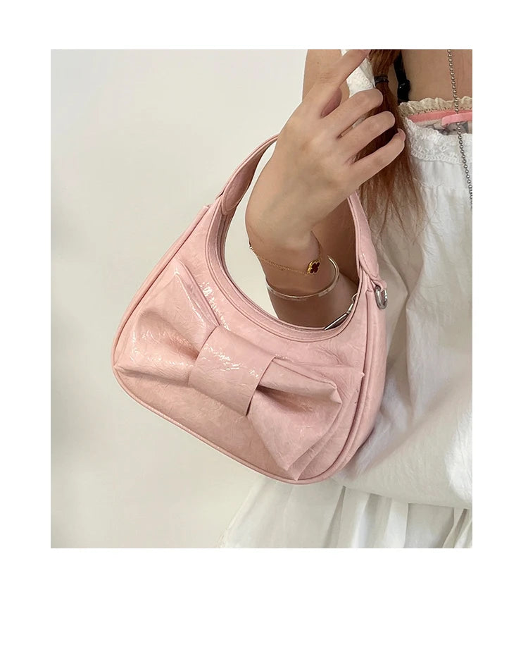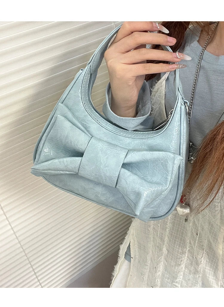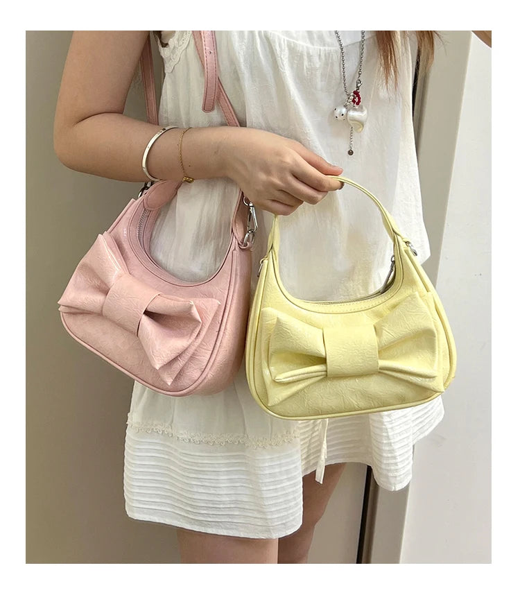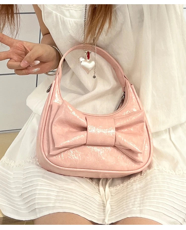 Qfdian Japanese Sweet Kawaii Bow Purses and Handbags Women Casual Top-Handle Bags Y2k Elegant Shoulder Crossbody Bag Fashion Clutches