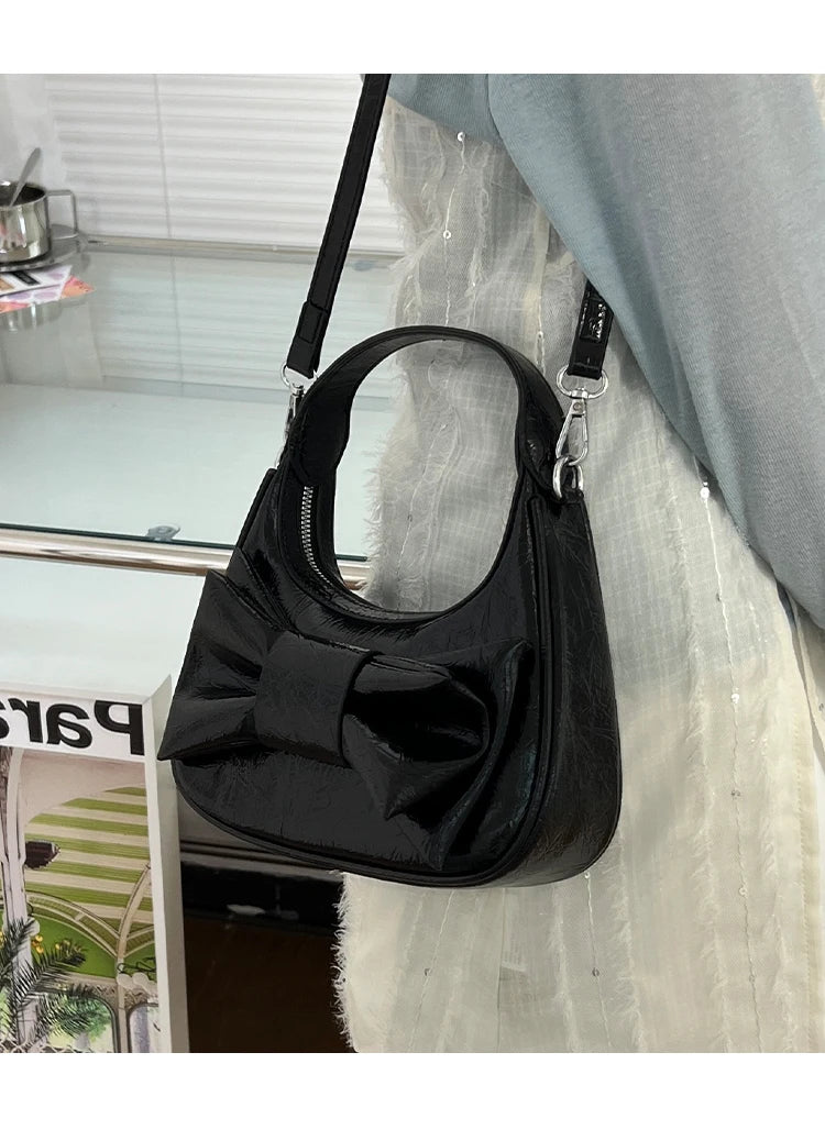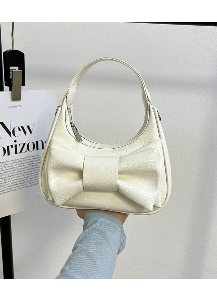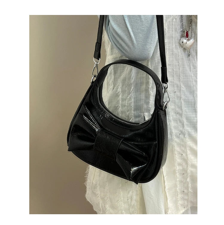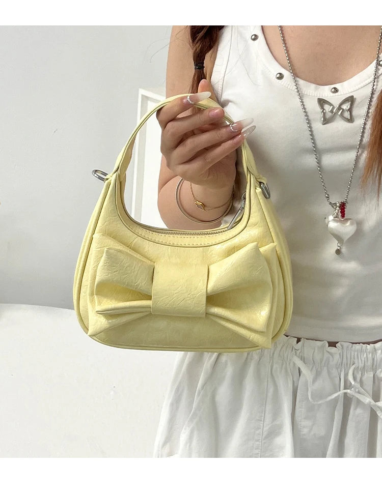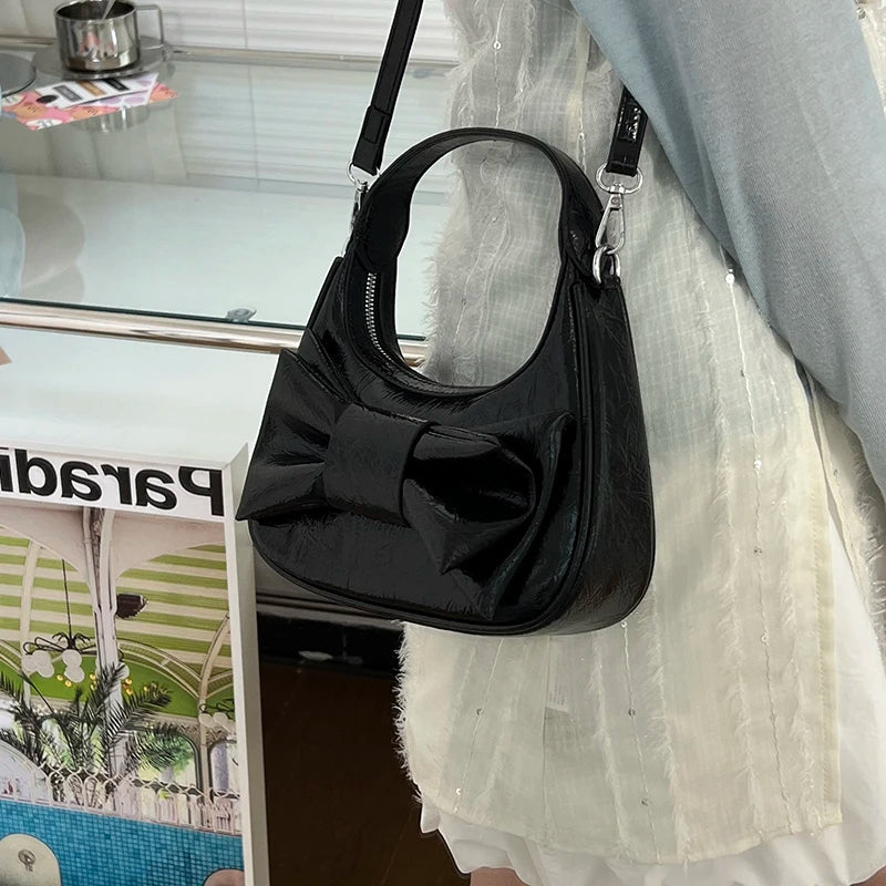 Qfdian Japanese Sweet Kawaii Bow Purses and Handbags Women Casual Top-Handle Bags Y2k Elegant Shoulder Crossbody Bag Fashion Clutches