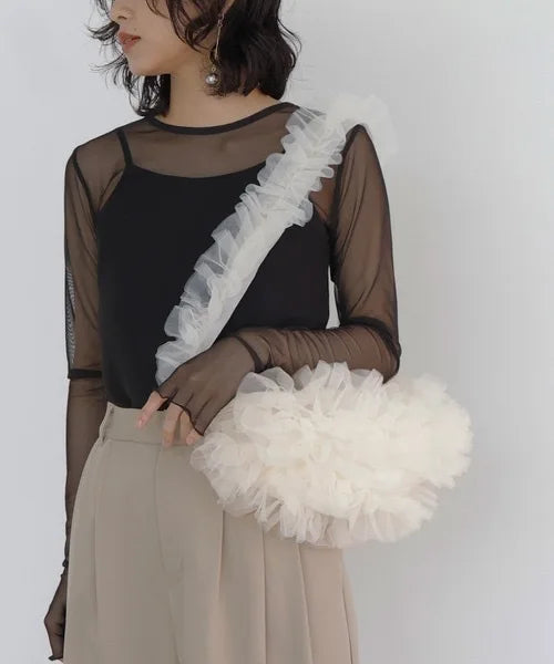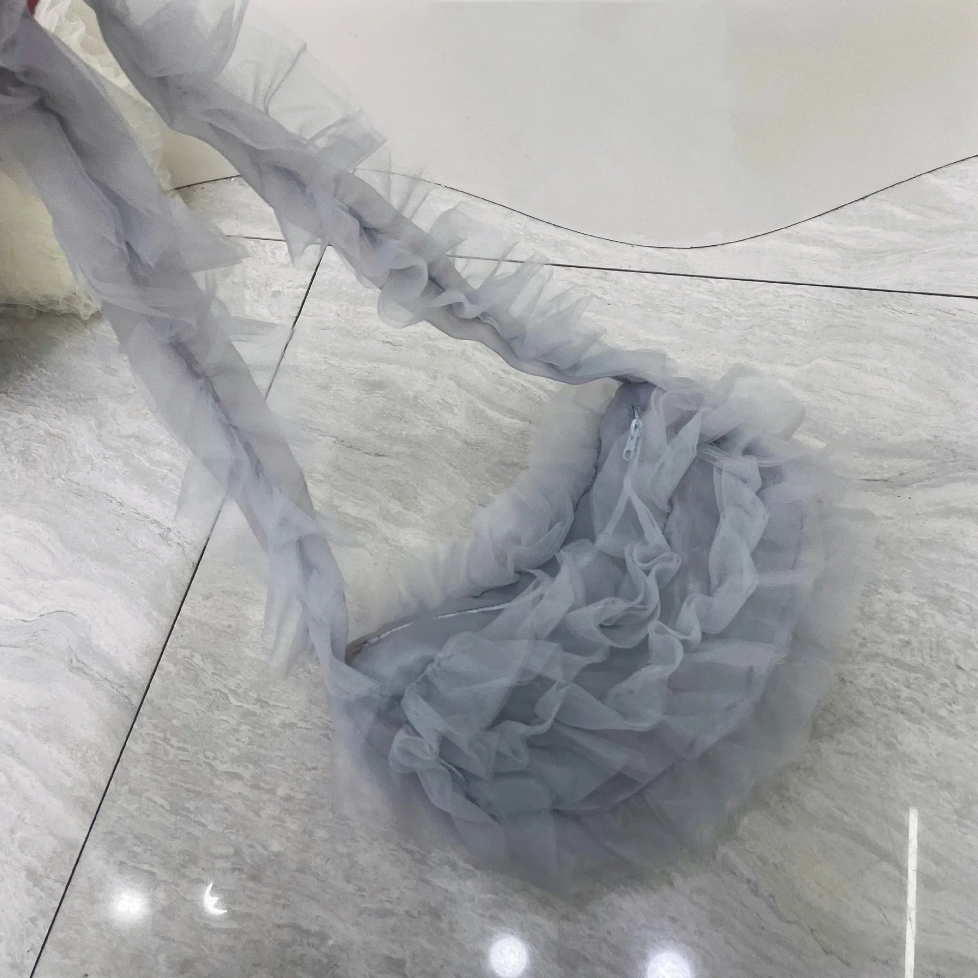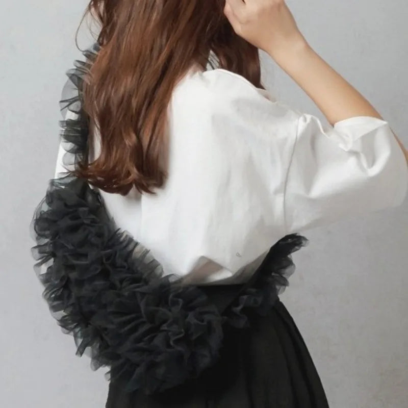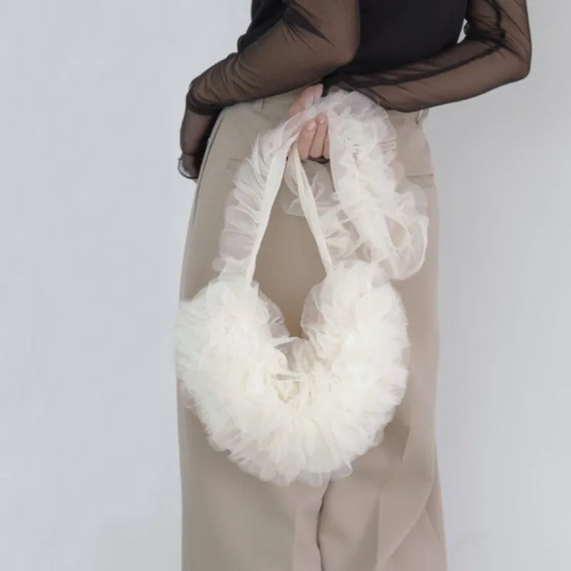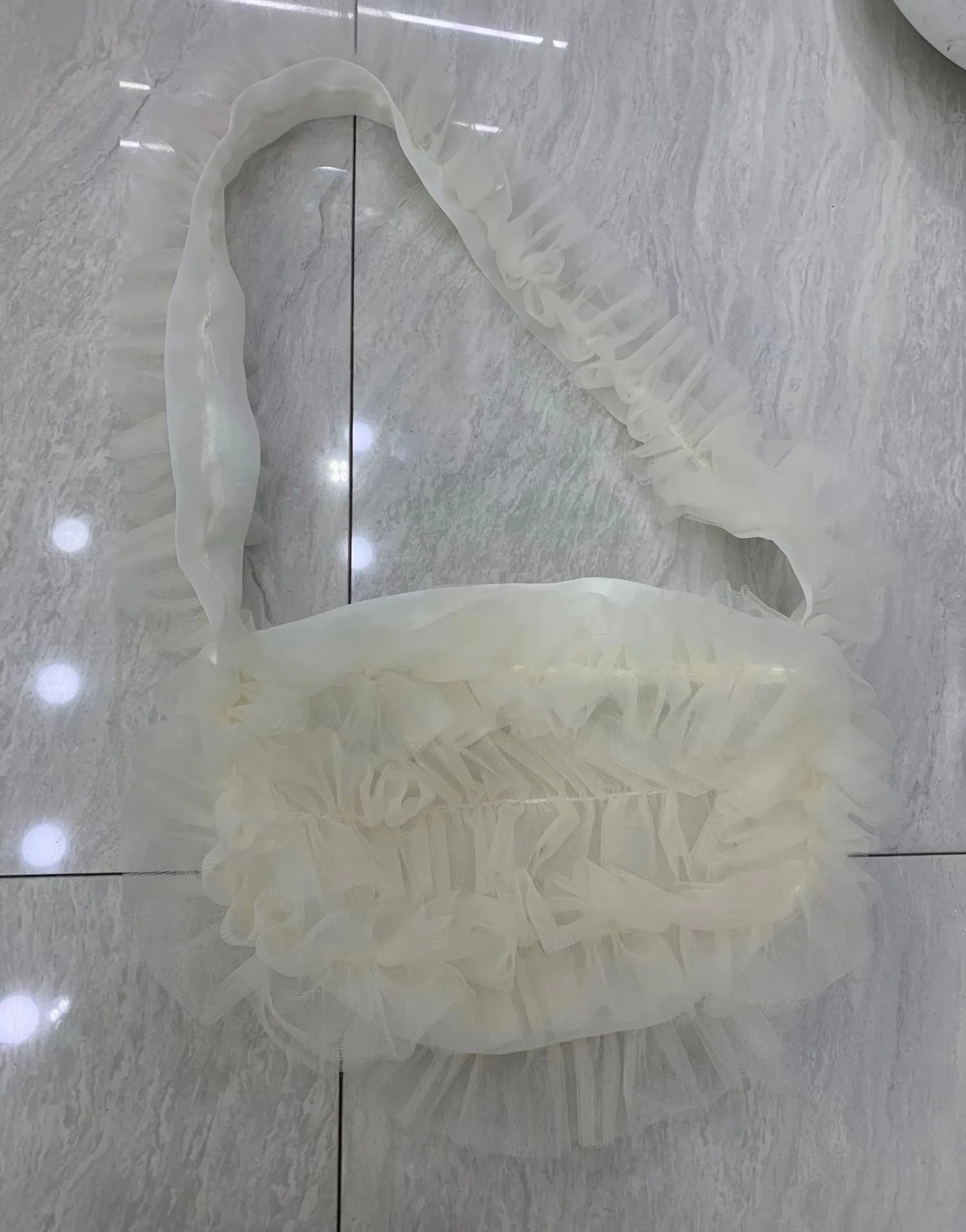 Qfdian Japanese Sweet Ruffled Gauze Handbags All Match Fairy Solid Luxury Design Underarm Bag Y2k Aesthetic Women Chic Shoulder Bags