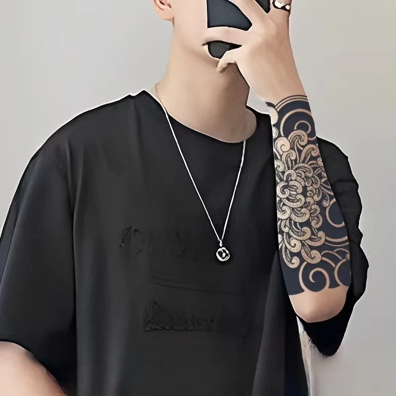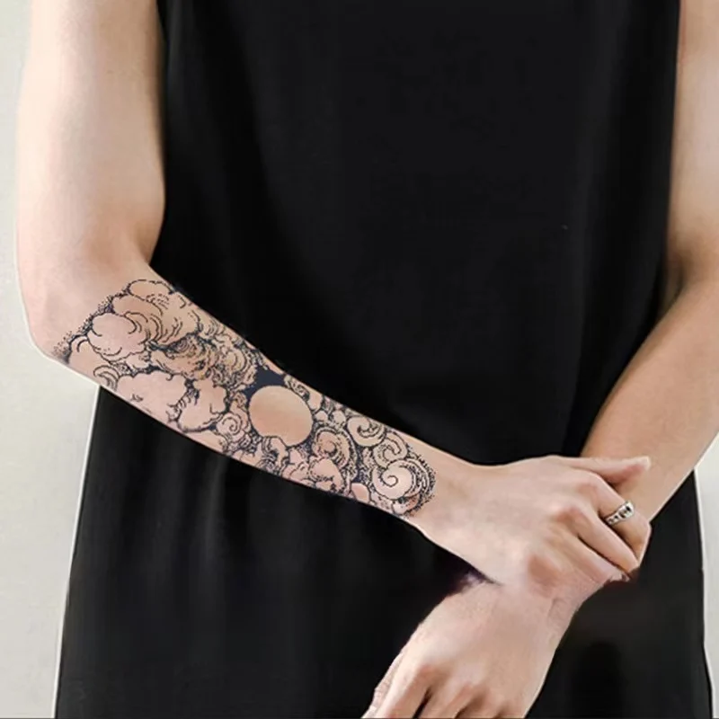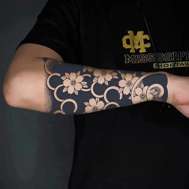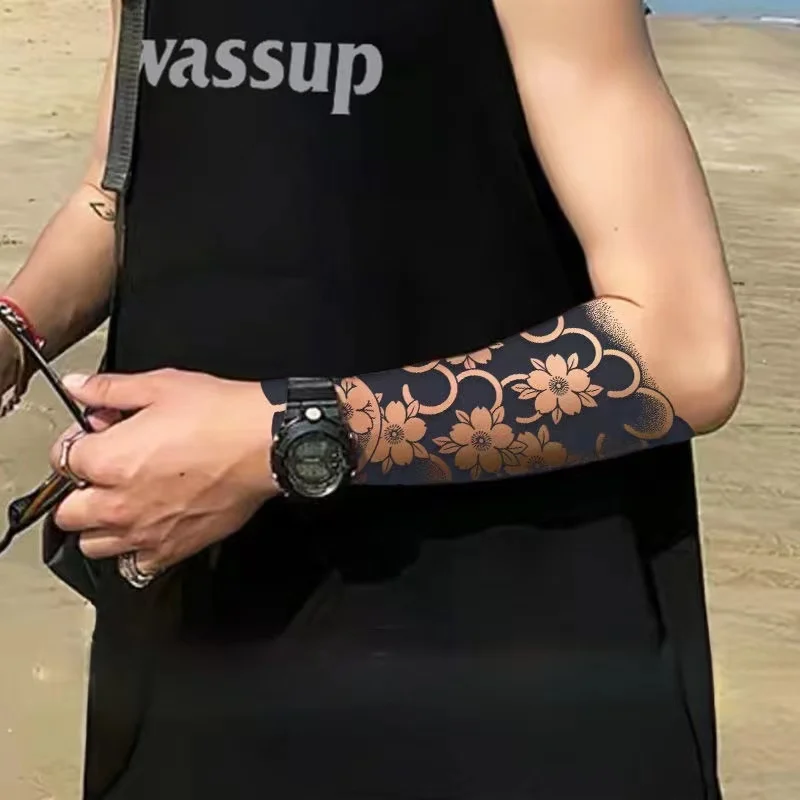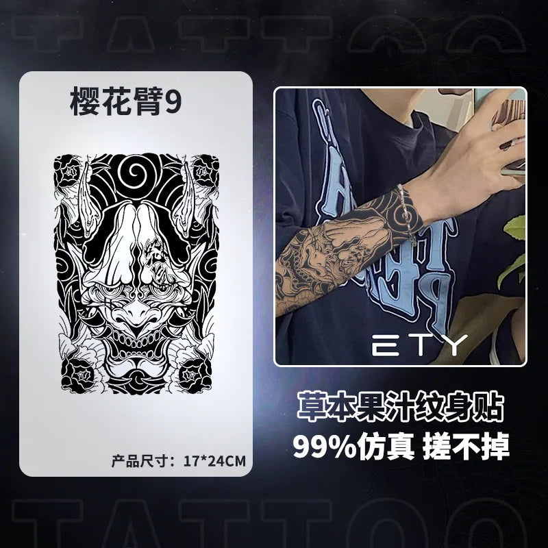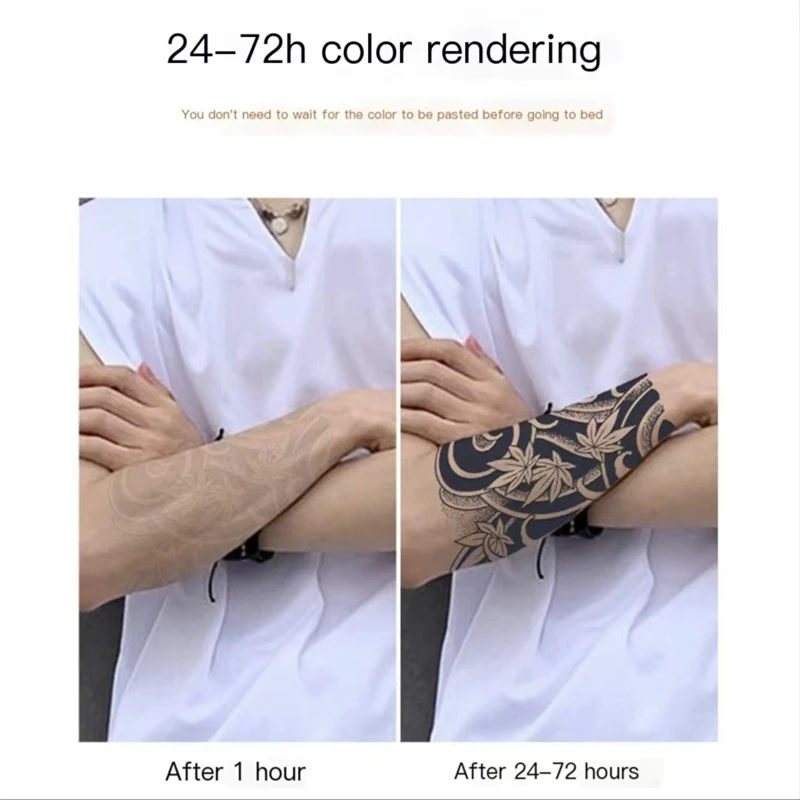 Qfdian Japanese Traditional Half Arm Herbal Juice Temporary Tattoo Stickers Sakura Leaf Lasting Art Fake Tattoo Men Women Faux Tatouage