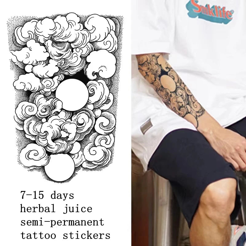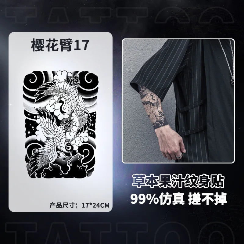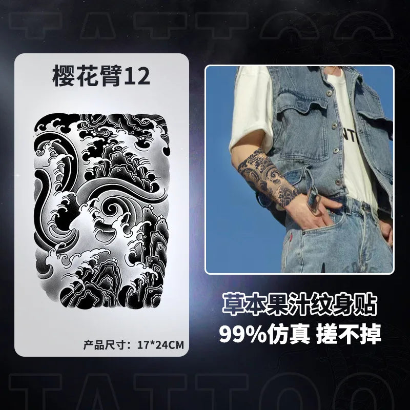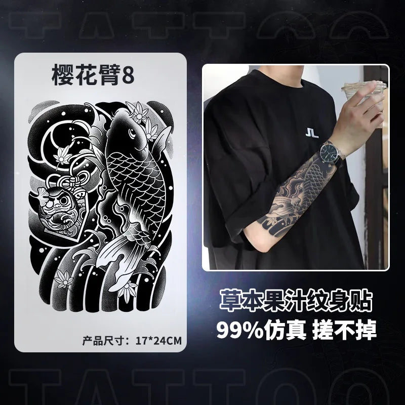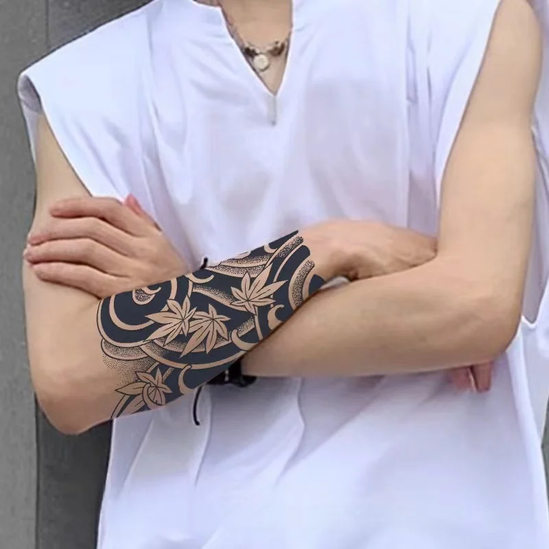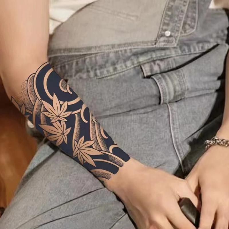 Japanese Traditional Half Arm Herbal Juice Temporary Tattoo Stickers Sakura Leaf Lasting Art Fake Tattoo Men Women Faux Tatouage