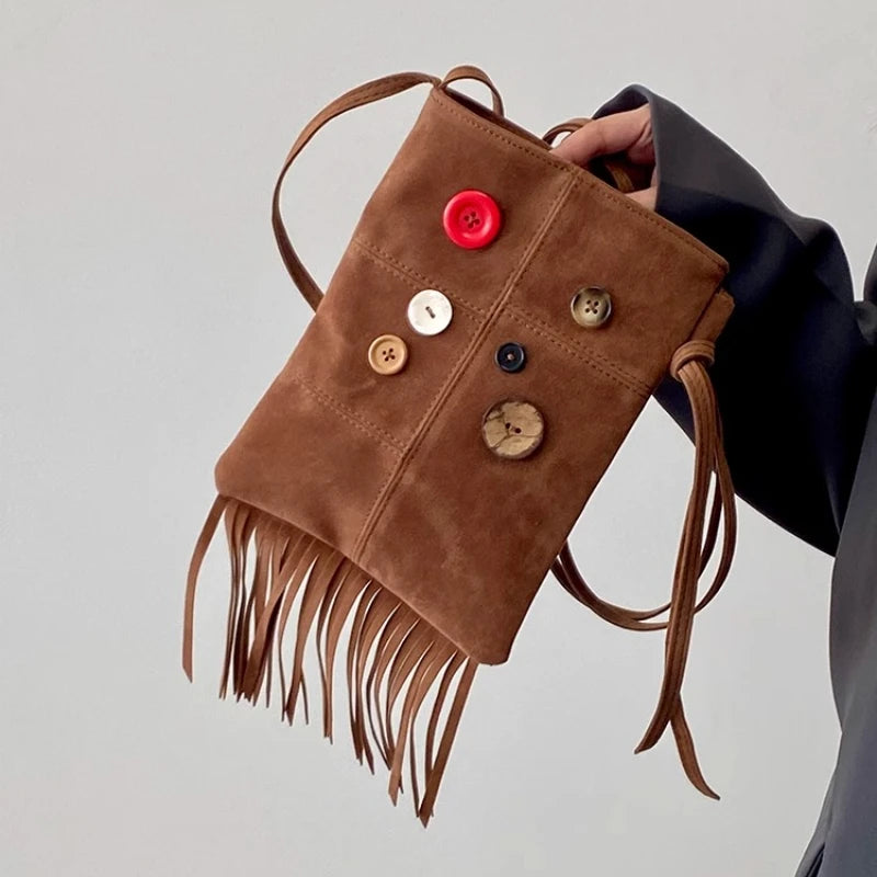 Qfdian Japanese Vintage Tassel Shoulder Bag Y2k Aesthetic Fashion Women Button Mini Cellphone Bags Casual Kawaii Ins Handbags Crossbody