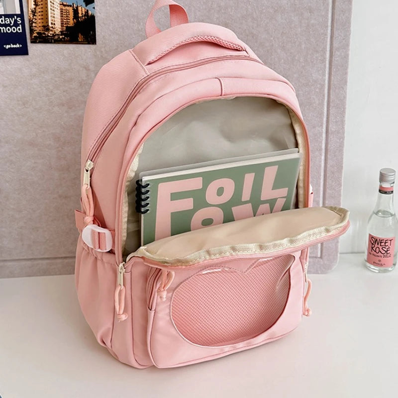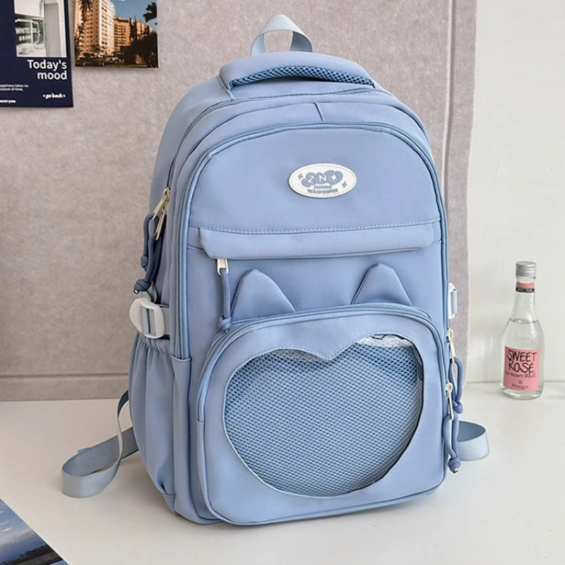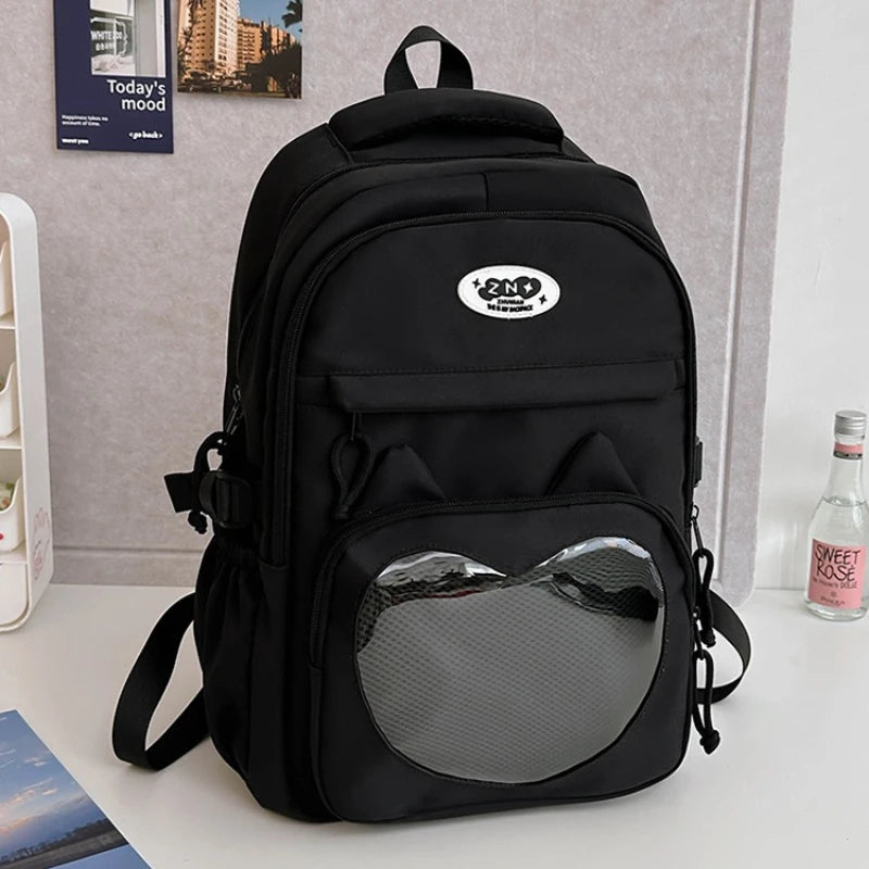 Qfdian Korean Chic Kawaii Cat Schoolbags High-capacity Y2k Aesthetic Students Backpacks Transparent Preppy Women Casual Travel Ita Bags