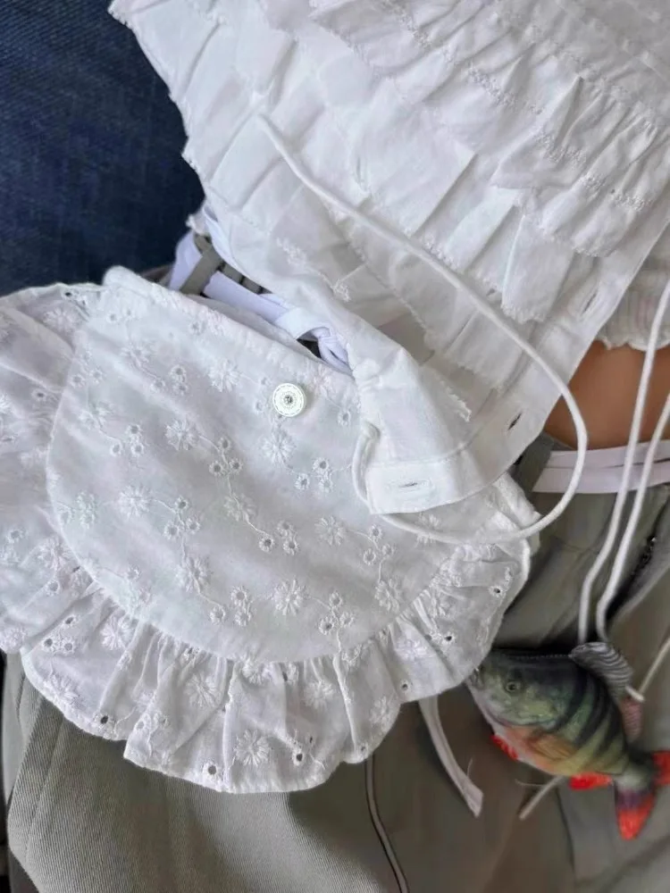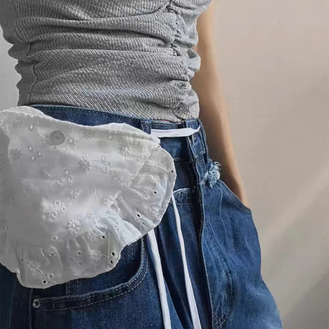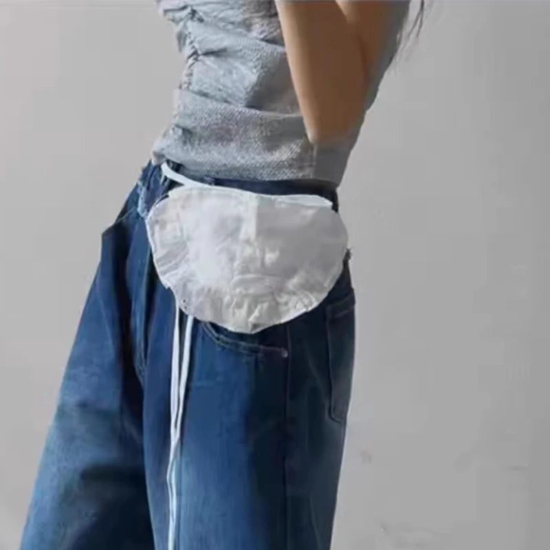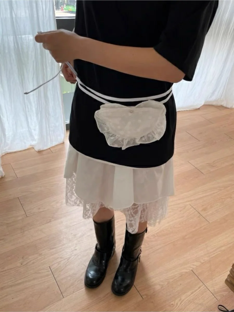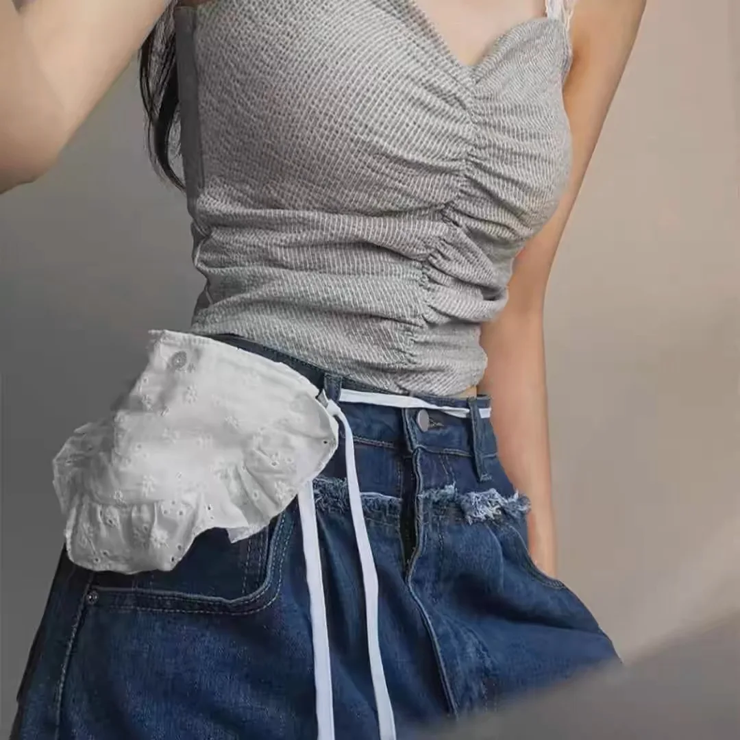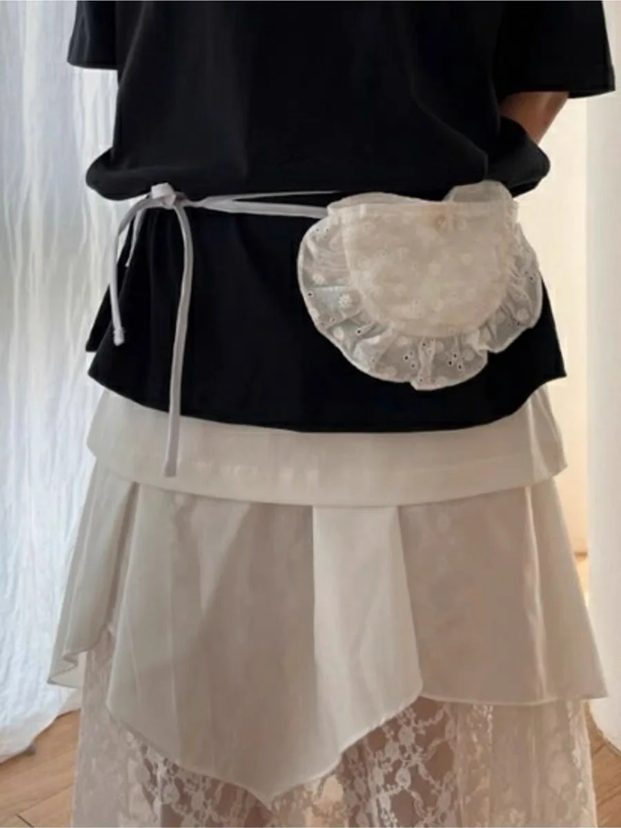 Qfdian Korean Fashion All Match Bandage Lace Mini Handbags Layered Fairy Sweet Kawaii Bags Women Trendy Y2k Aesthetic Chic Waist Packs