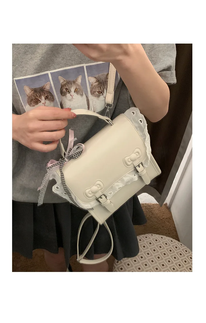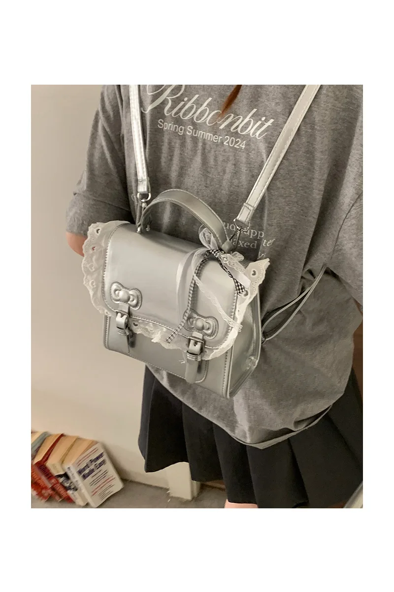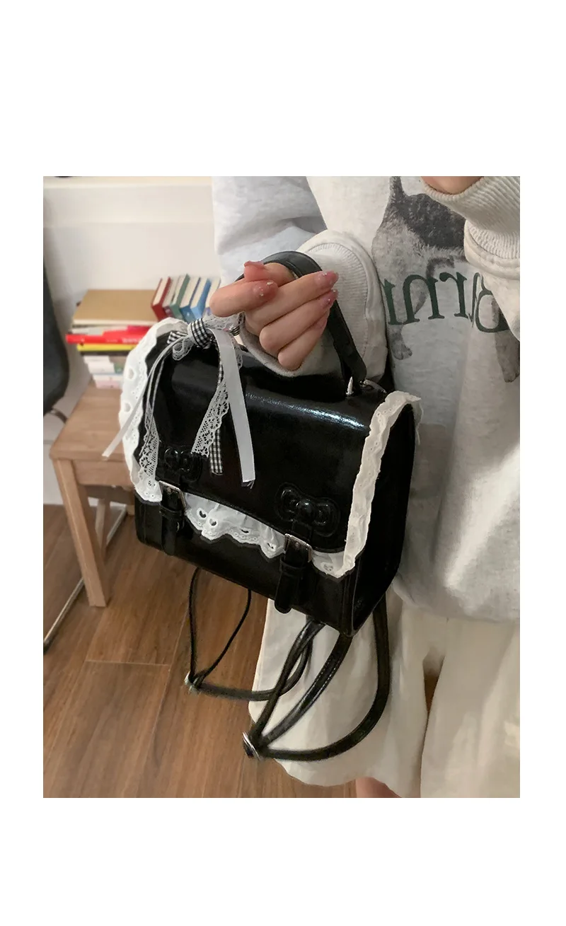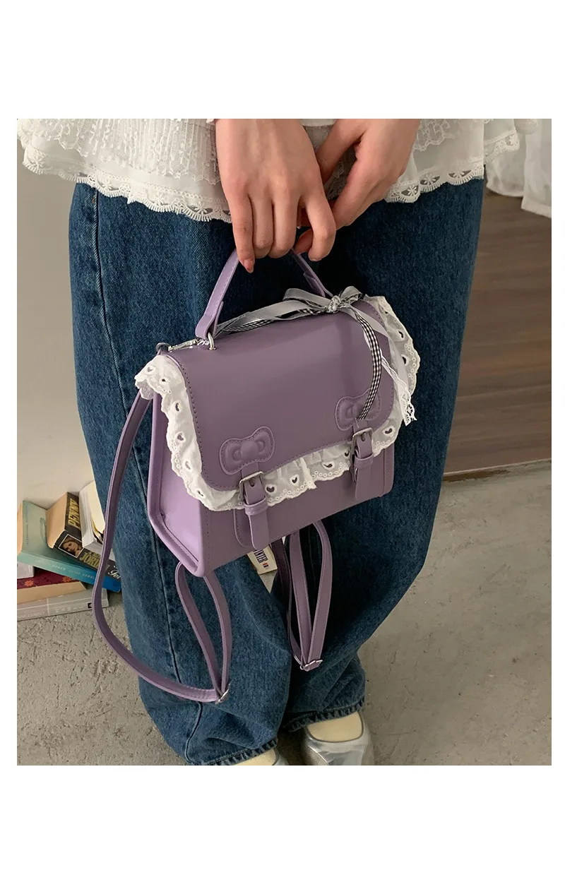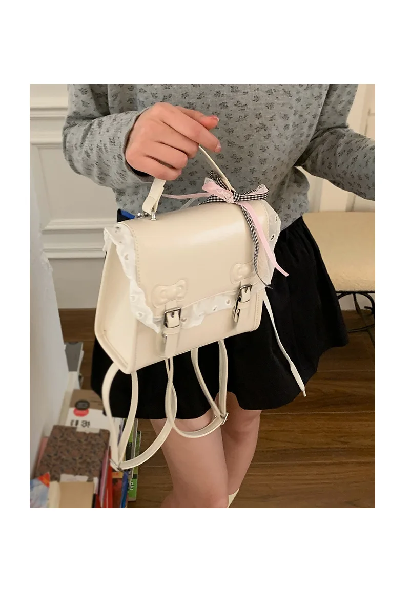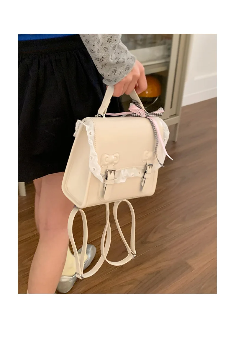 Qfdian Korean Kawaii Lace Fashion Handbags Women All Match Sweet Mini Backpacks Y2k Aesthetic Casual Simple Schoolbags Trendy Preppy