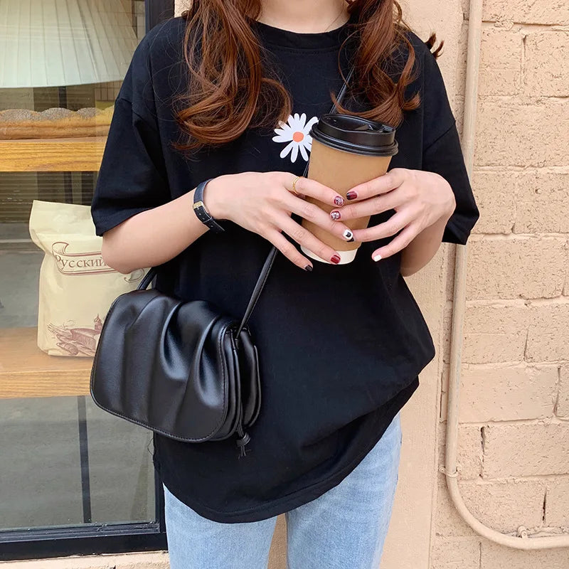 Qfdian Korean Simple Fairy Pleated Cloud Bag Women Y2k Aesthetic Chic Elegant Shoulder Bags 2025 Office Lady Fashion Handbags Crossbody