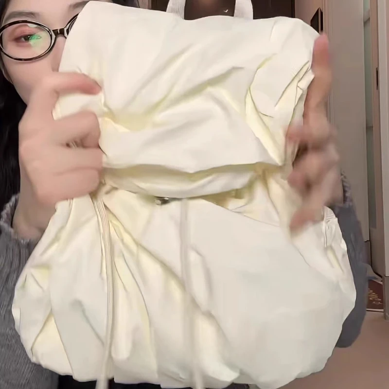 Qfdian Korean Sweet Girls Chic Backpack Fashion Preppy All Match Students Schoolbags Women Casual Pleated Nylon Backpacks Y2k Aesthetic
