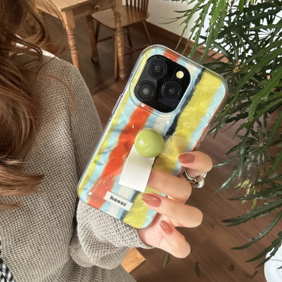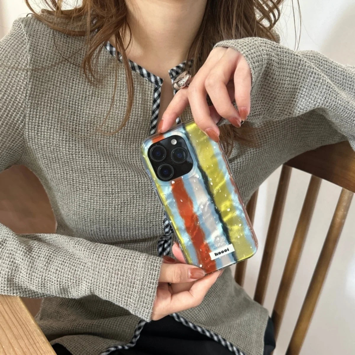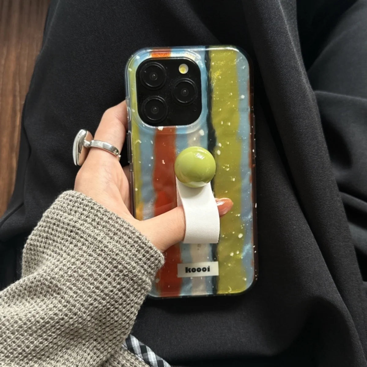 Qfdian Laser Contrasting Striped Ring Buckle Suitable For Iphone 16 15 Phone Case 14 Pro Max Hard Case
