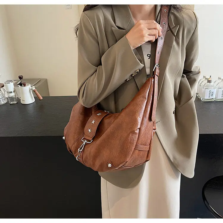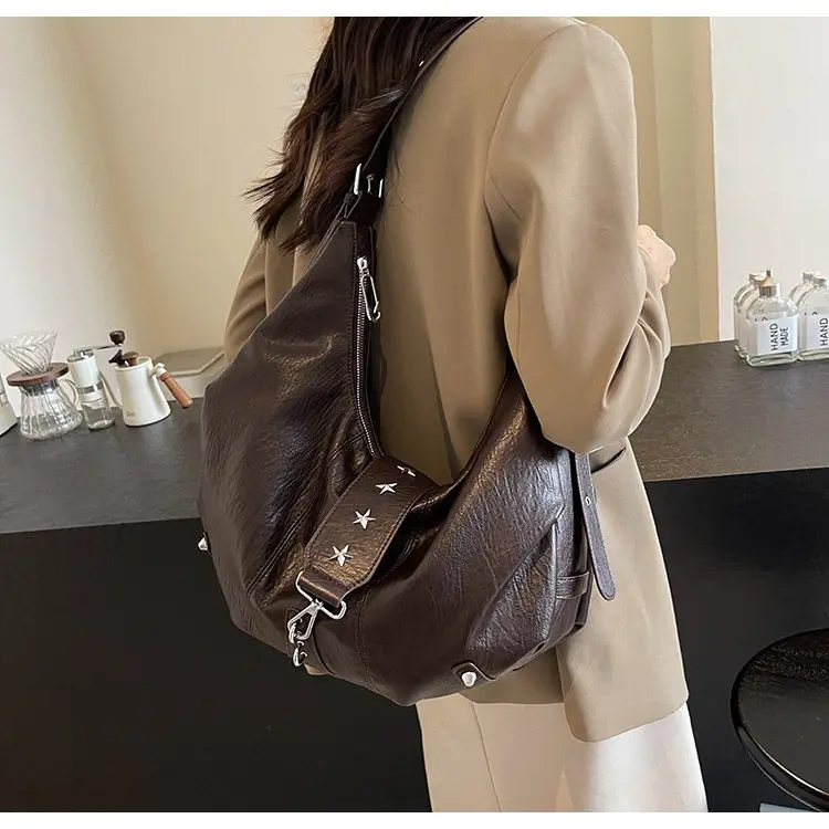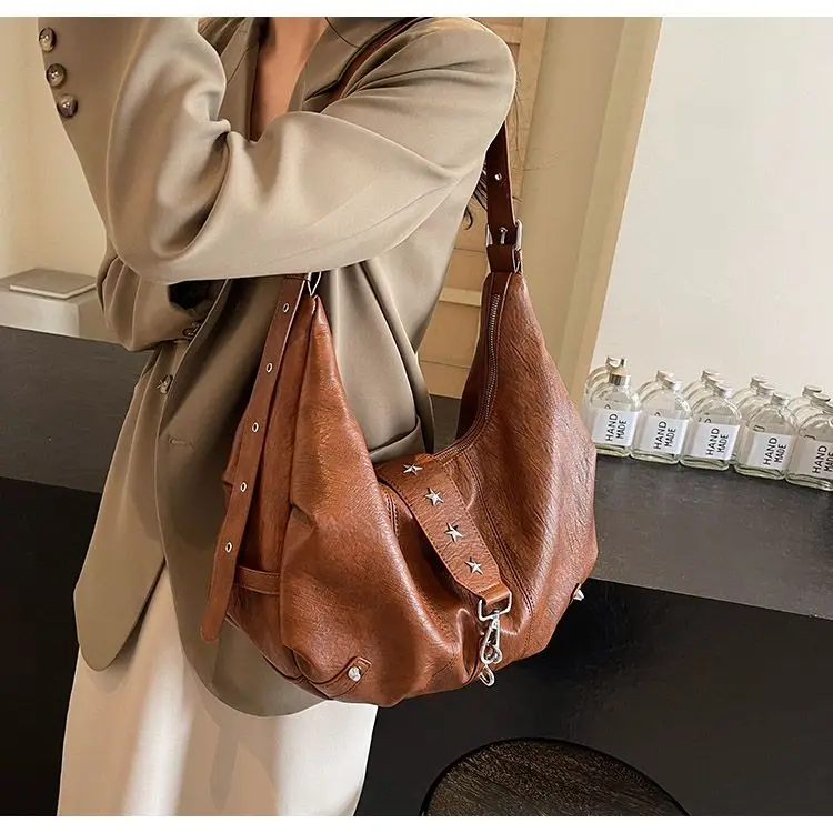 Qfdian Luxury Design Elegant Casual Women's Handbags Y2k Aesthetic Office Lady Underarm Bag Vintage Grunge All Match Ins Shoulder Bags