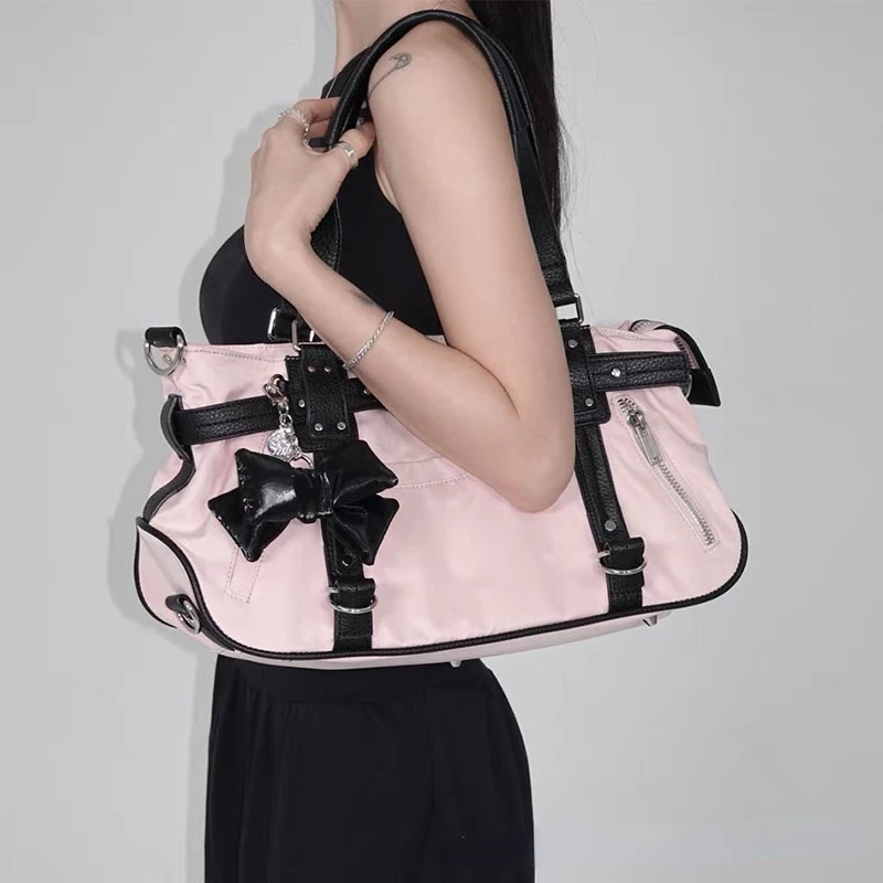 Qfdian Luxury Design Women Patchwork Underarm Bag Korean New Office Lady Fashion Chic Shoulder Handbags Y2k Ins Casual Travel Tote Bags