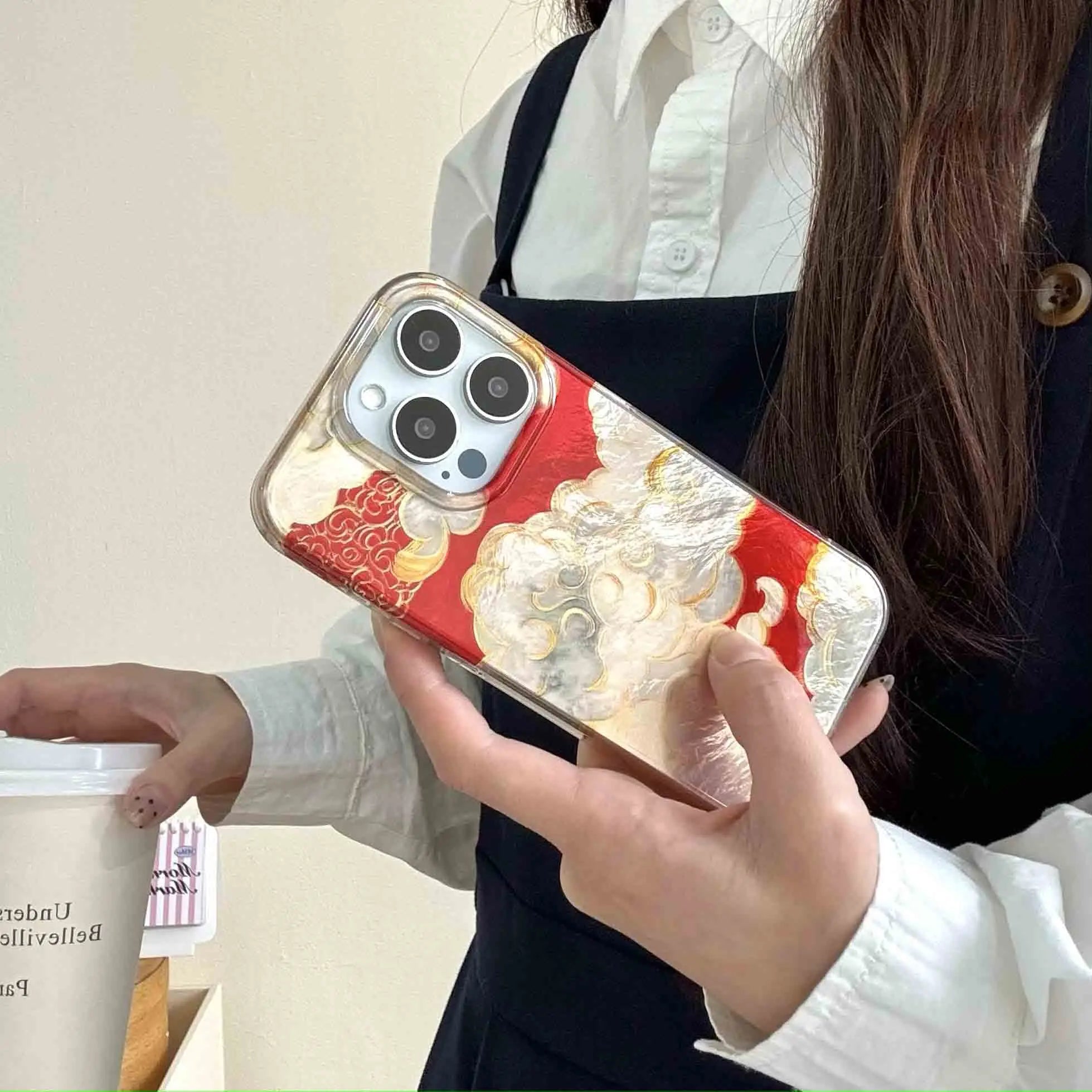Qfdian Neo-Chinese stlye gllacier fundas for iphone 15pro 16promax 14 13 15 pro max 16 13pro 14promax good luck cloud phone case
