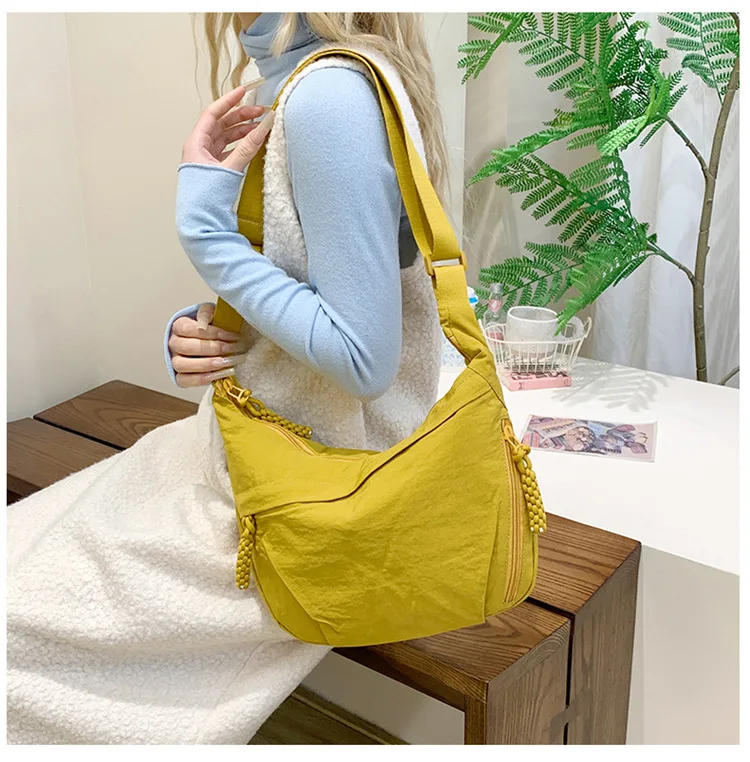 Qfdian New Women Simple All Match Shoulder Handbags Casual Solid Cargo Hobo Bag Streetwear Vintage Crossbody Bags Y2k Aesthetic