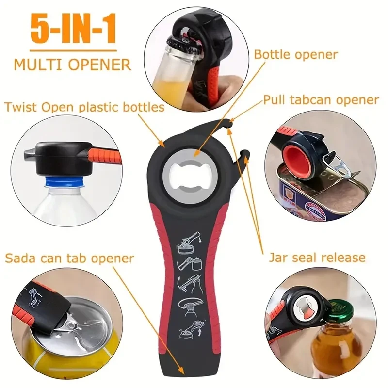 Can Opener Multi Functional Five In One Beverage Bottle Opener Cap Twister Four Position Can Opener Anti Slip Cap Twister