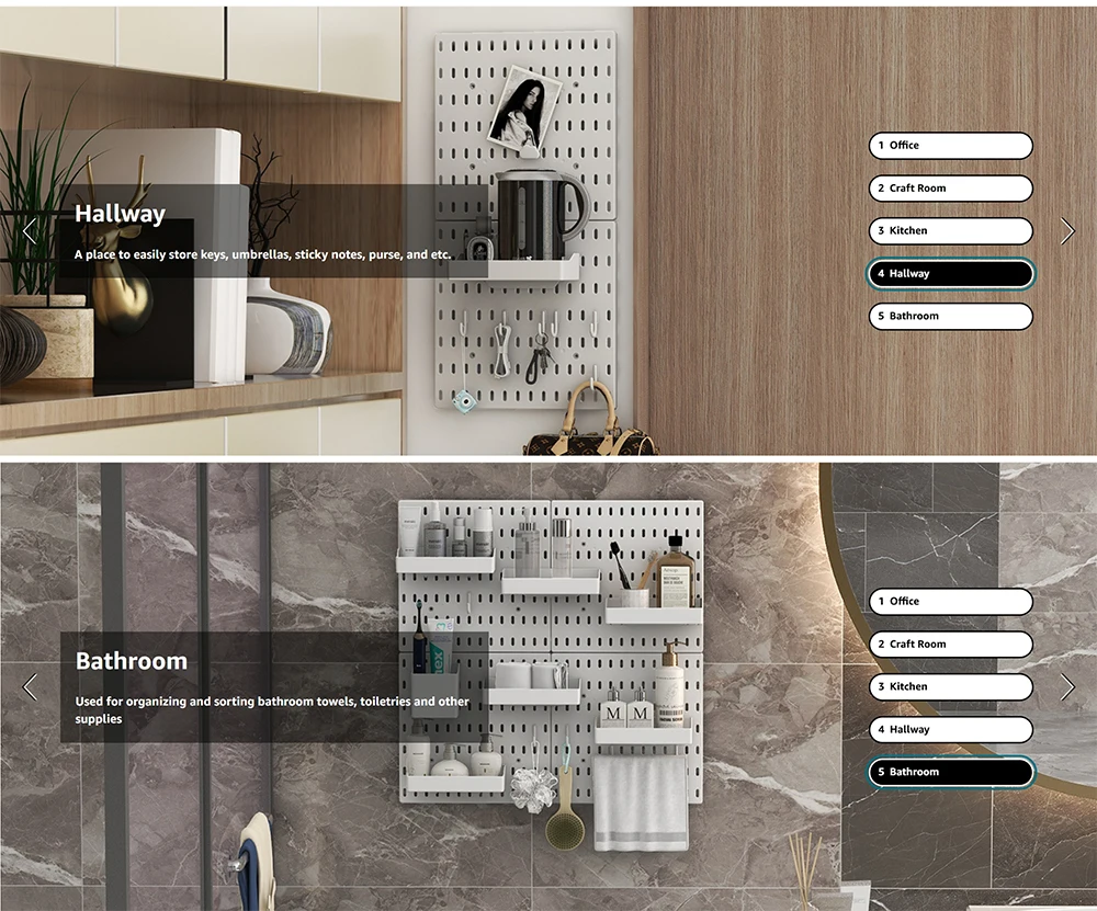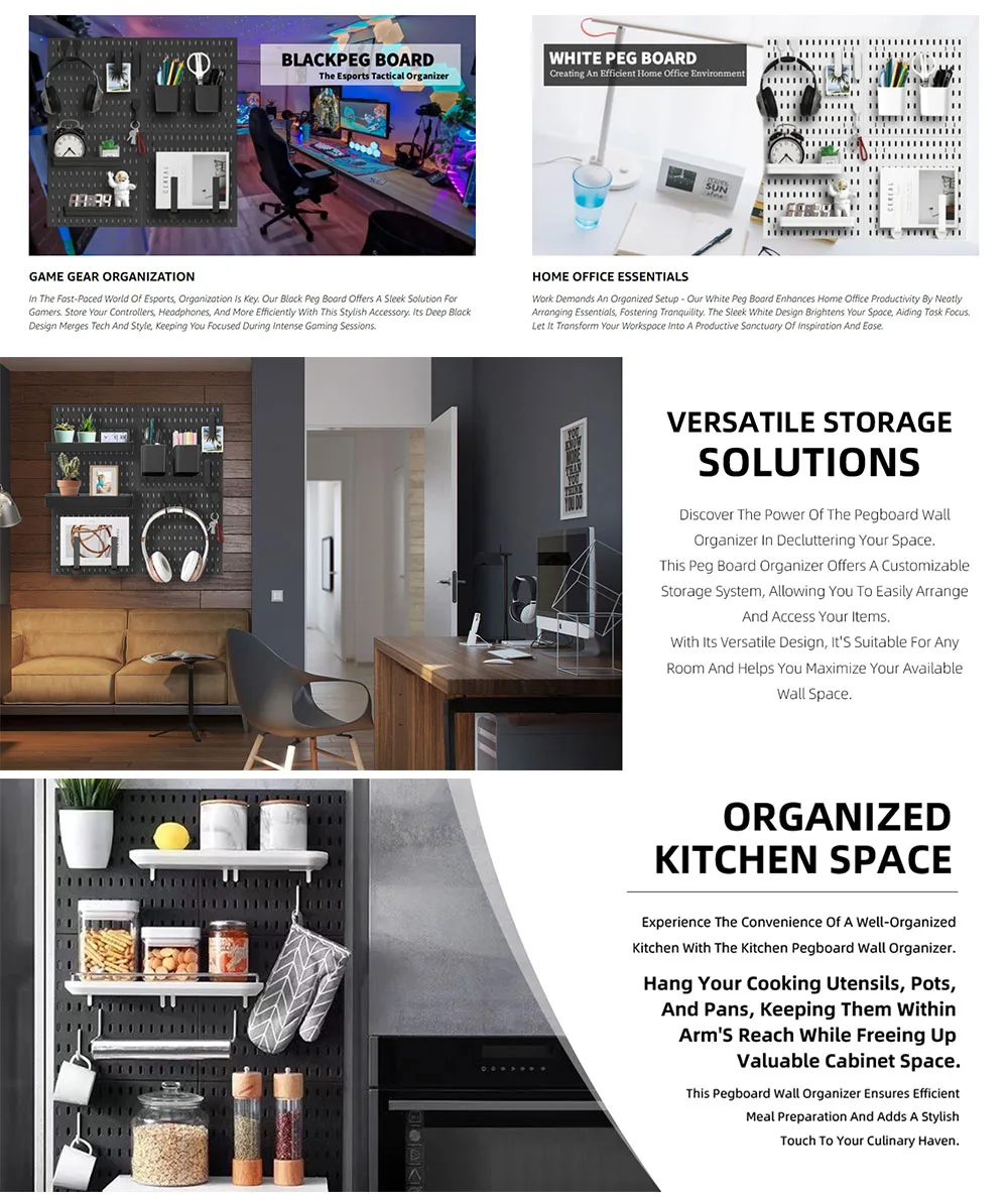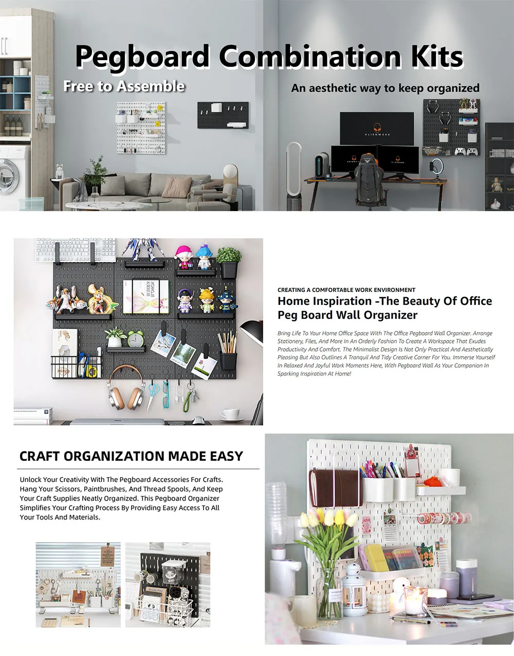 【VERSATILE COMBINATION】 With this wall pegboard organizer, the flexibility to customize your pegboard setup according to specific storage needs maximizes your wall space for efficient storage of small items and be set up in a variety of ways.