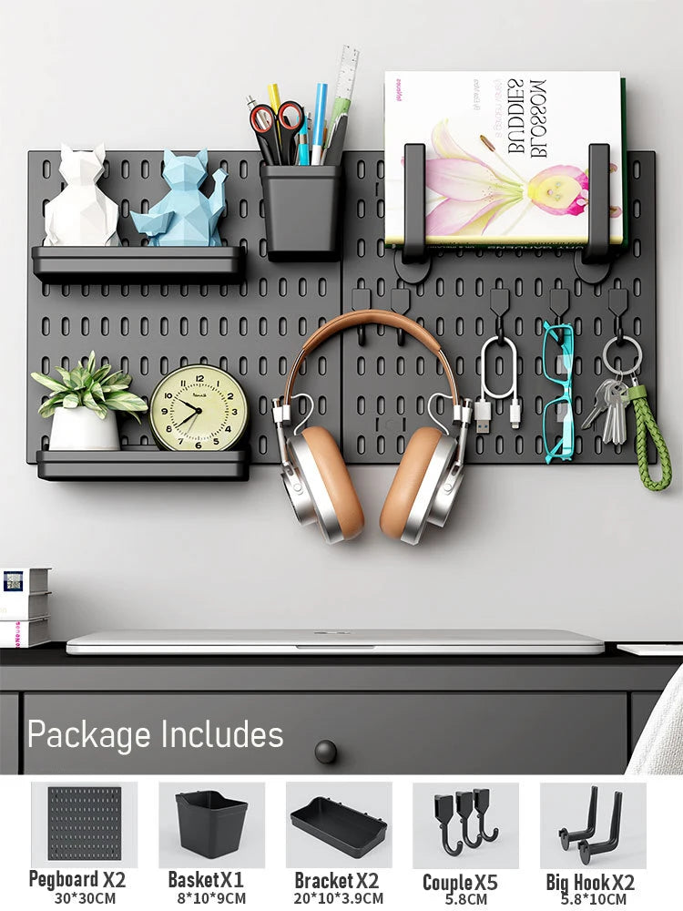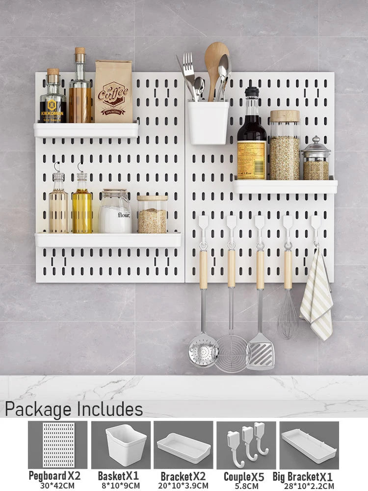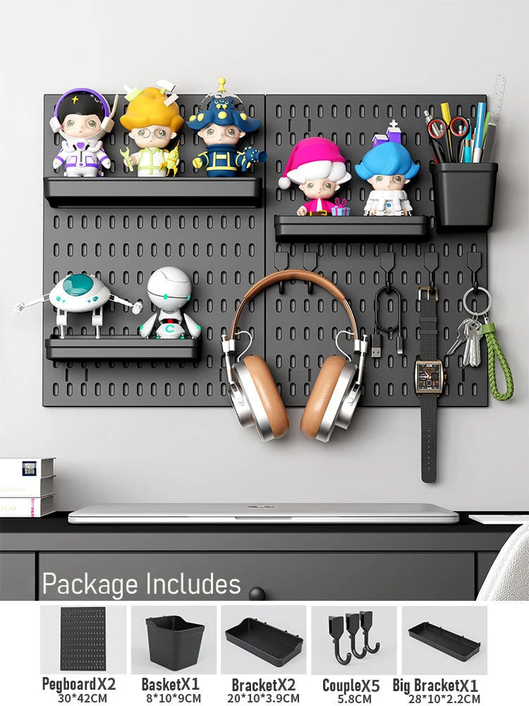 【Organize your home & office】It is is nearly impossible focus with clutter all around you. This pegboard organizer is the perfect tool to declutter your space and get back your focus. This wall peg board is suitable for many areas,Including bedrooms, bathrooms, kitchens, garages, offices, dormitories, etc. The pegboard best choice of storage tool for every family. This pegboard is perfect to go with any household theme. It allows you to store both arts and crafts accessories, or some other small items, hardware, hand tools and more.