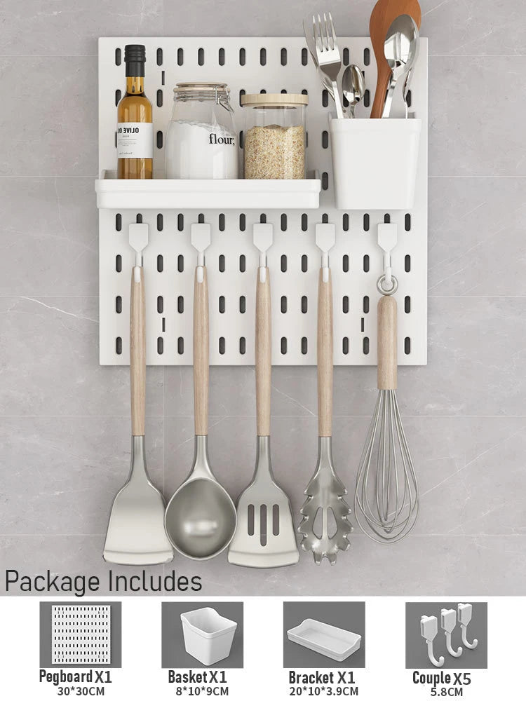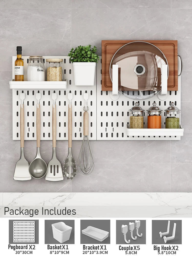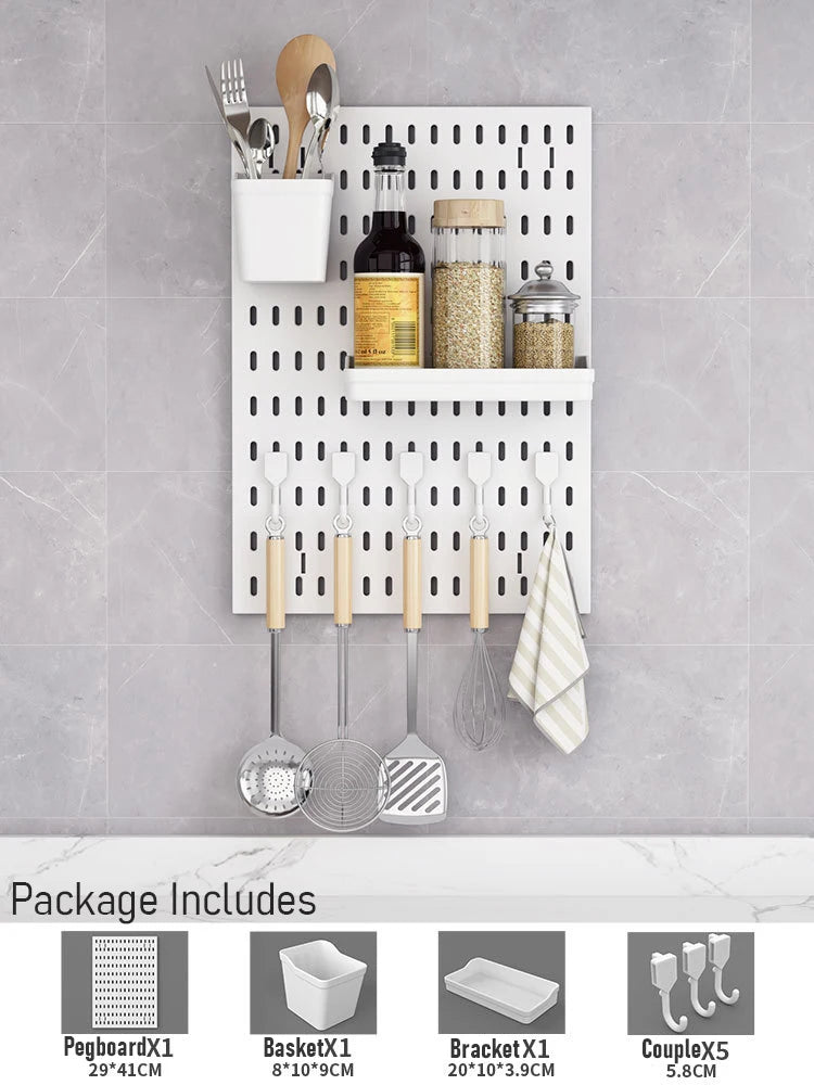 【Easy to install】Refer to installation video, the panel pegboard is installation without drilling,high load-bearing and can hold up to 20lbs, the pegboard organizer can be fasten with nails on un-smooth surfaces. With this pegboard wall organizer, you can make full use of wall space for storing small items.