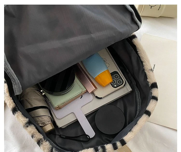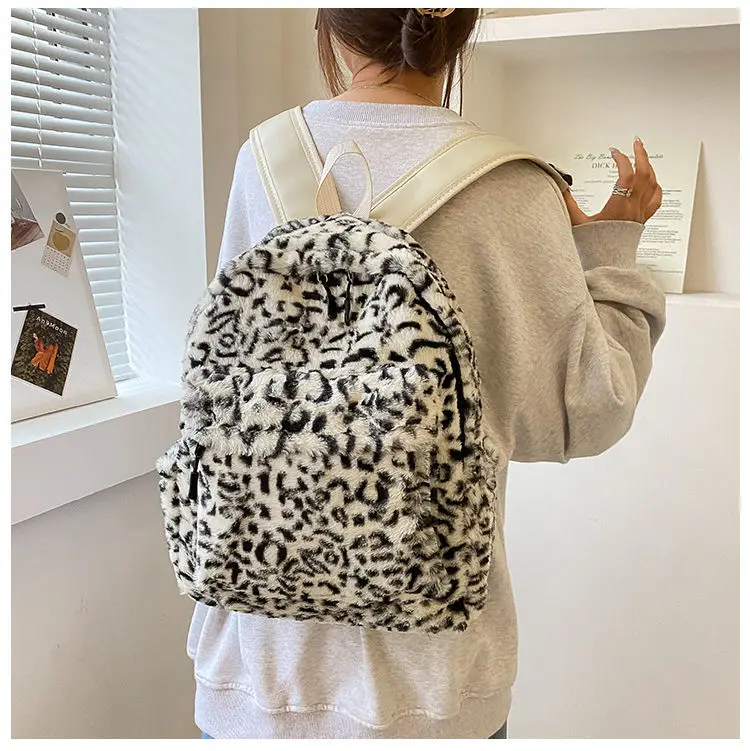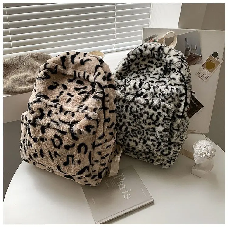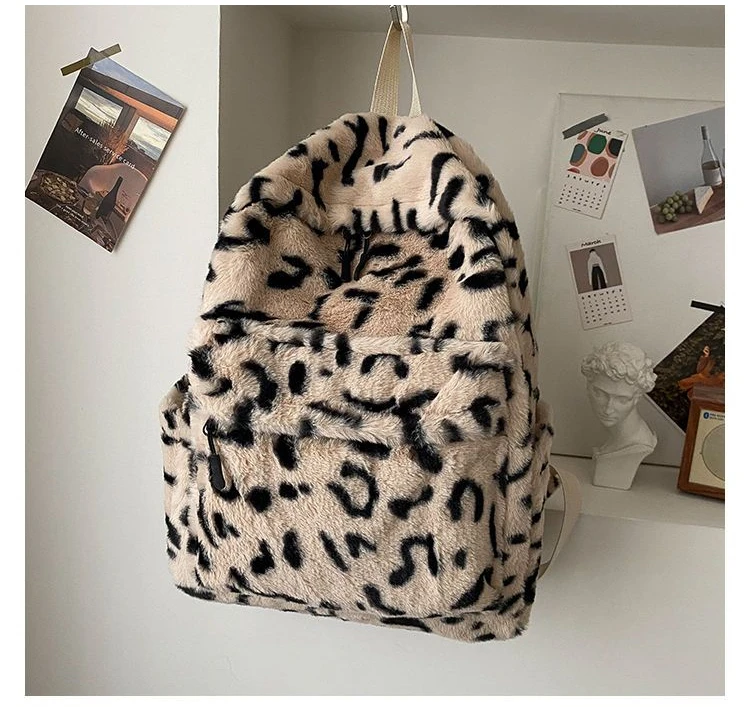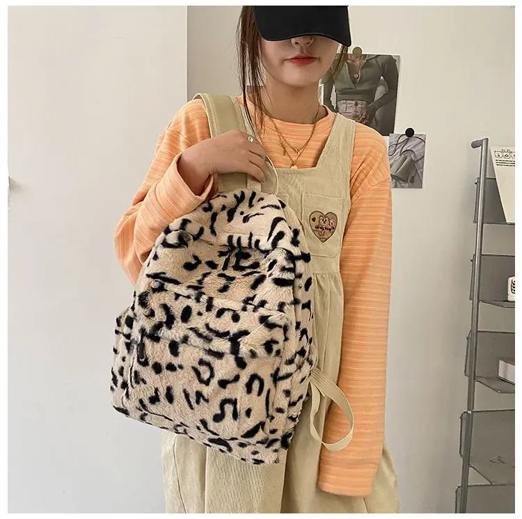Qfdian Personality Fashion Leopard Fluffy Rucksack Y2k Preppy Casual Harajuku Backpack High-capacity Vintage Grunge Students Schoolbags