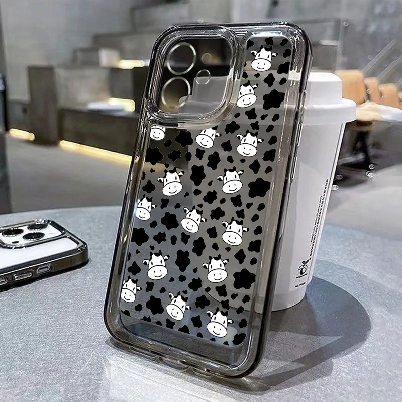 Phone Case For iPhone 15 13 14 Pro Max 11 12 Pro Mini 7 8 Plus XR X XS Max SE 2022 Black Cow Print Clear TPU Shockproof Cover