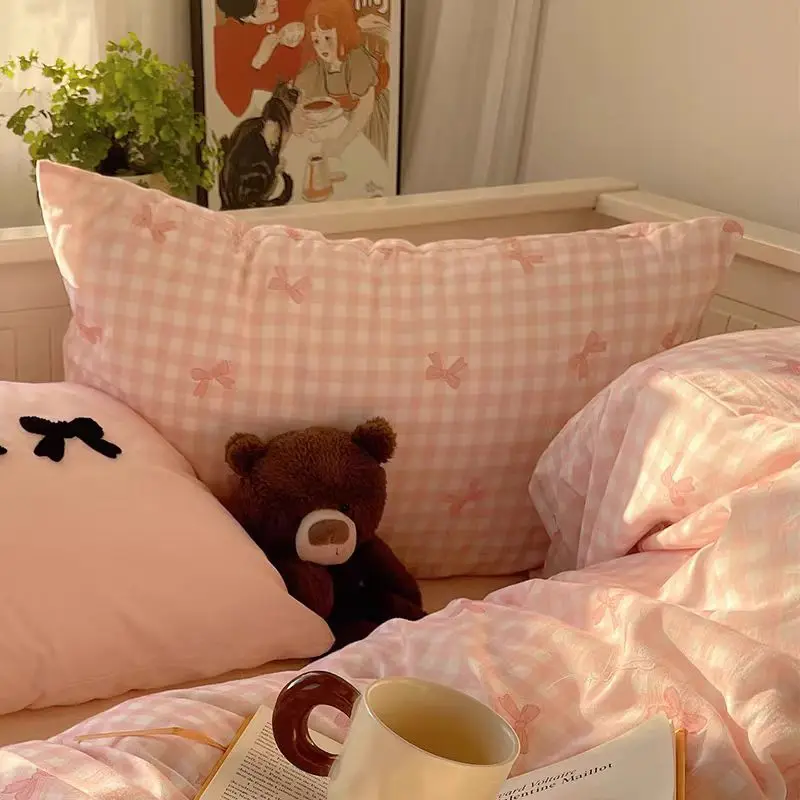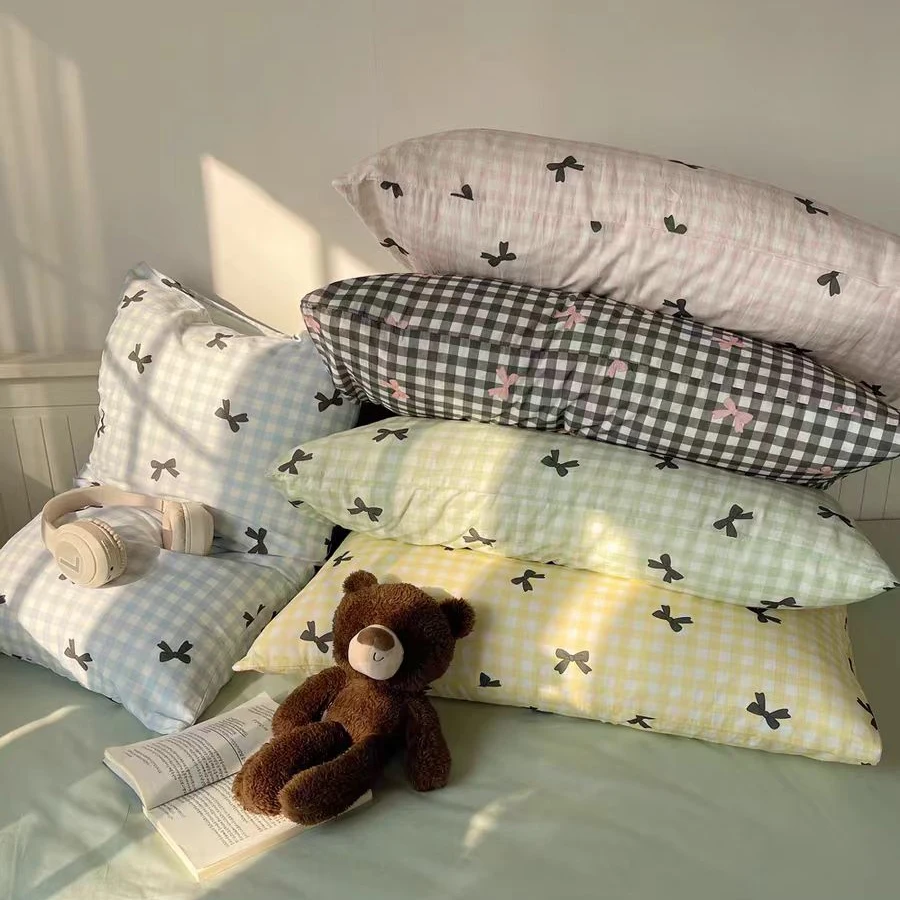 Qfdian Plaid Bow Knot Pillowcase Korean Y2k Fashions Women Blackpink Dakimakura Sleeping Pillows Cover Bedroom Decoration Girl Gifts