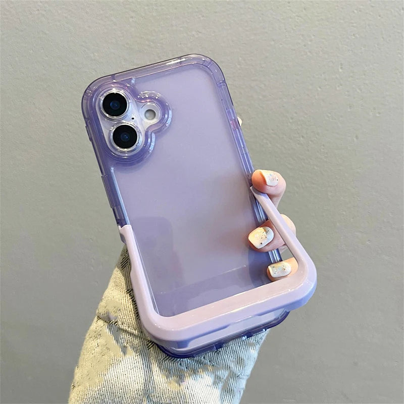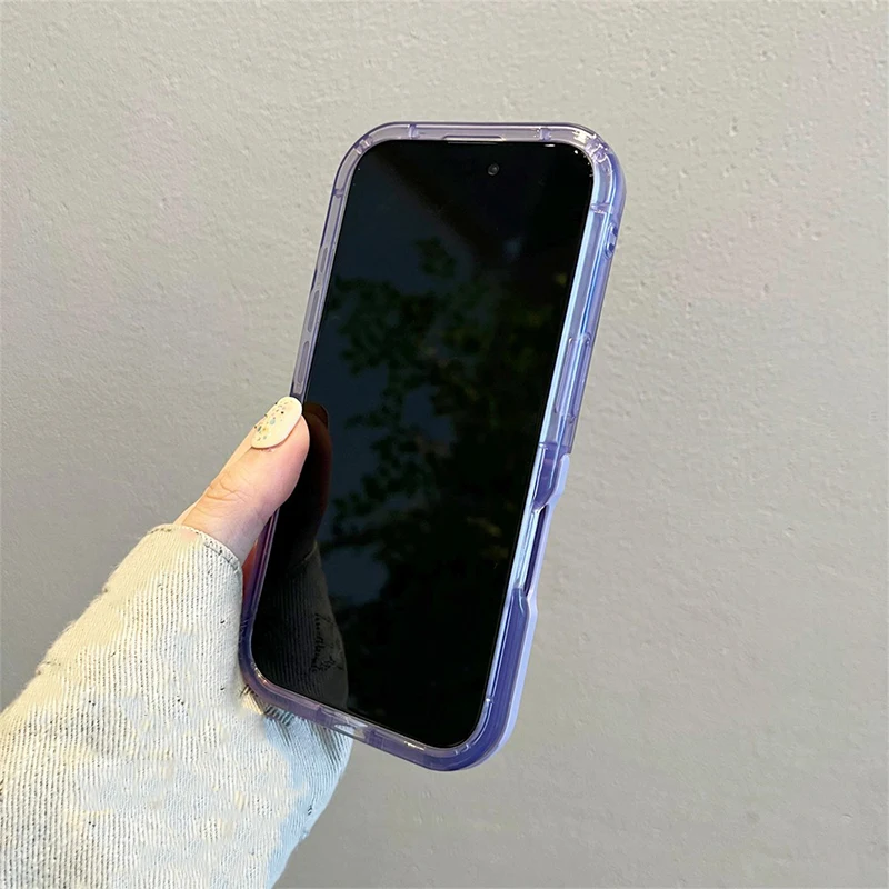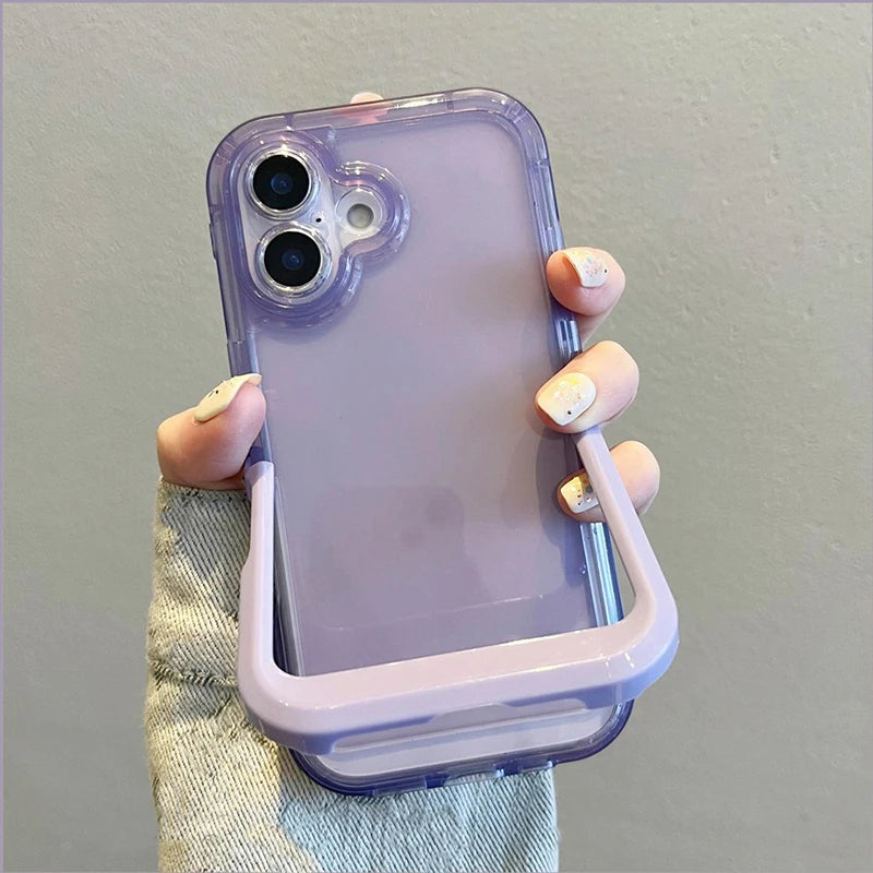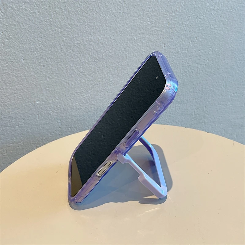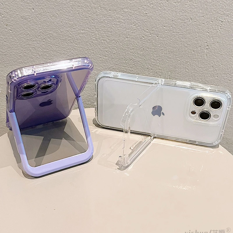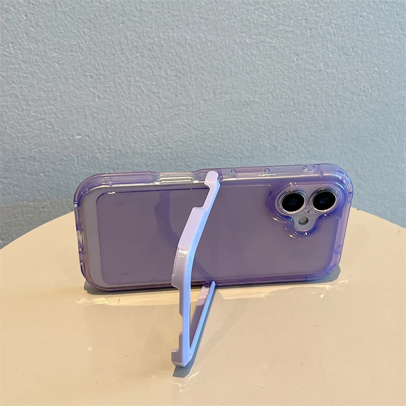 Qfdian Simple Candy Color Foldable Holder Stand Case For iPhone 16 Pro Max 15 14 13 12 11 Clear Shockproof TPU Back Cover