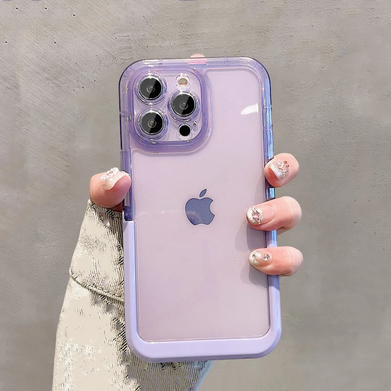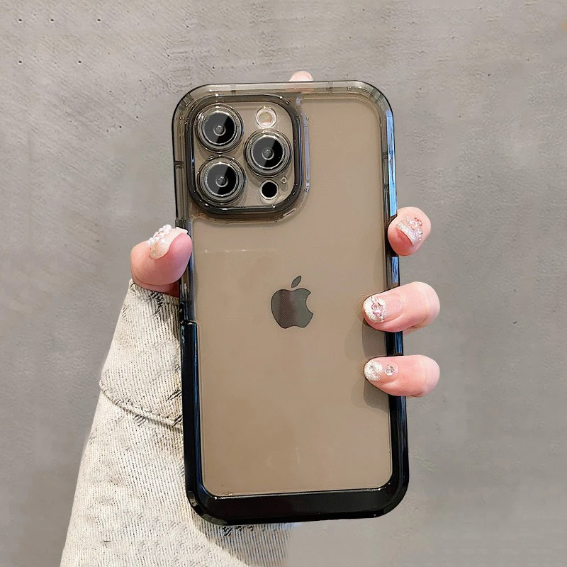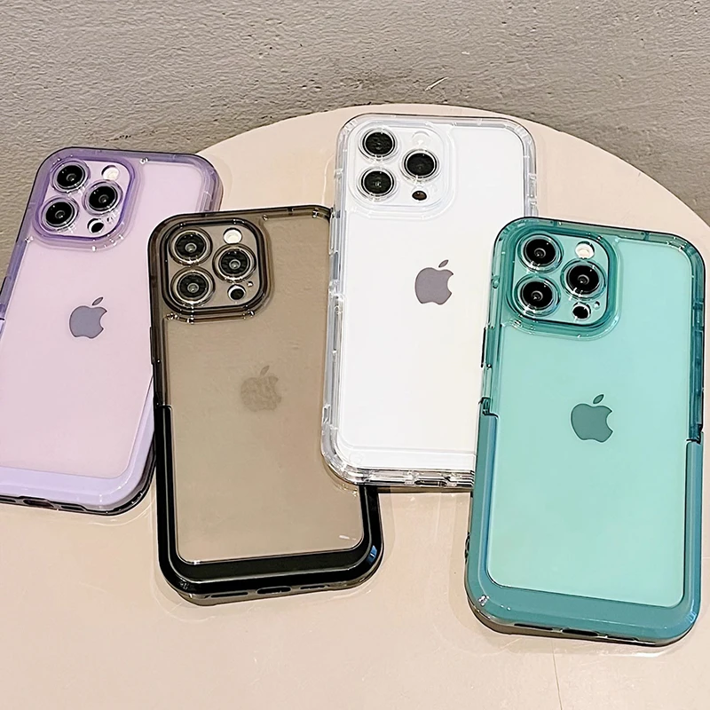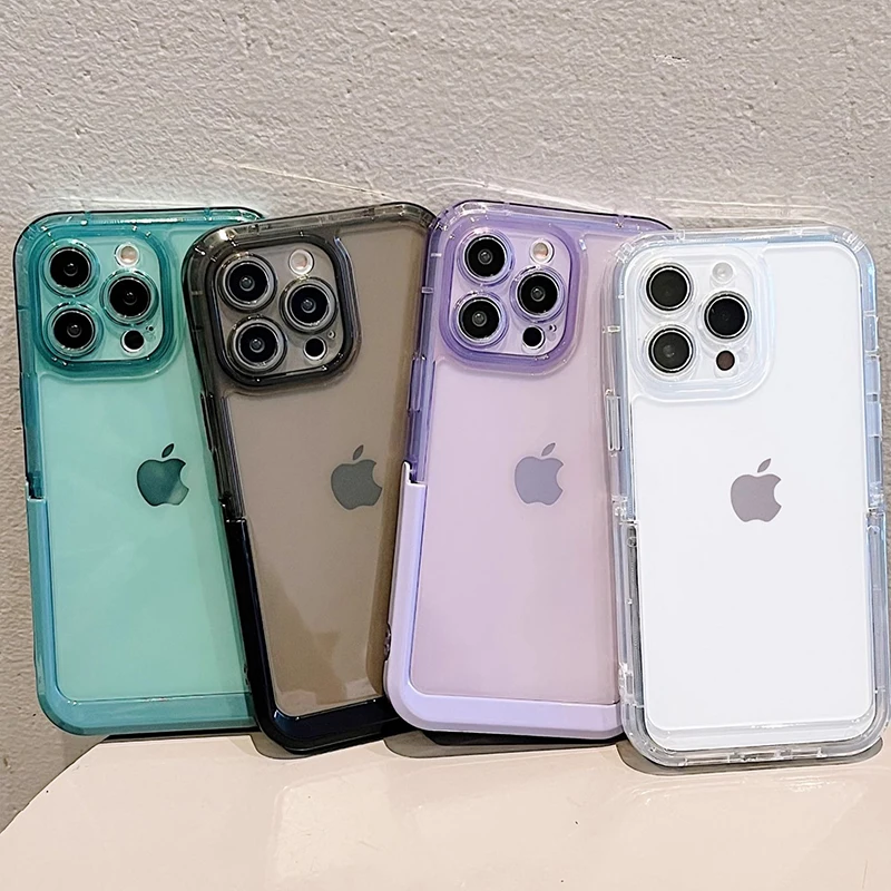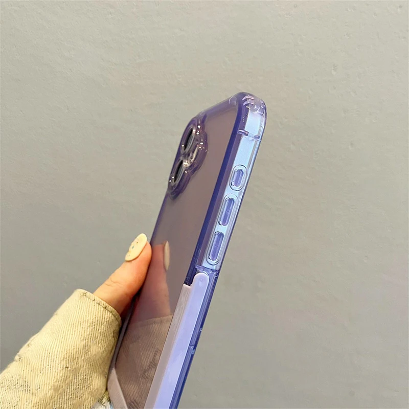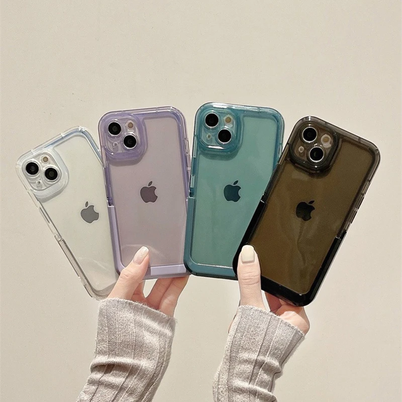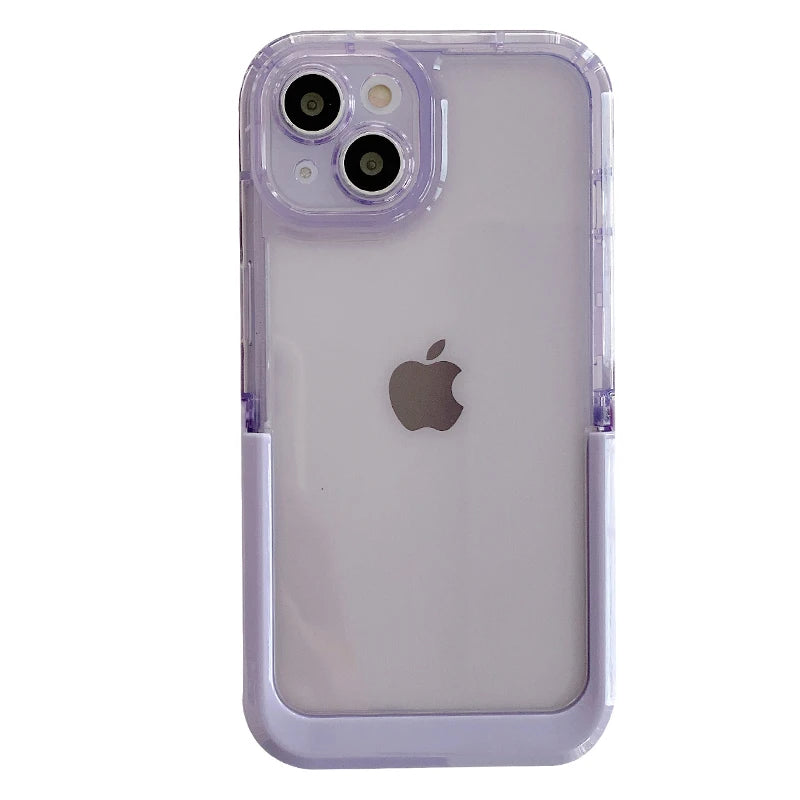 Qfdian Simple Candy Color Foldable Holder Stand Case For iPhone 16 Pro Max 15 14 13 12 11 Clear Shockproof TPU Back Cover