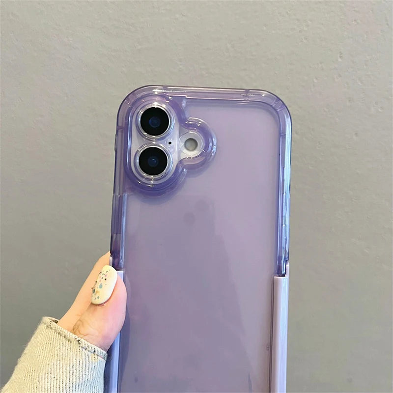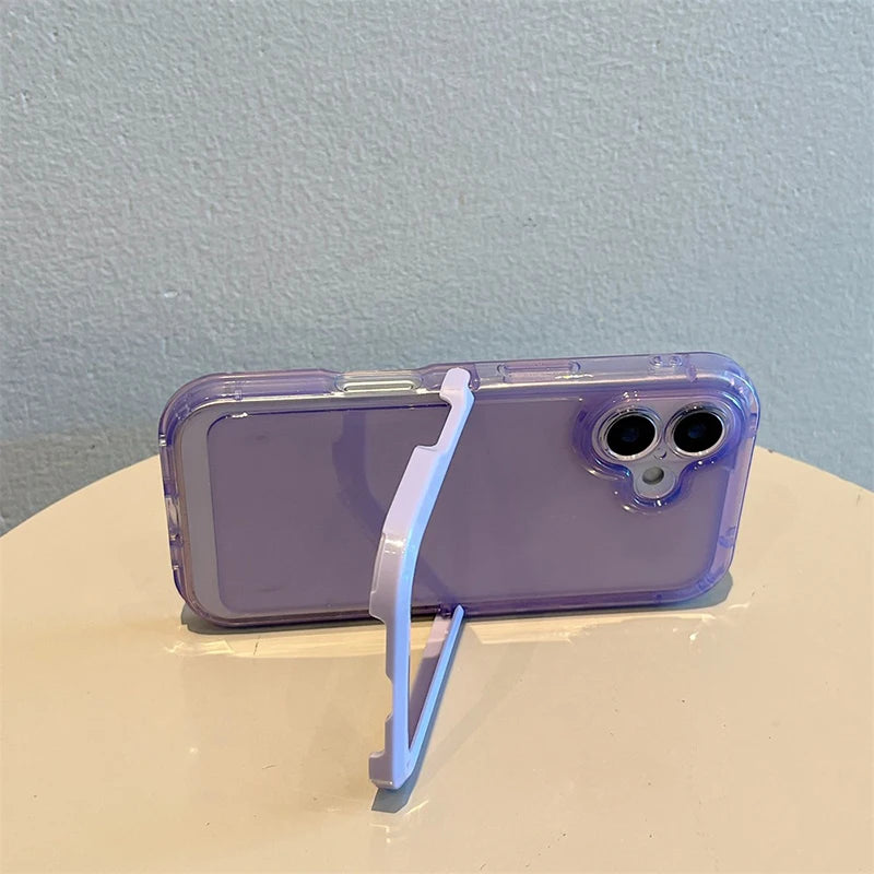 Simple Candy Color Foldable Holder Stand Case For iPhone 16 Pro Max 15 14 13 12 11 Clear Shockproof TPU Back Cover