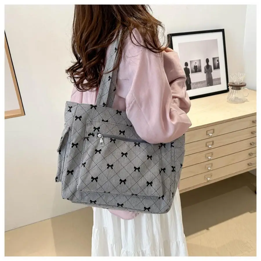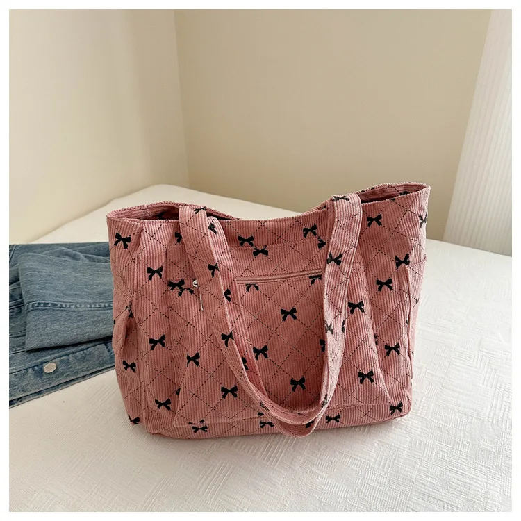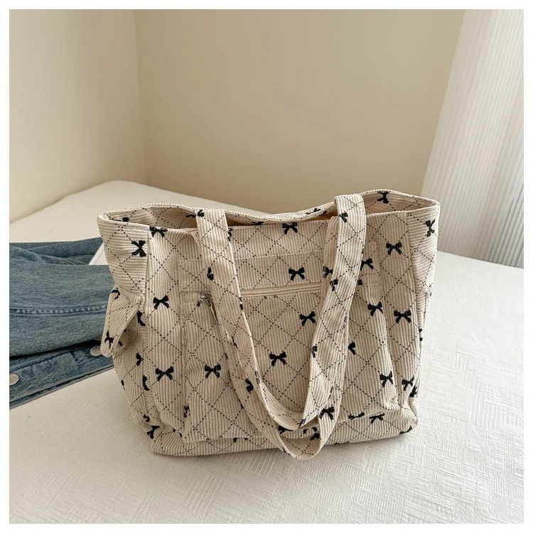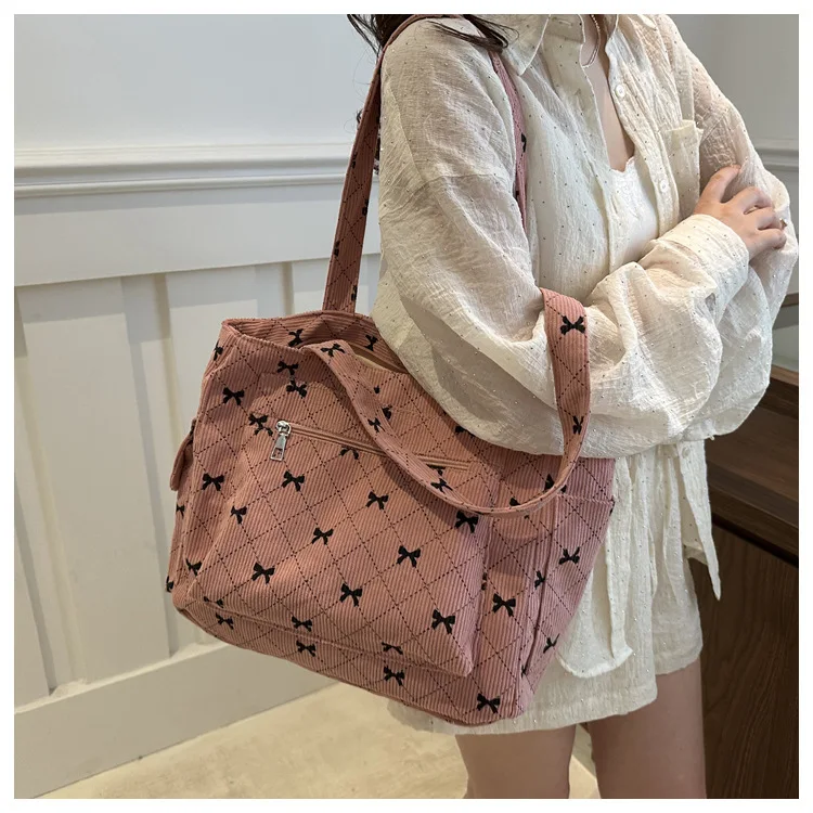 Qfdian Single shoulder crossbody bow, fresh underarm texture, large capacity tote bag, handbag, women's bag