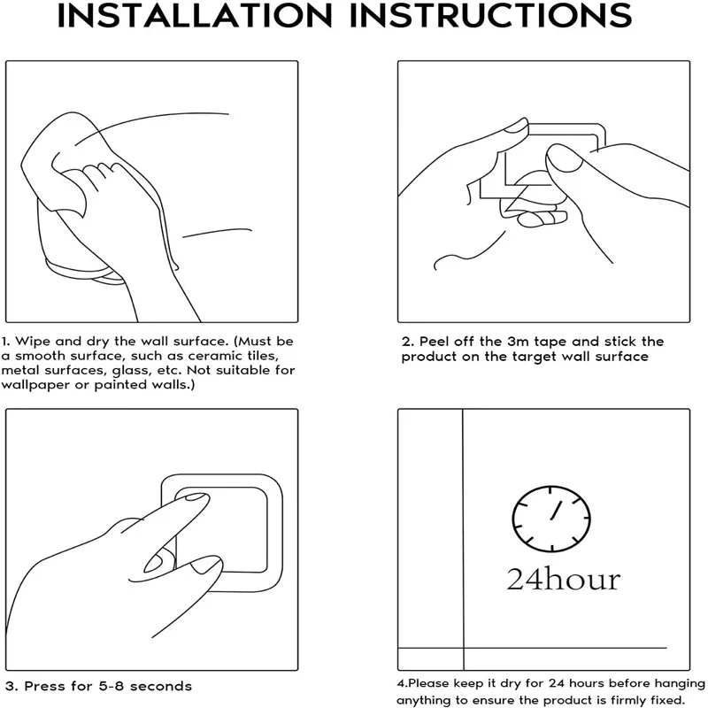 1) No need to drill holes in wall, just cleaning the installing surface(must be smooth surface, like ceramic tile metal surface ,glasses, etc. )and dry it.
