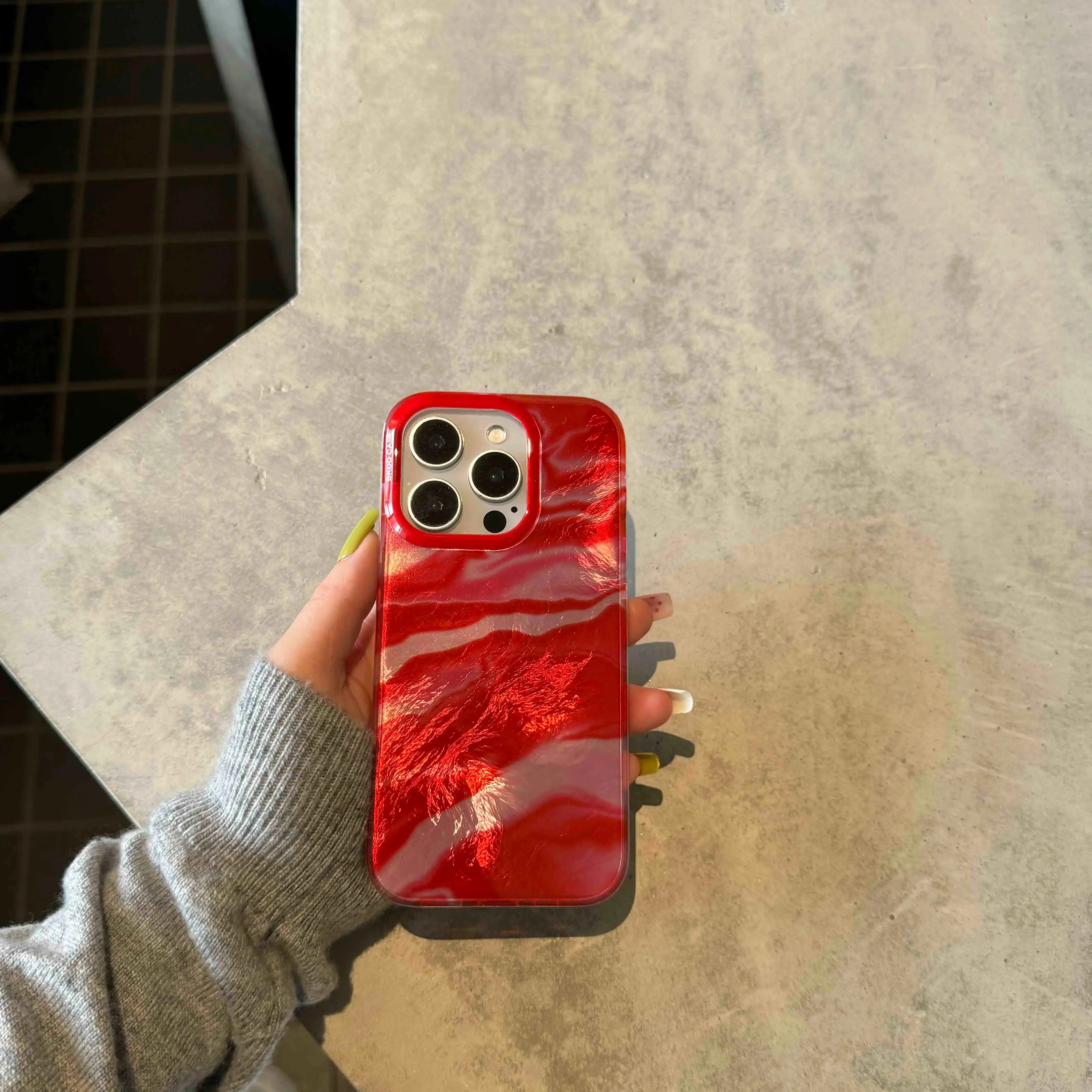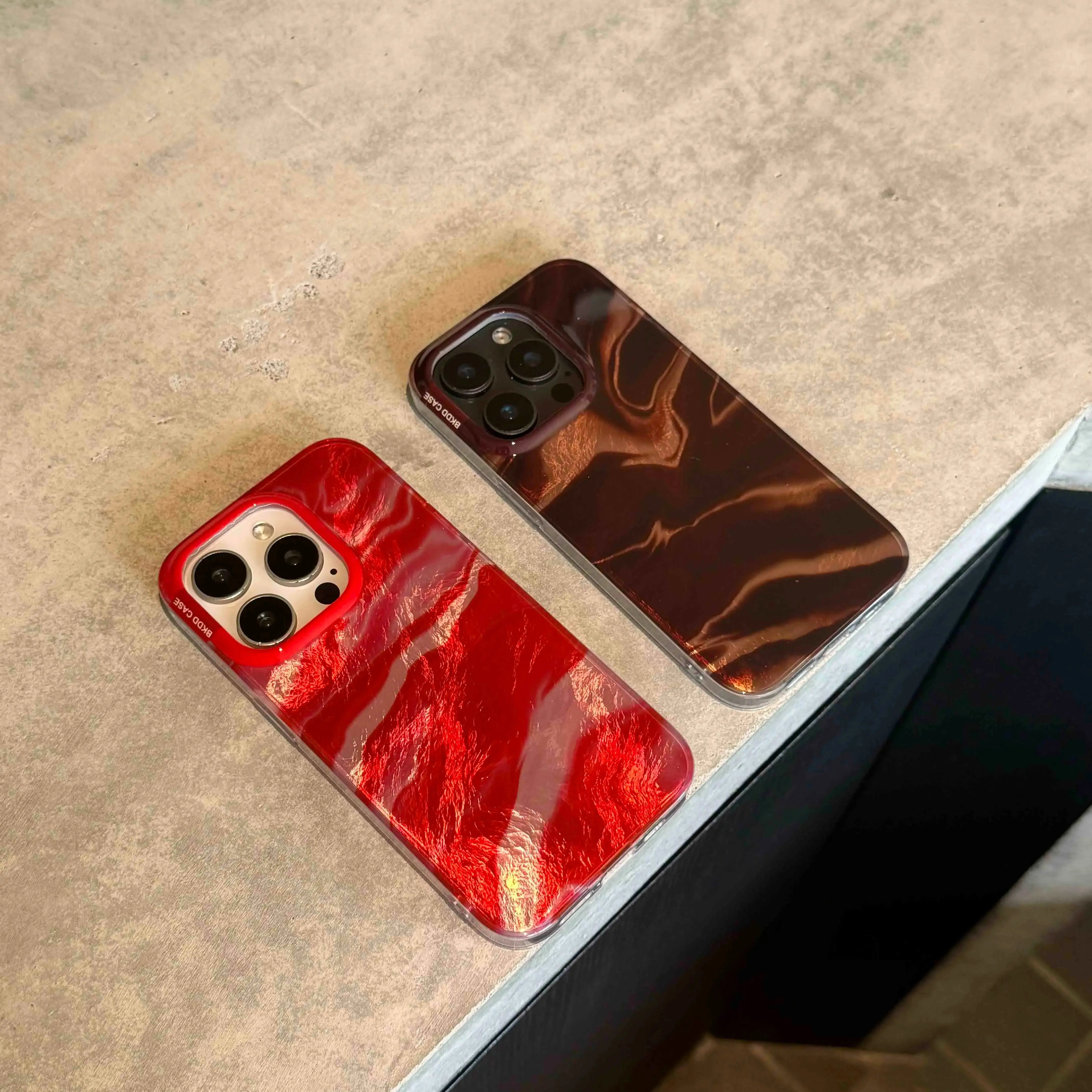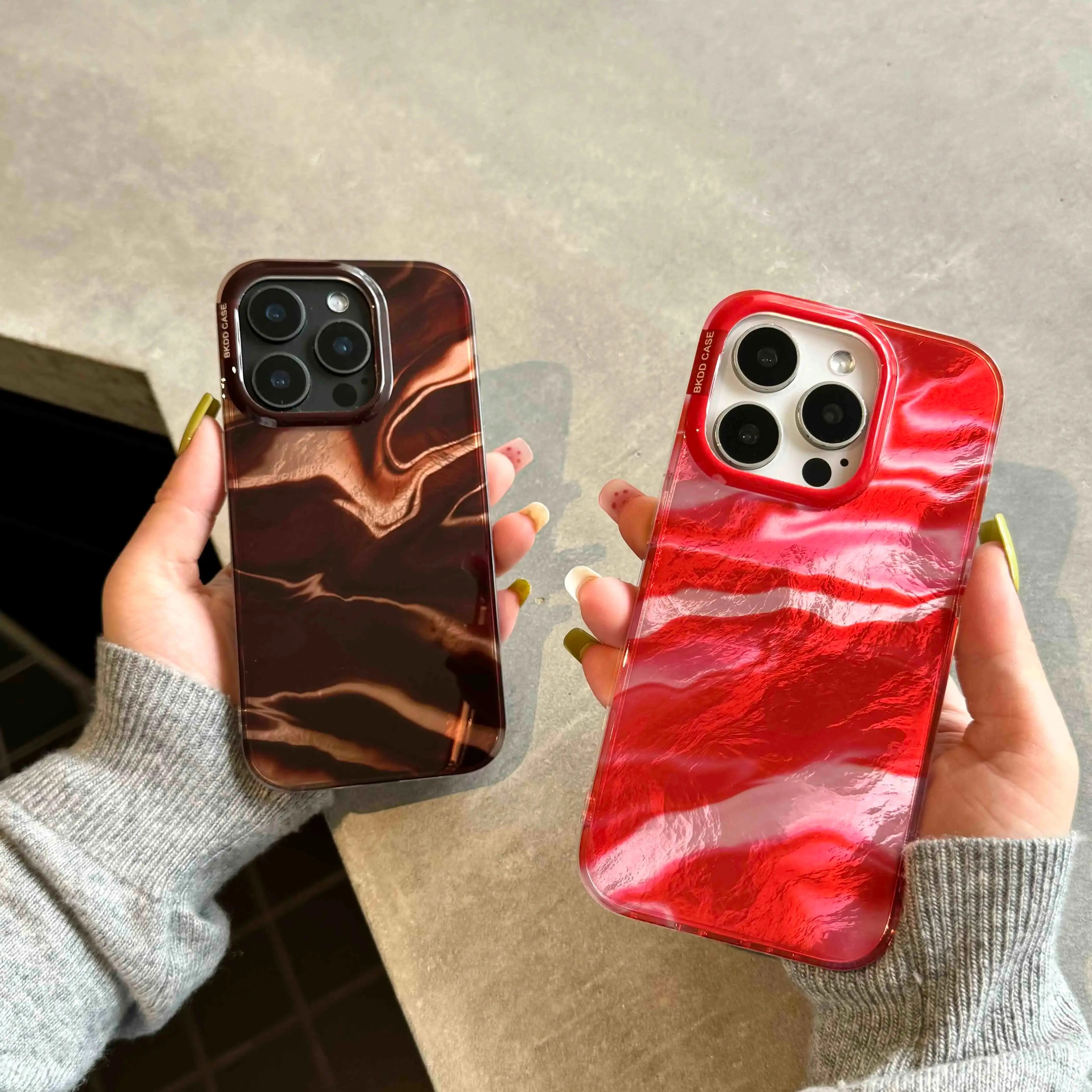 Qfdian Summer hot red motting phone case for iphone 14pro 15pro 15 pro max 13pro 12 14 13 shiny chocolate color shockproof shell fundas
