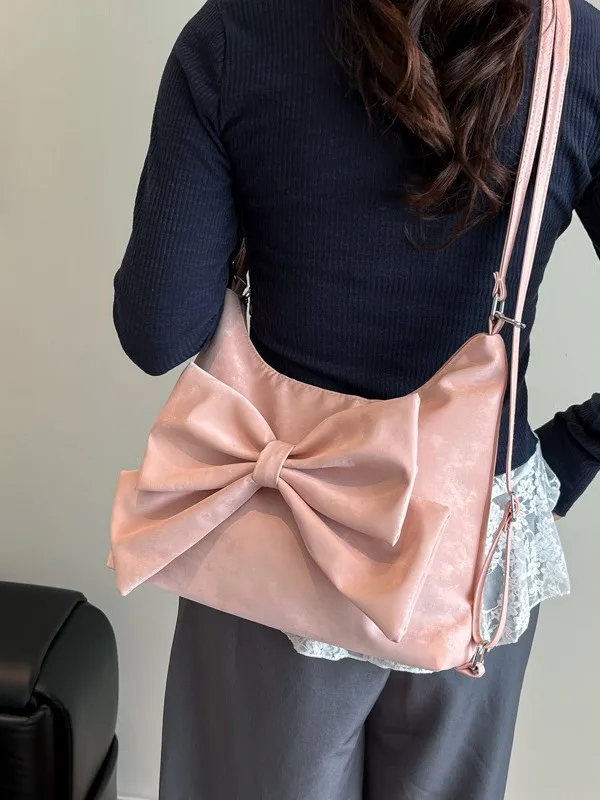 Qfdian Sweet pink commuter armpit bag for women, large capacity one bag, multi-purpose student tote bag for class