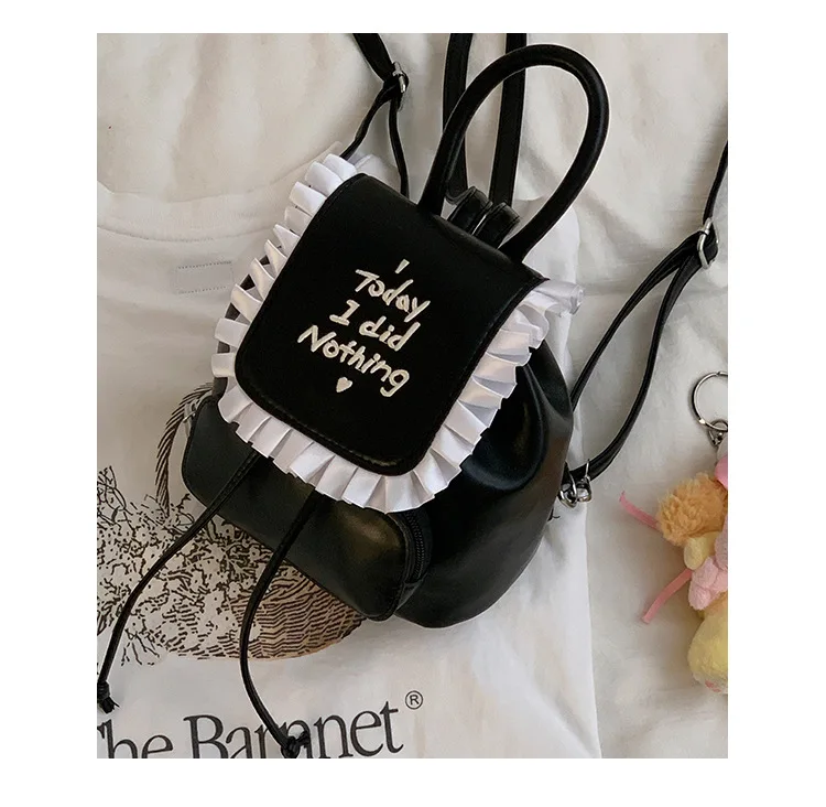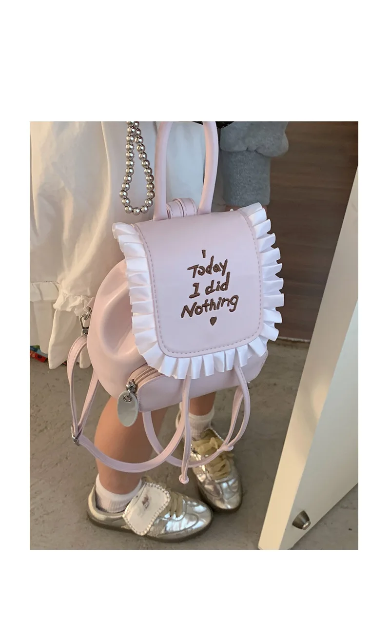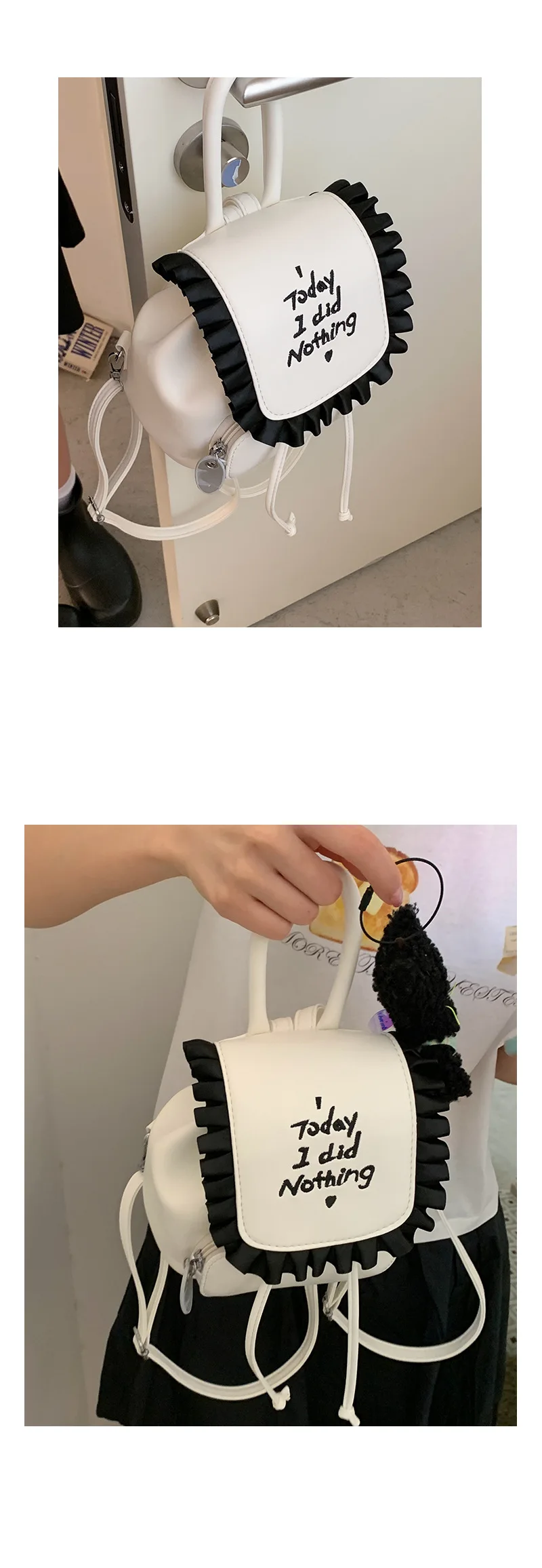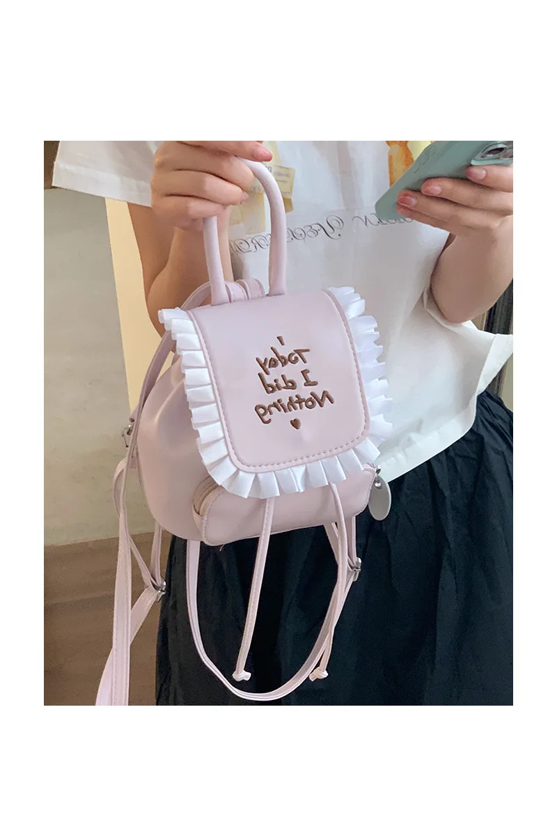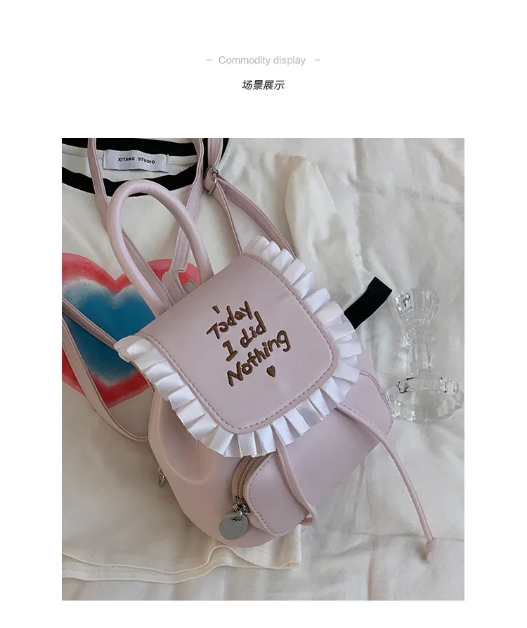 Qfdian Sweet Y2k Aesthetic Girls Letter Embroidery Preppy Schoolbags Women Students All Match Ins Fashion Ruffled Chic Mini Backpacks
