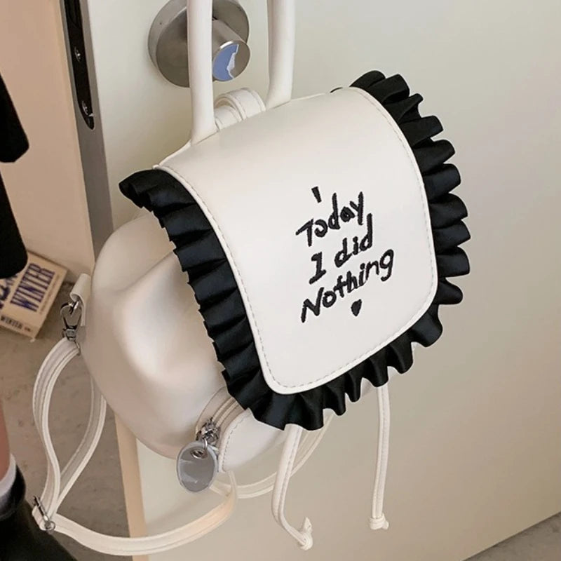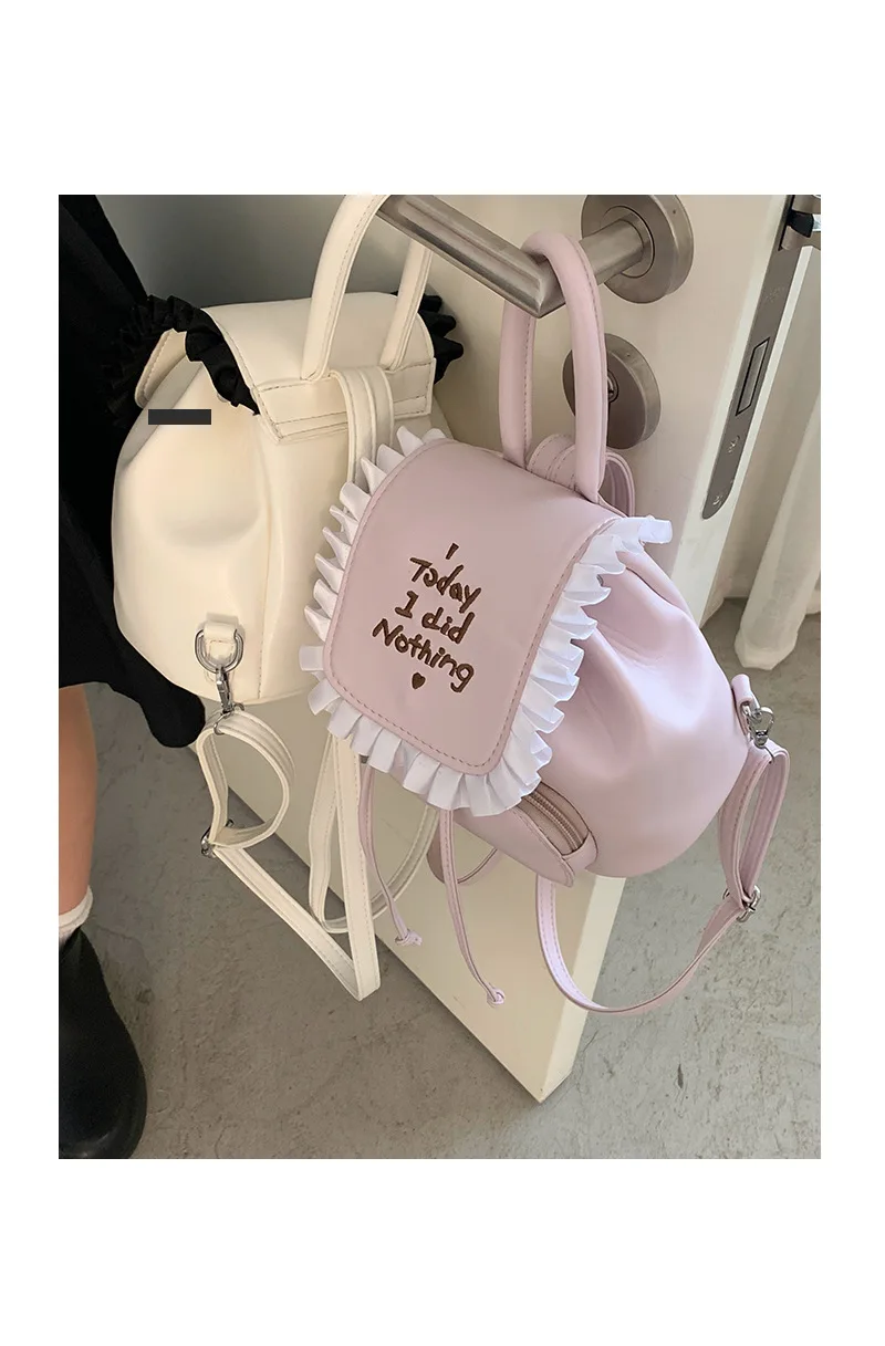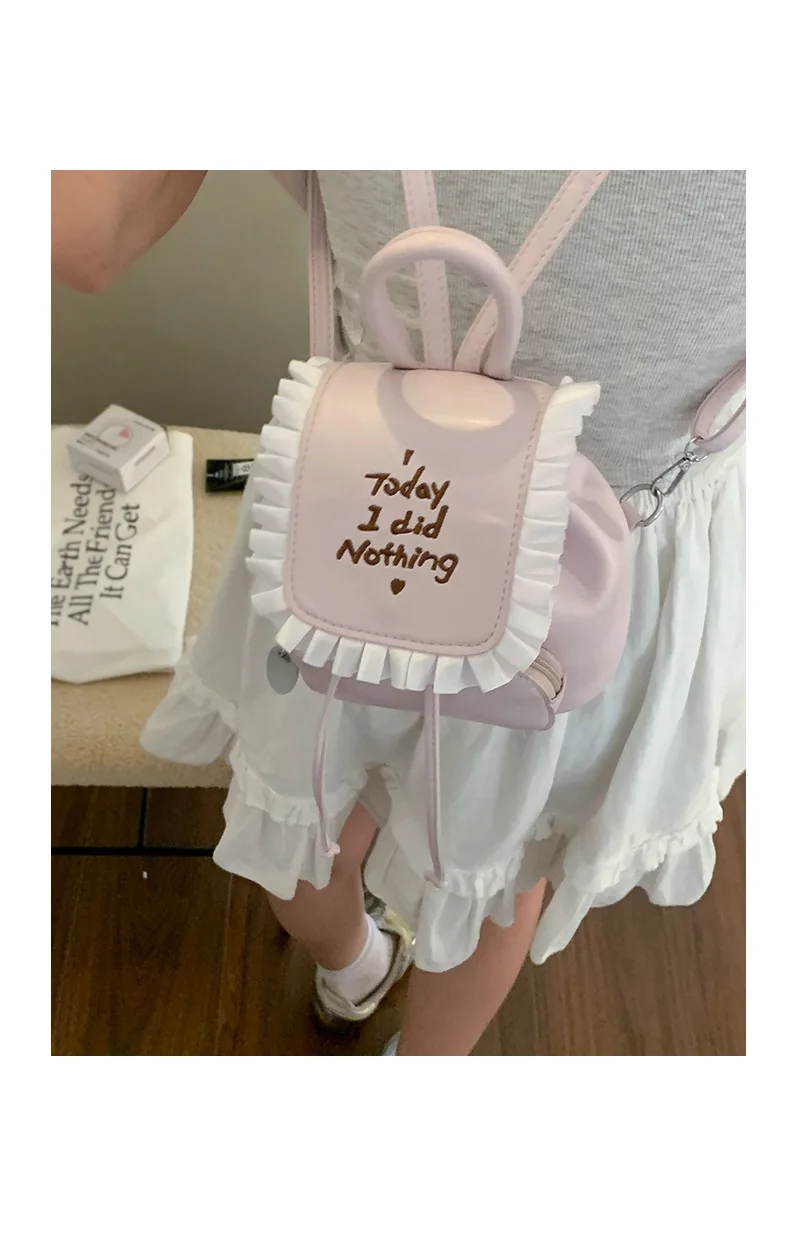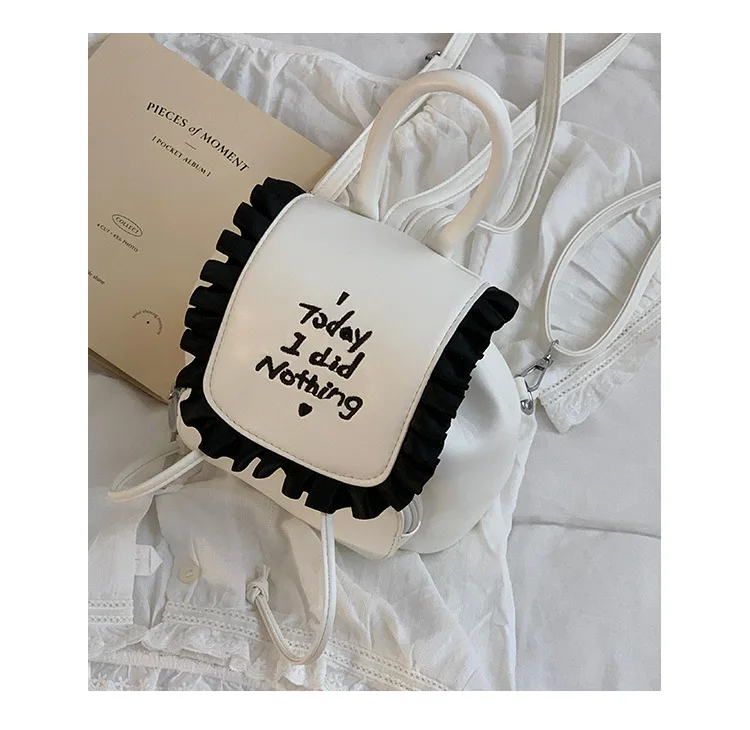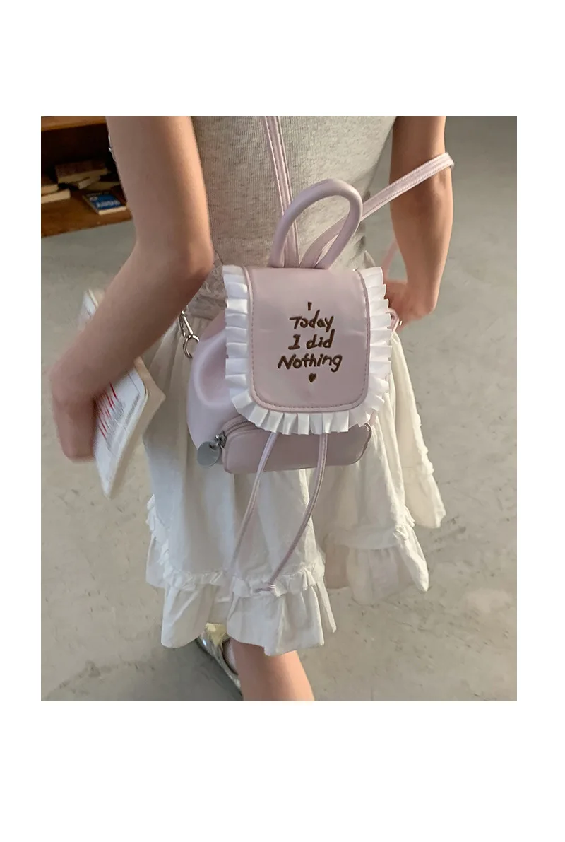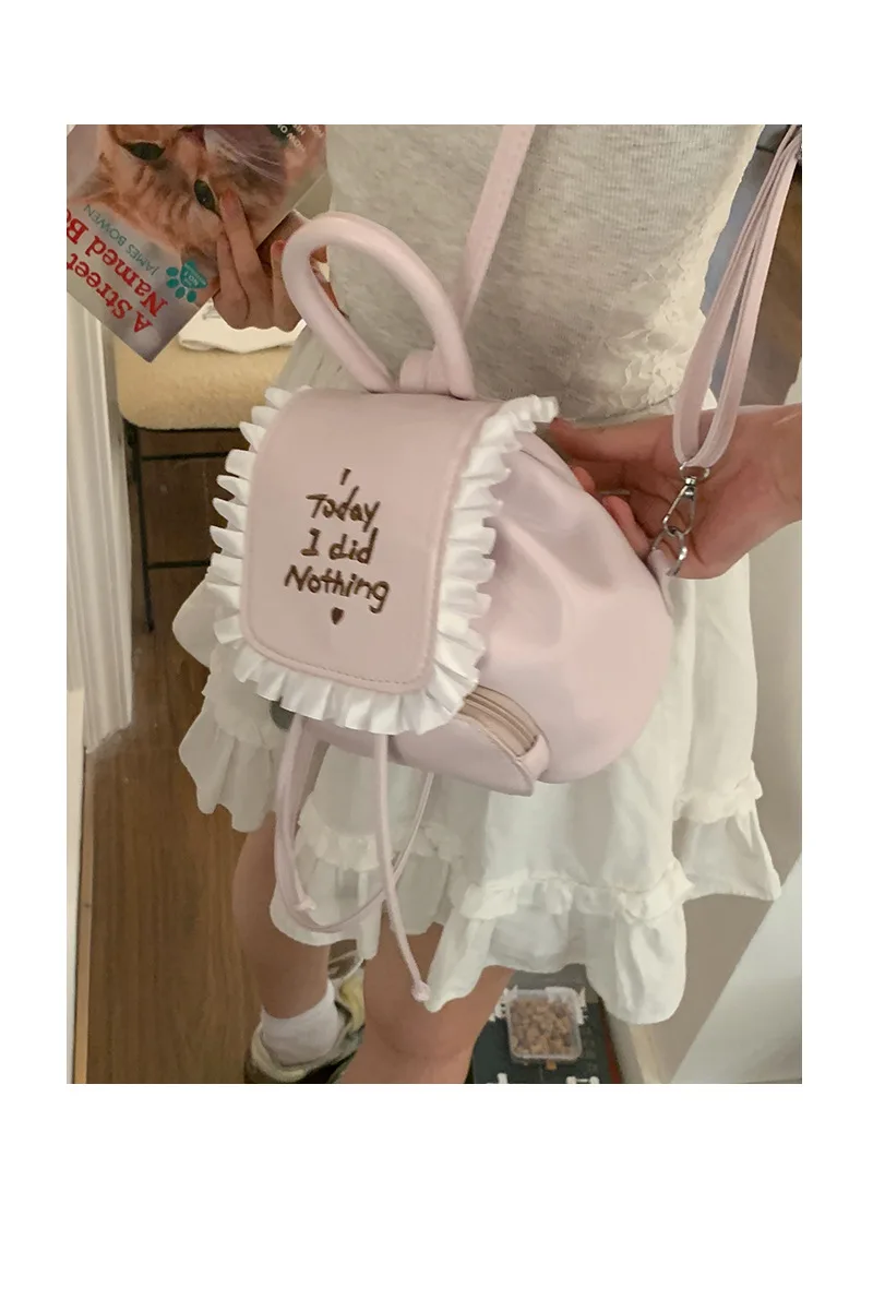 Qfdian Sweet Y2k Aesthetic Girls Letter Embroidery Preppy Schoolbags Women Students All Match Ins Fashion Ruffled Chic Mini Backpacks